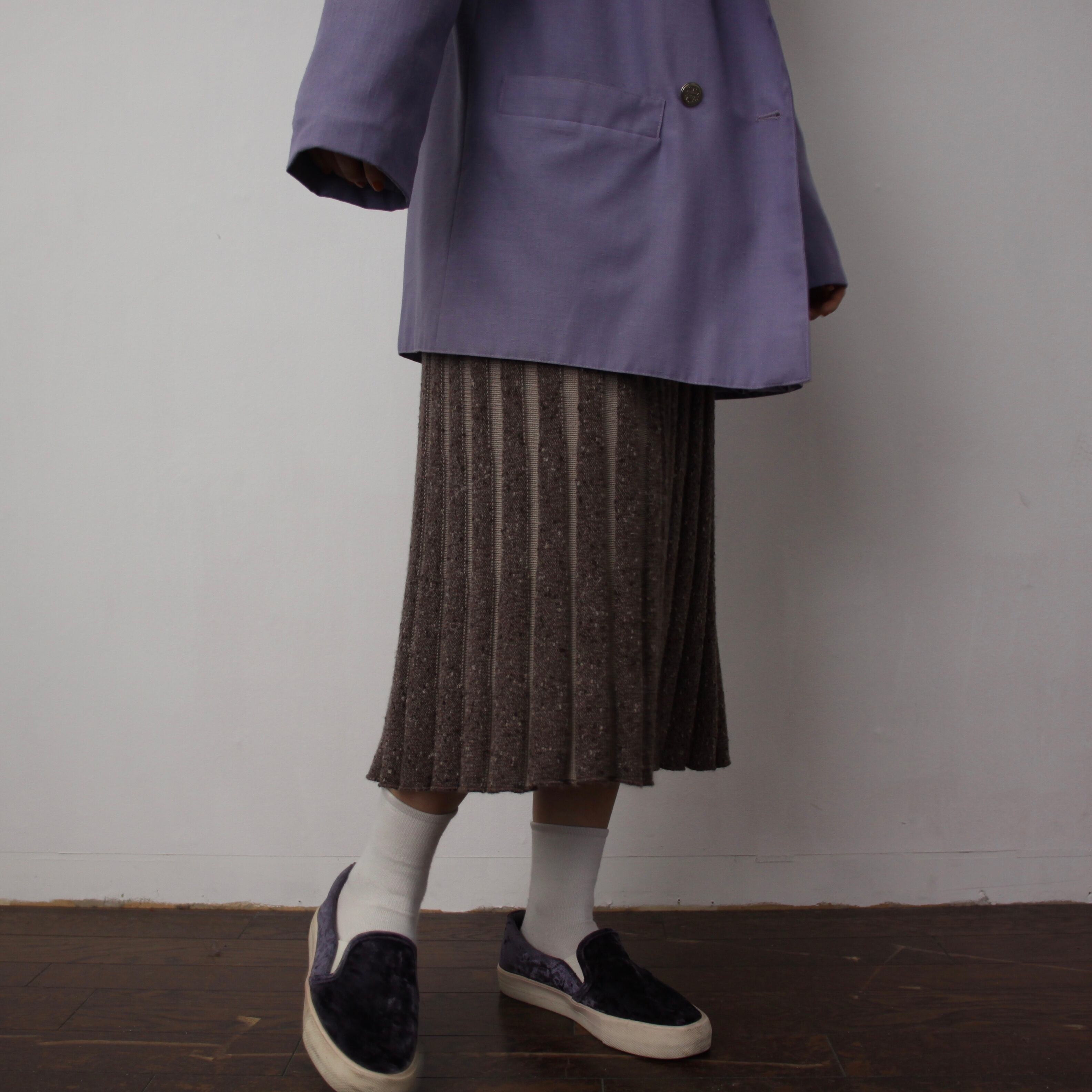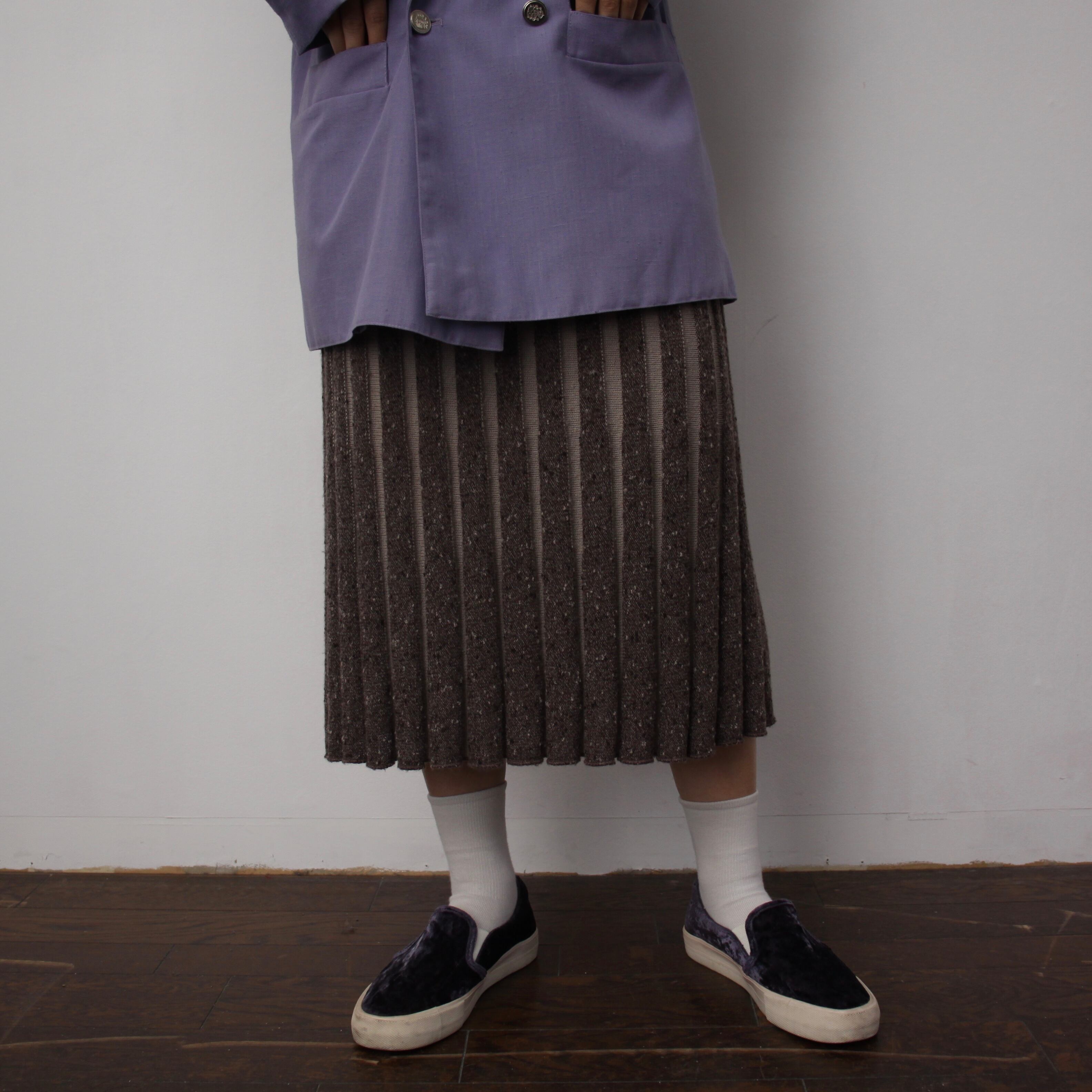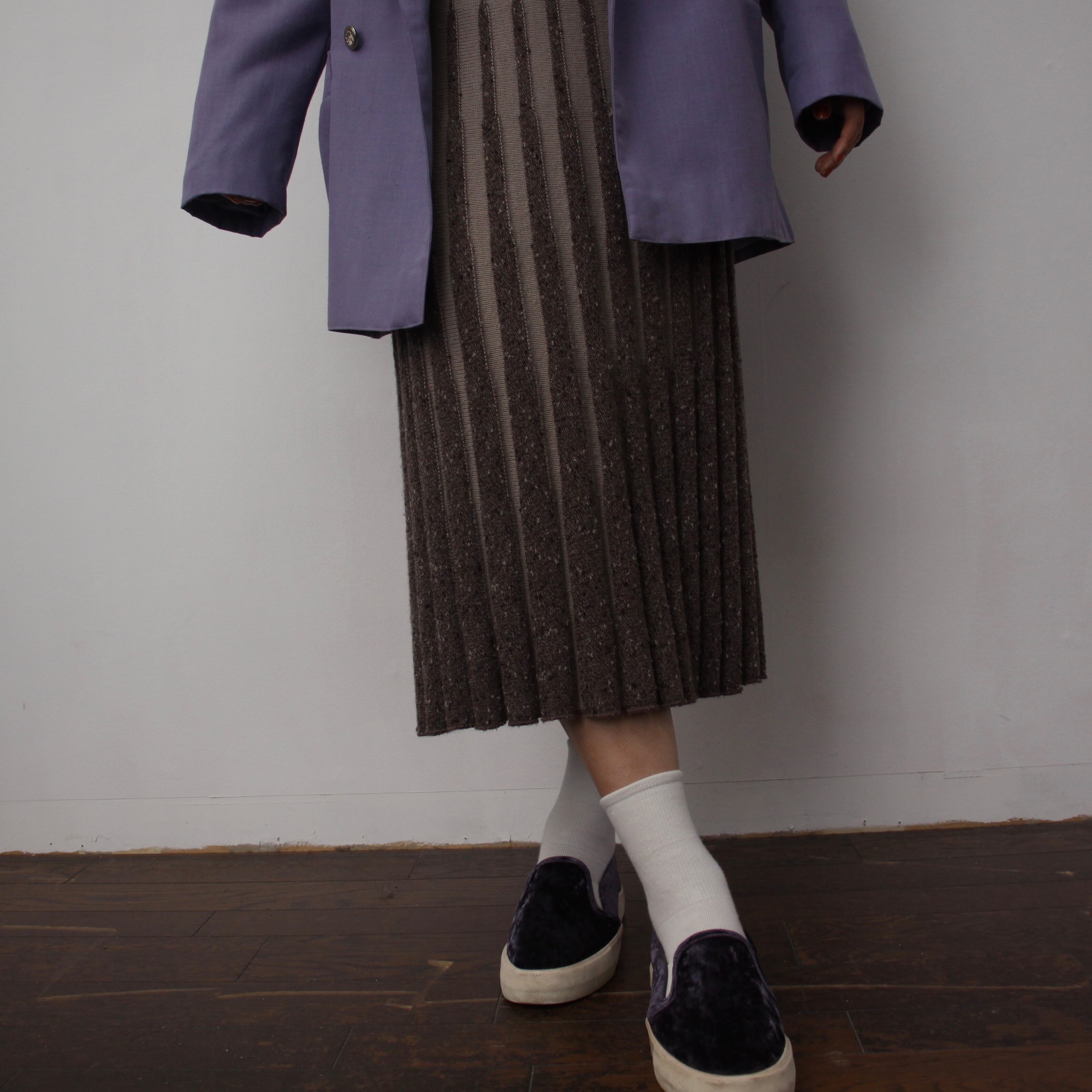 0190. euro 3D knitting pleats skirt ブラウン × ベージュ 3Dニット プリーツスカート vintage レディース ユーロ古着
