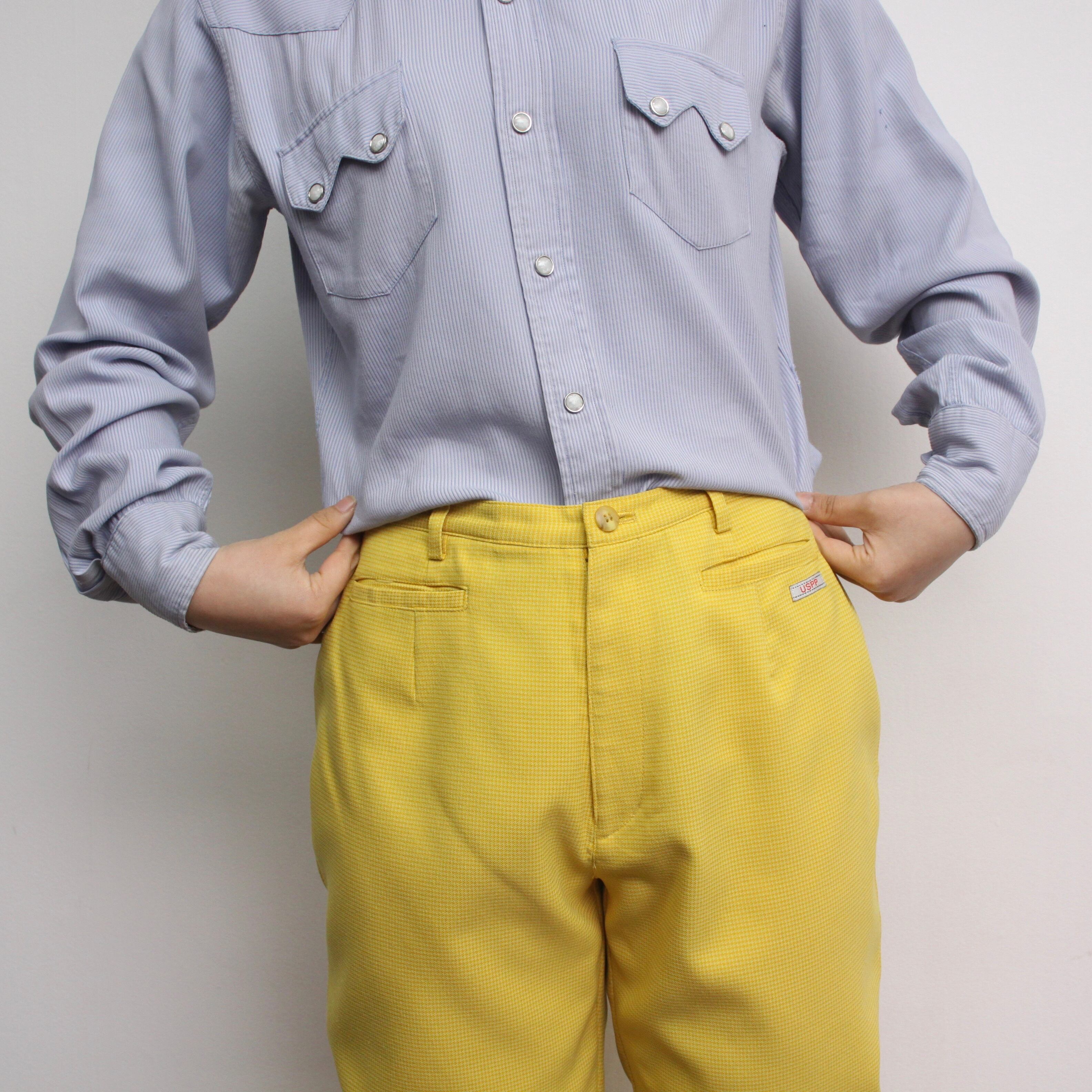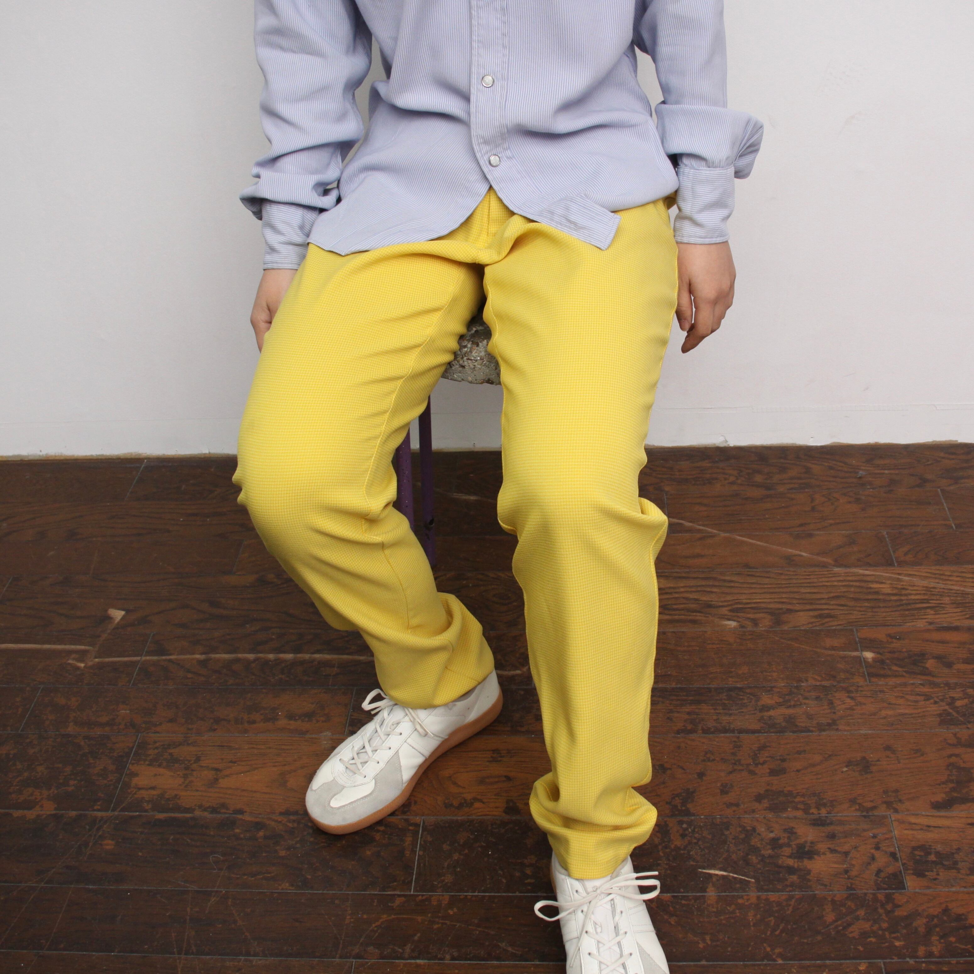 0188. yellow hound's-tooth check slacks イエロー ハウンドトゥース 千鳥格子 チェック柄 スラックス パンツ レディース古着