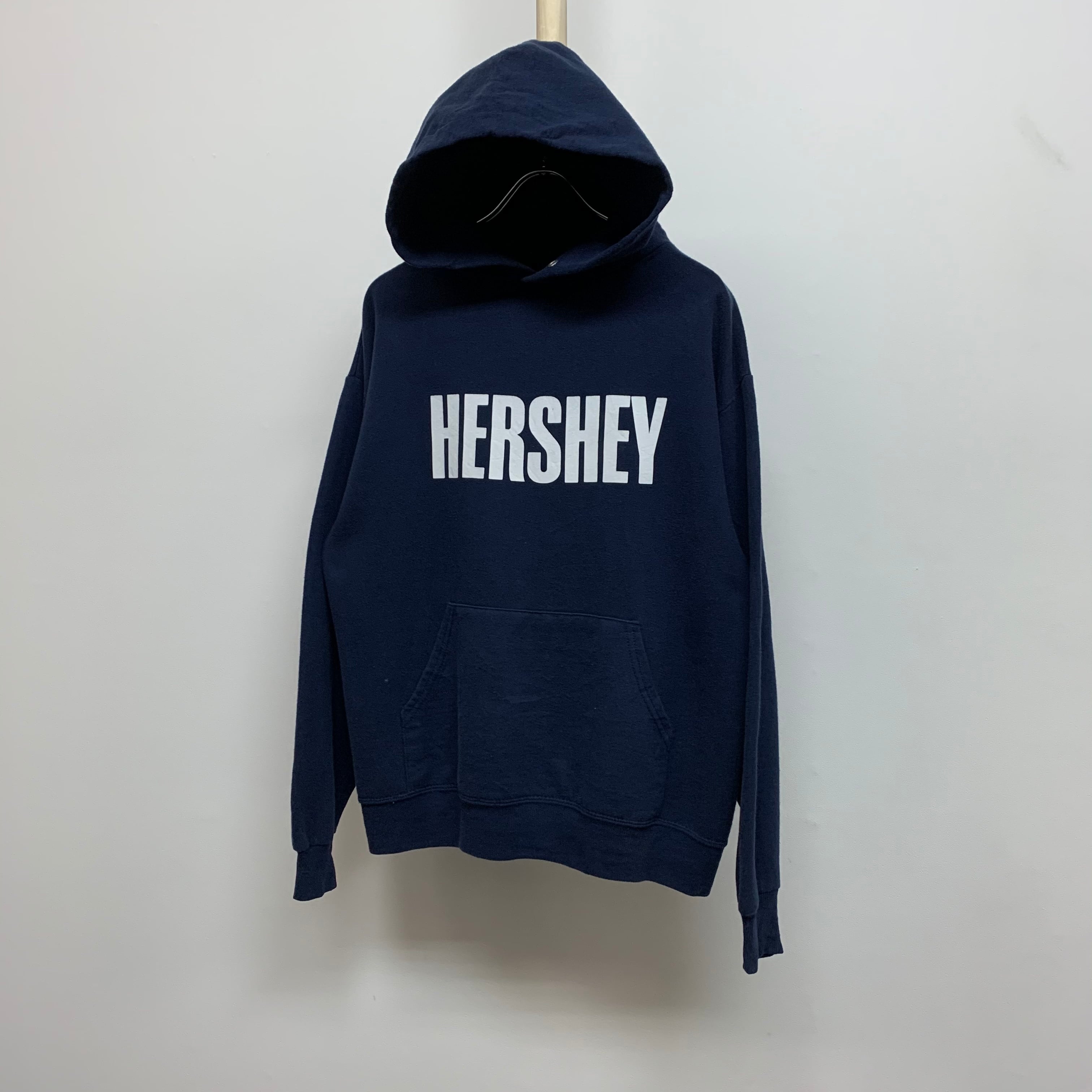 0181. HERSHEY sweat hoodie ネイビー スウェットパーカー 企業ロゴ プリント ハーシーズ 古着