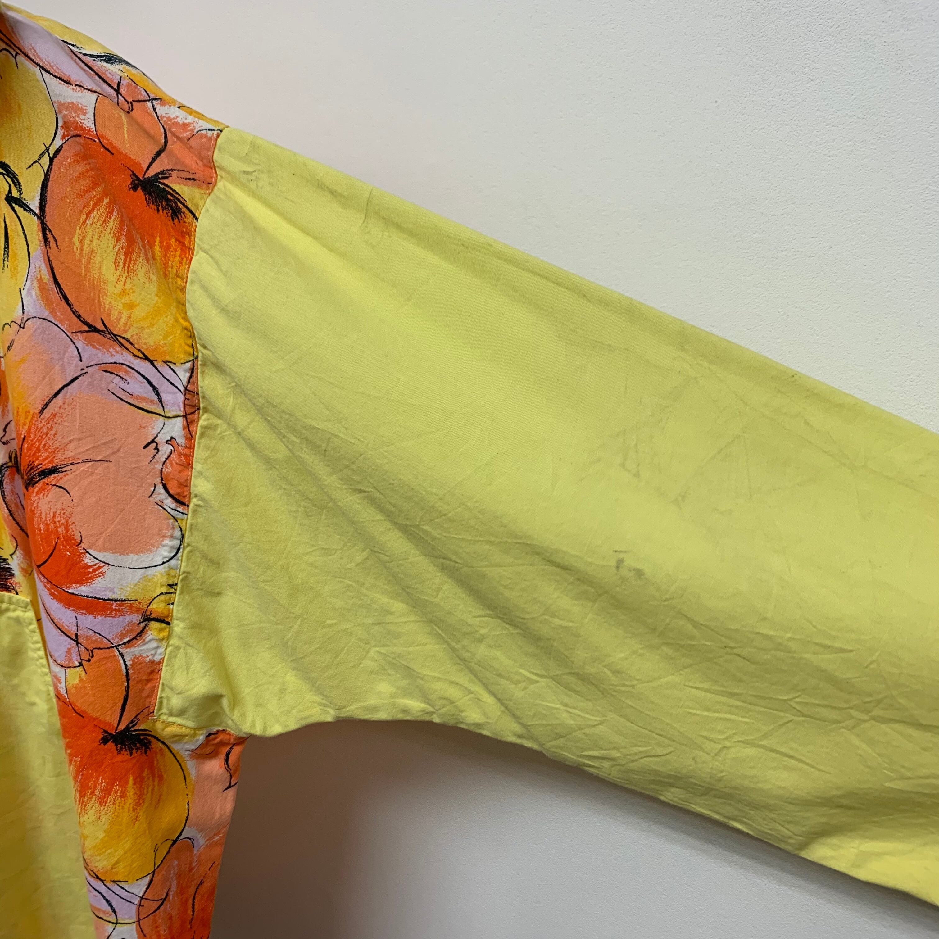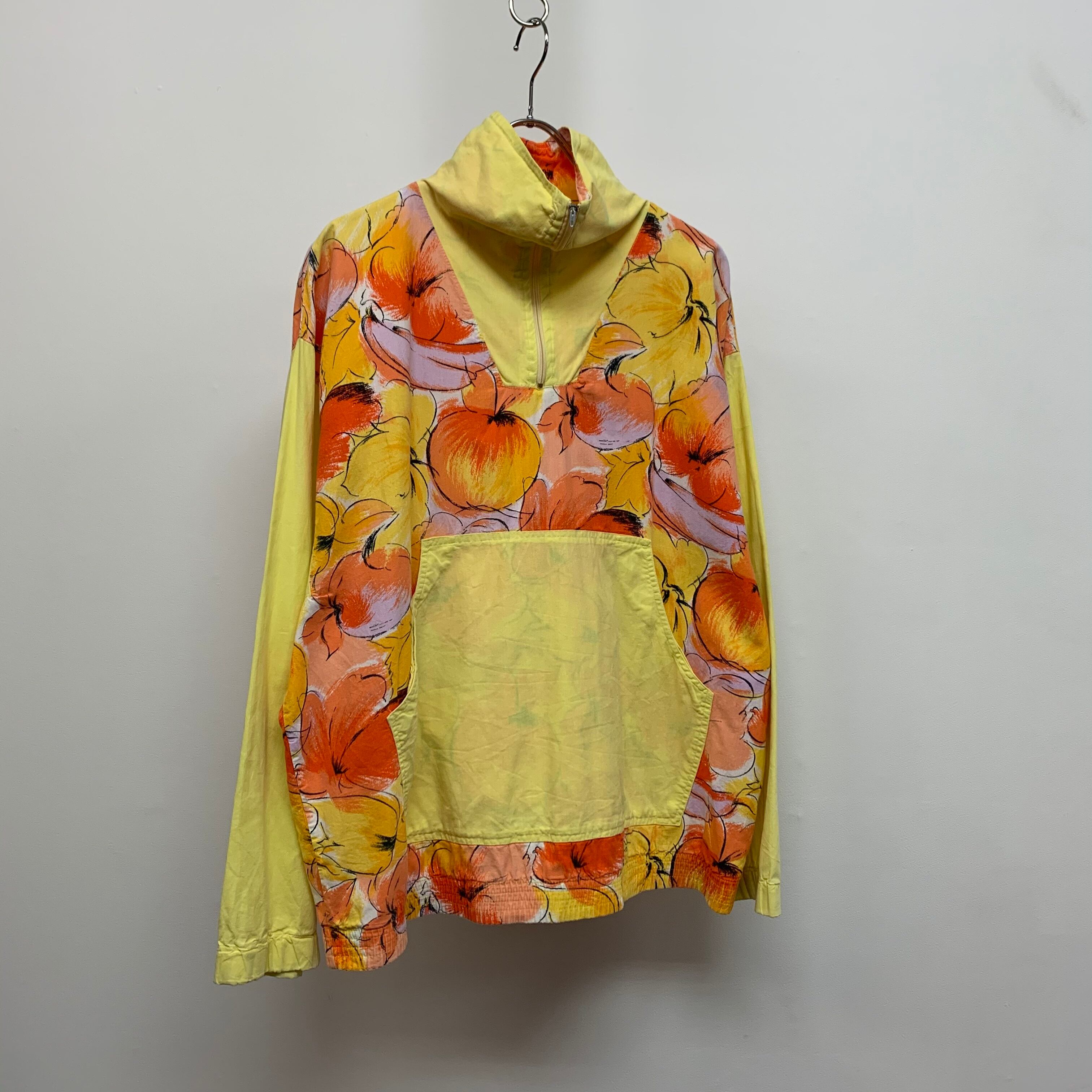 0200. fruity pattern pullover jacket フルーツ オレンジ イエロー アート プルオーバージャケット ユーロ古着 euro vintage