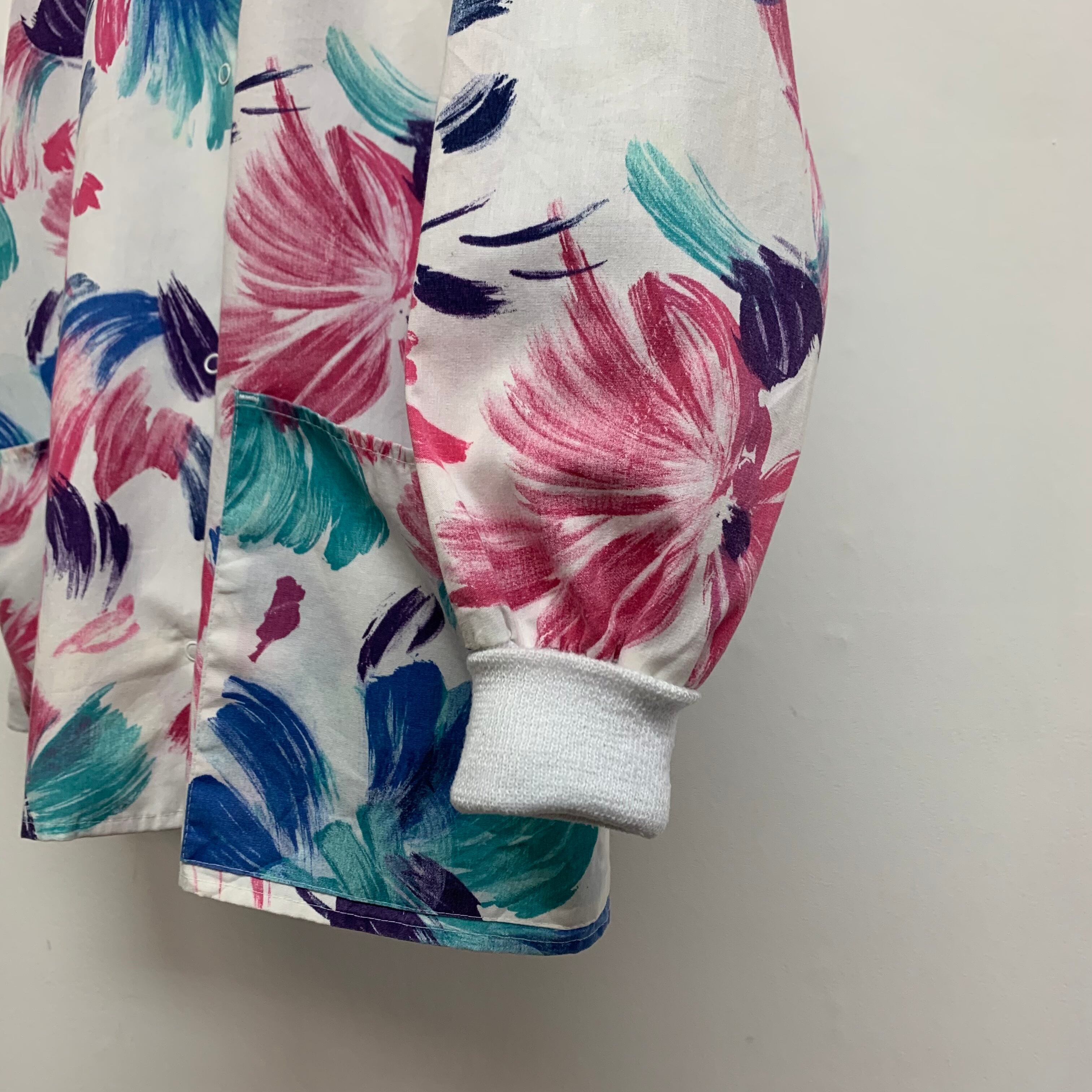 0202. 1990's floral pattern snap cardigan 花柄 スナップボタン コーチジャケット スナップカーディガン USA製 90s 90年代 vintage 古着