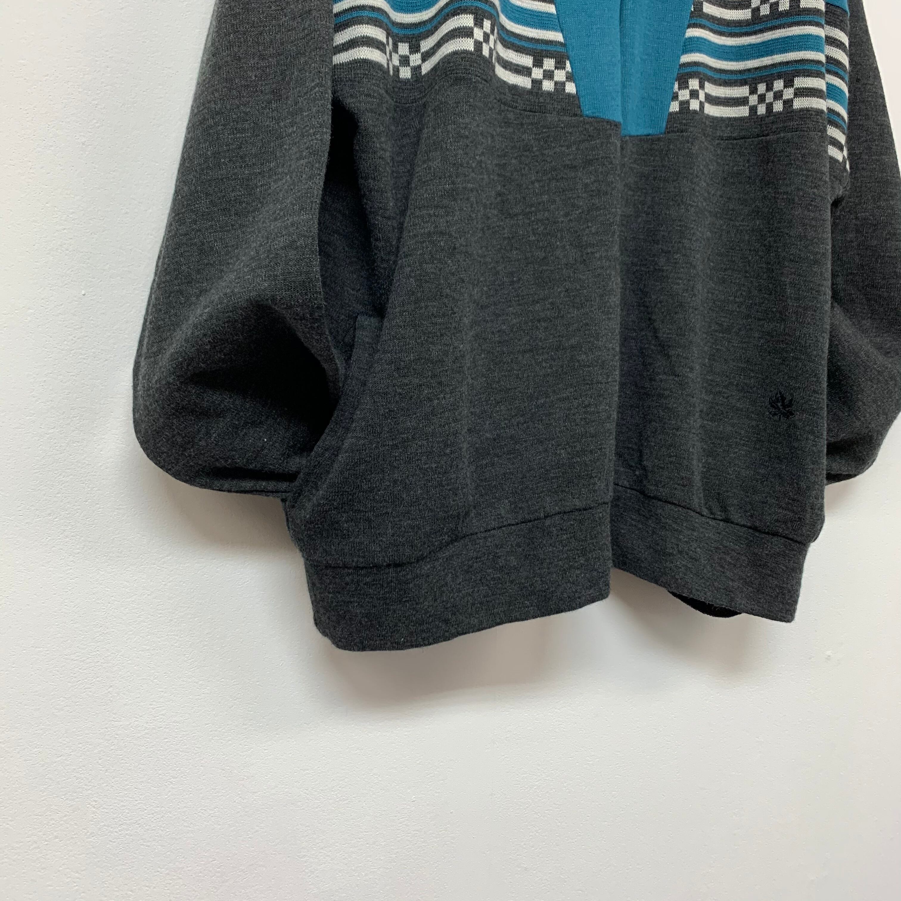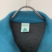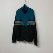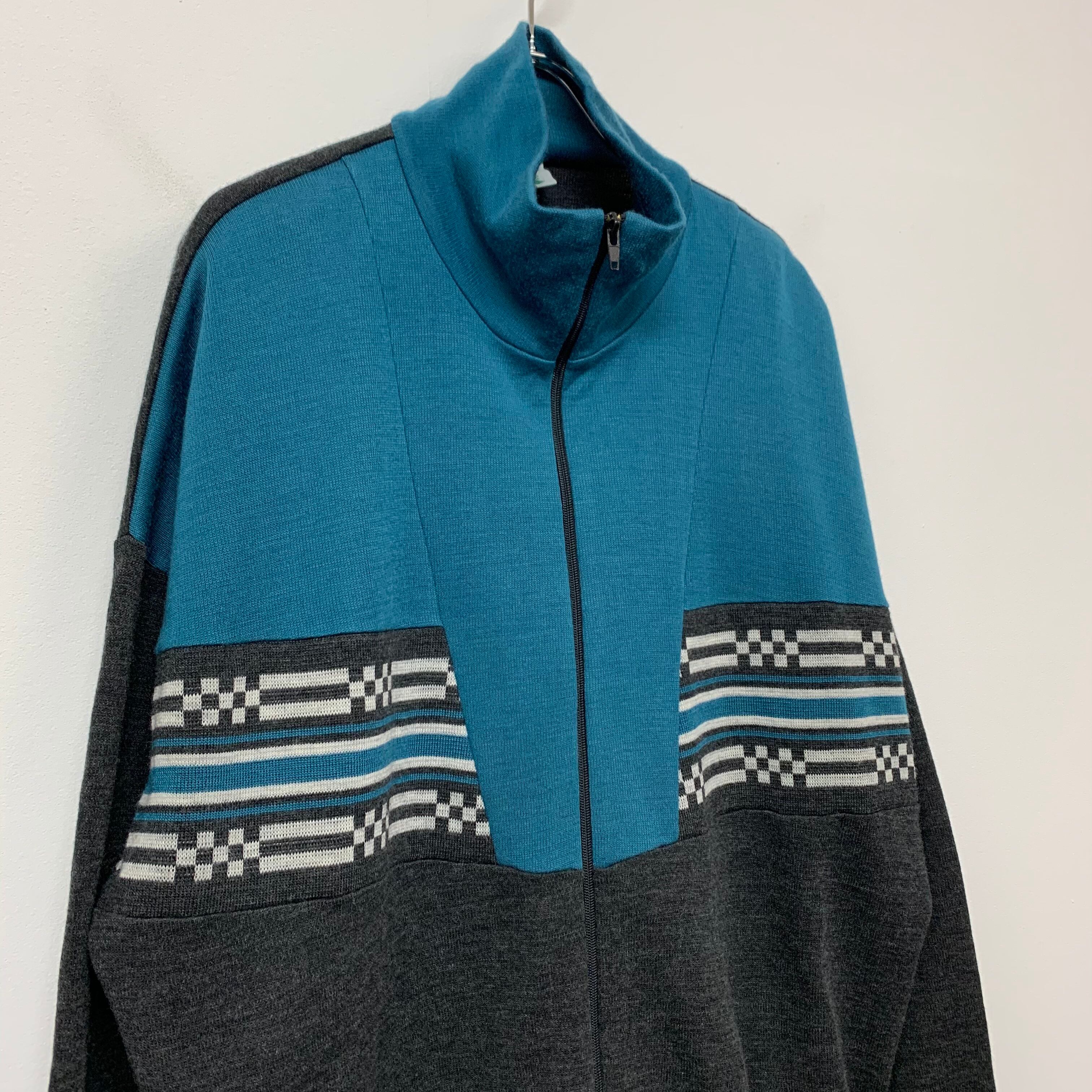 0204. euro knit jersey チャコールグレー ターコイズブルー ニットジャージ トラックジャケット ユーロ古着