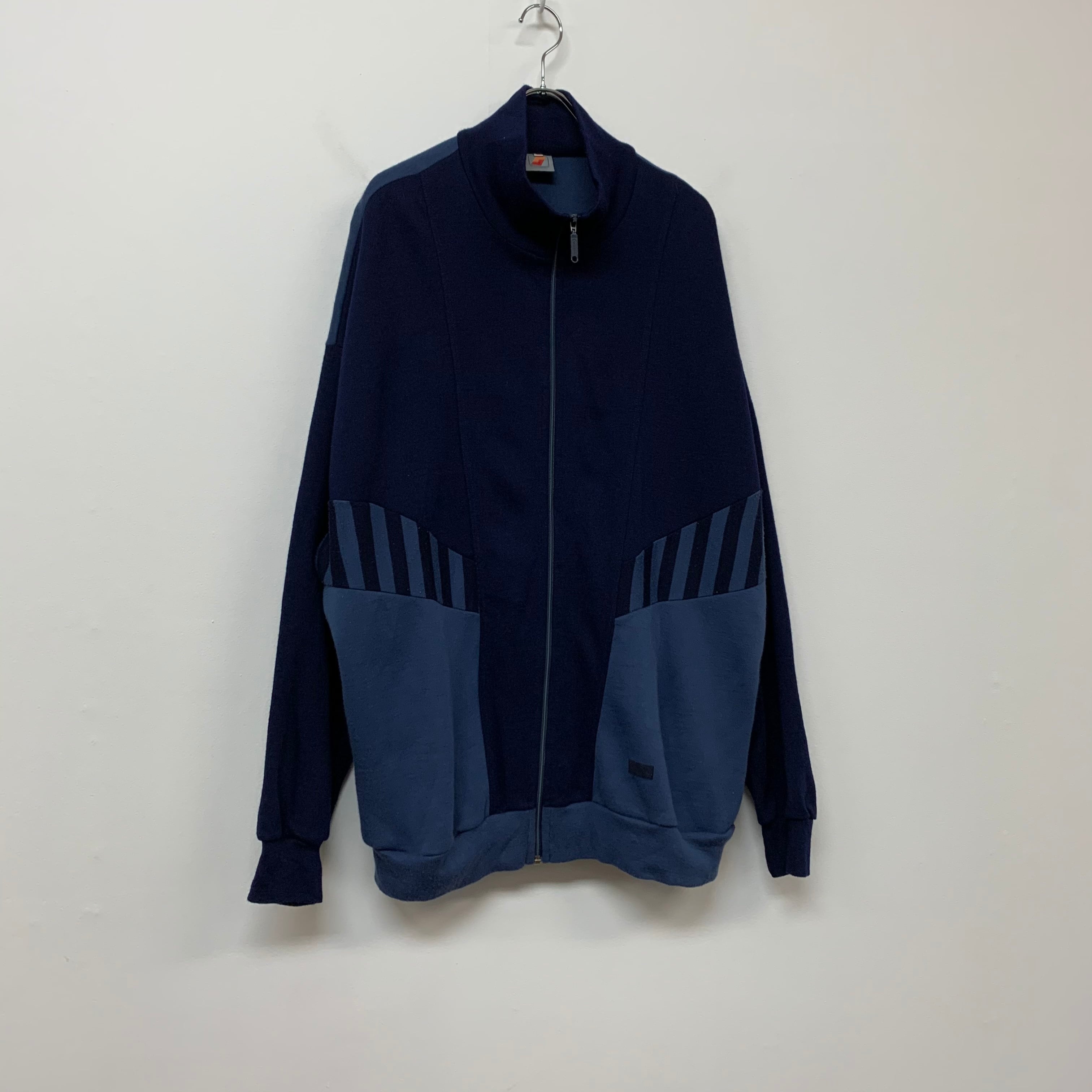 0205. 1980's euro knit jersey ネイビー ブルーグレー ニットジャージ トラックジャケット 西ドイツ製 80s 80年代 vintage ユーロ古着