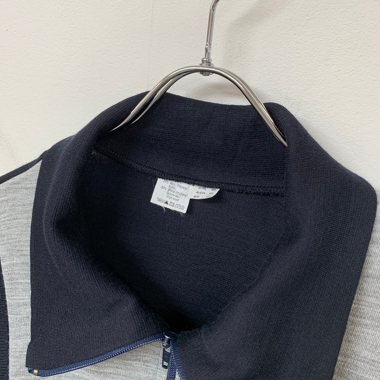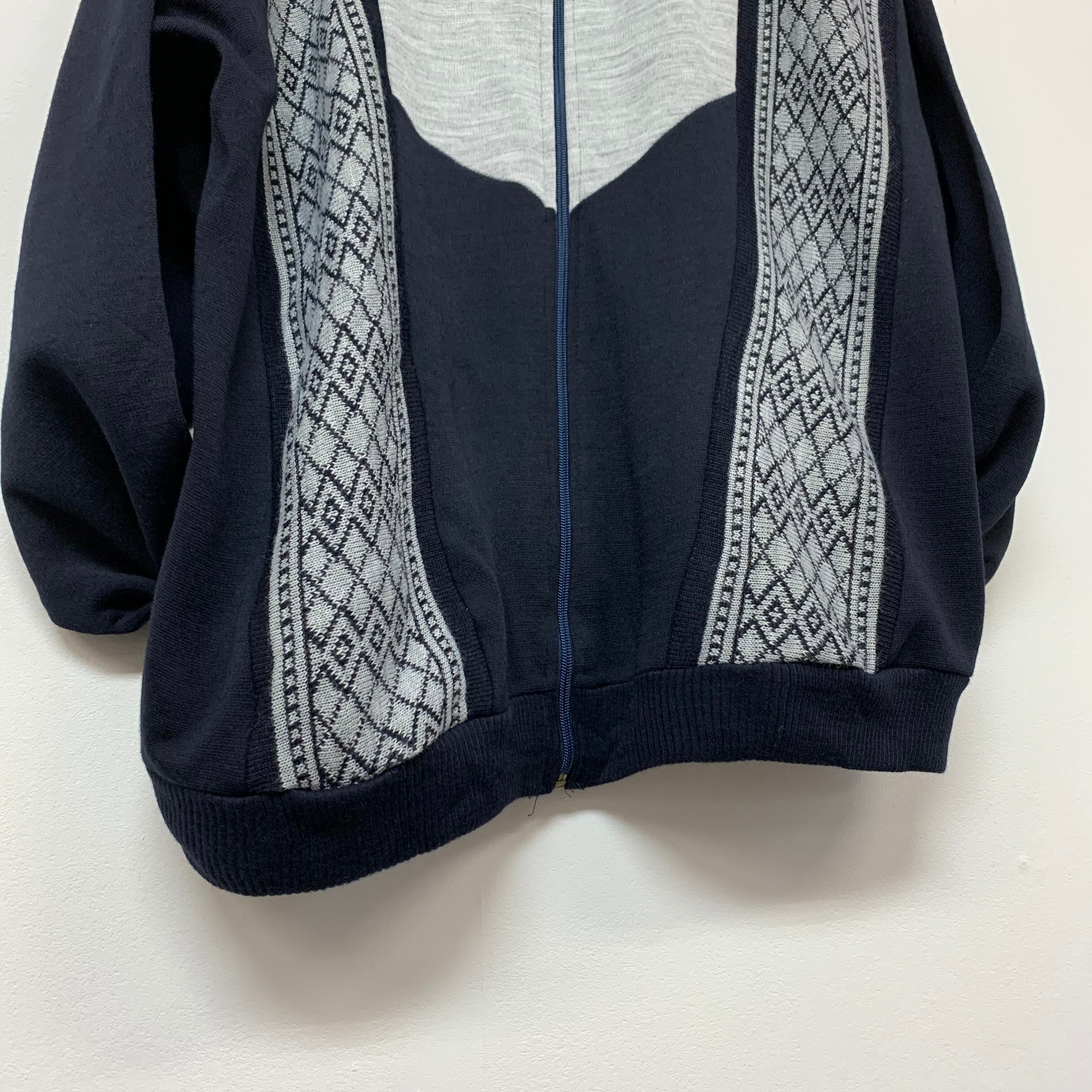 0206. 1980's euro knit jersey ダークネイビー グレー ニットジャージ トラックジャケット ユーロ古着