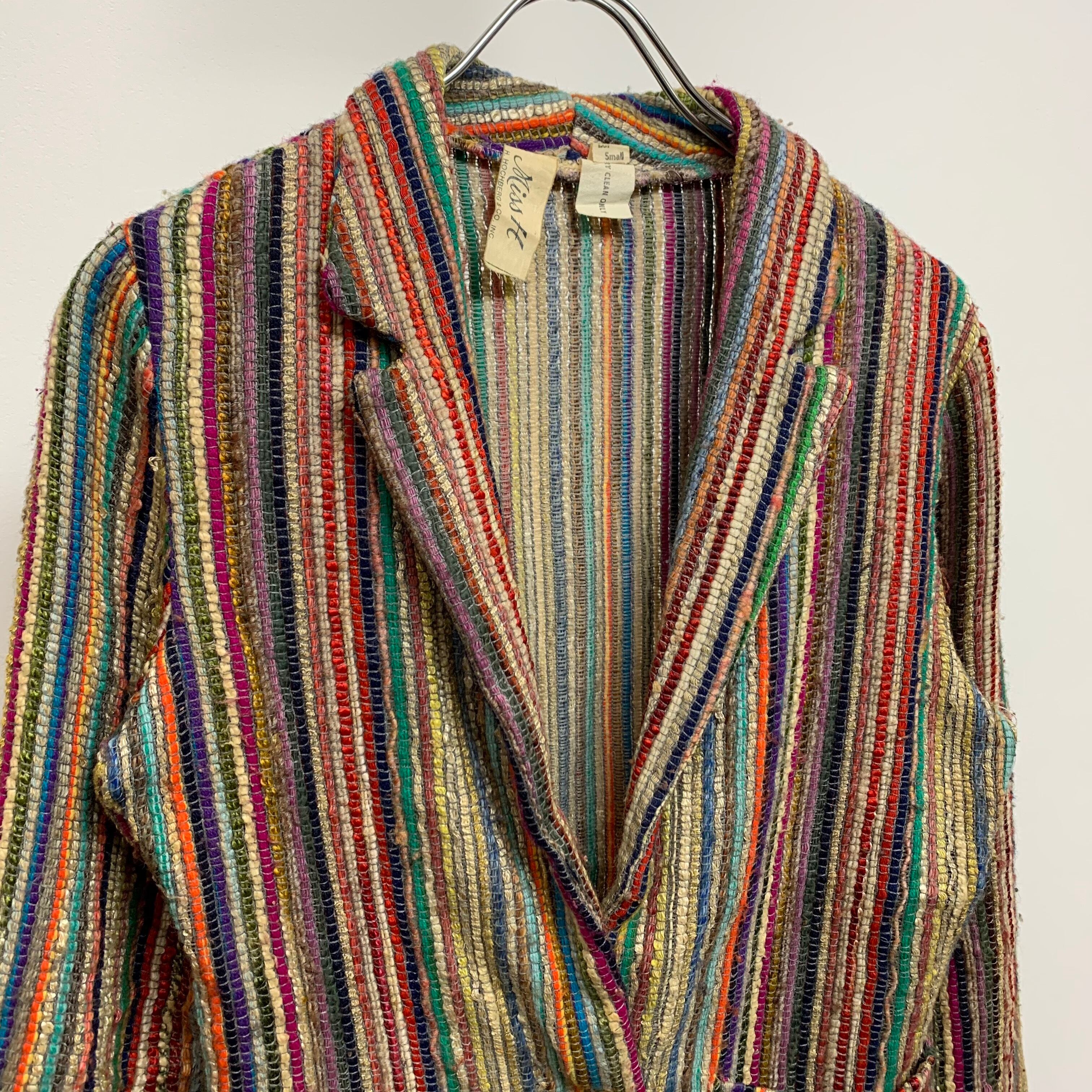 0212. 1980's multicolored jacquard jacket マルチカラー キリム ラグ 平織り ジャケット 80s 80年代 vintage レディース古着