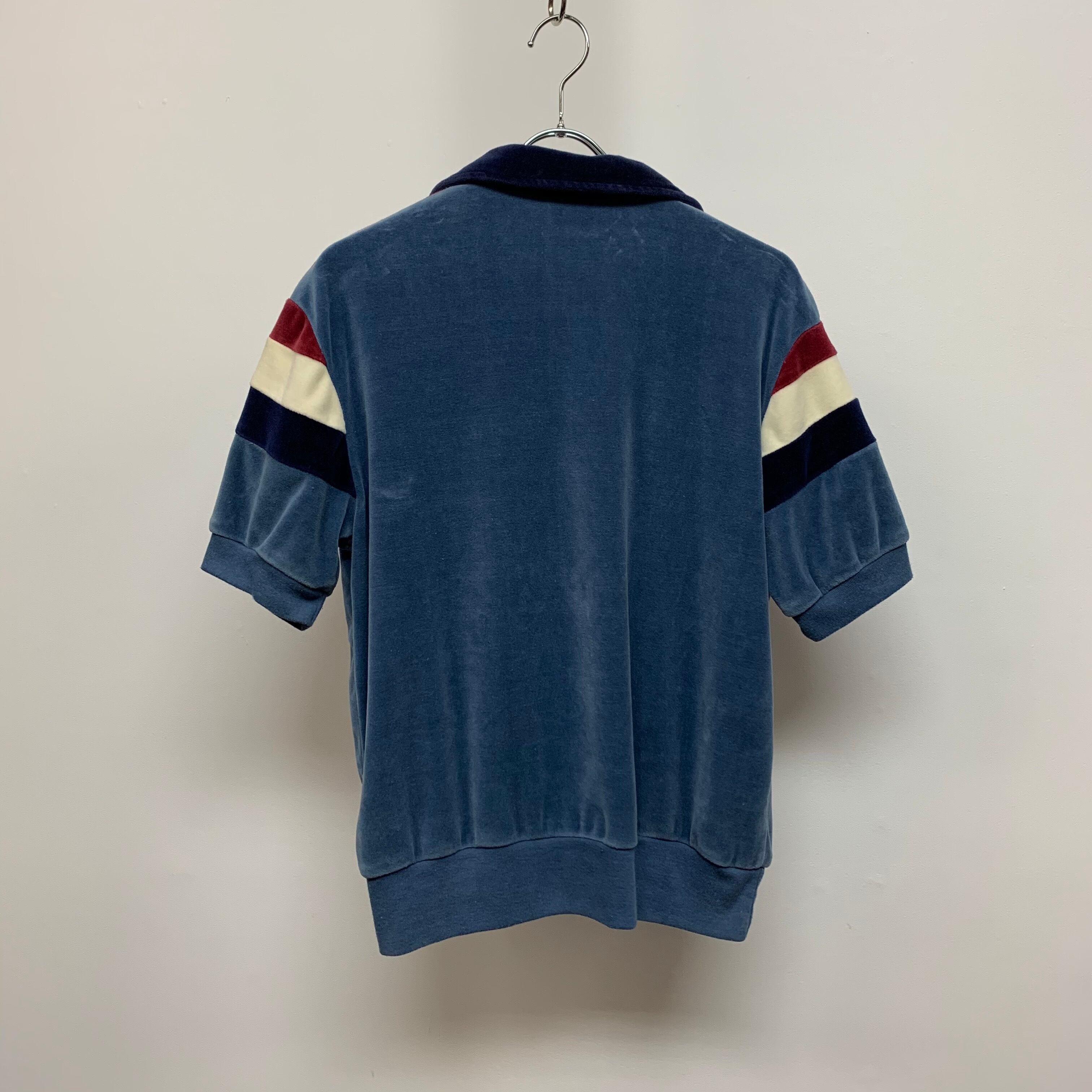 0213. 1980's velvet s/s polo ブルーグレー スキッパー 半袖ポロ ベロア 80s 80年代 vintage 古着