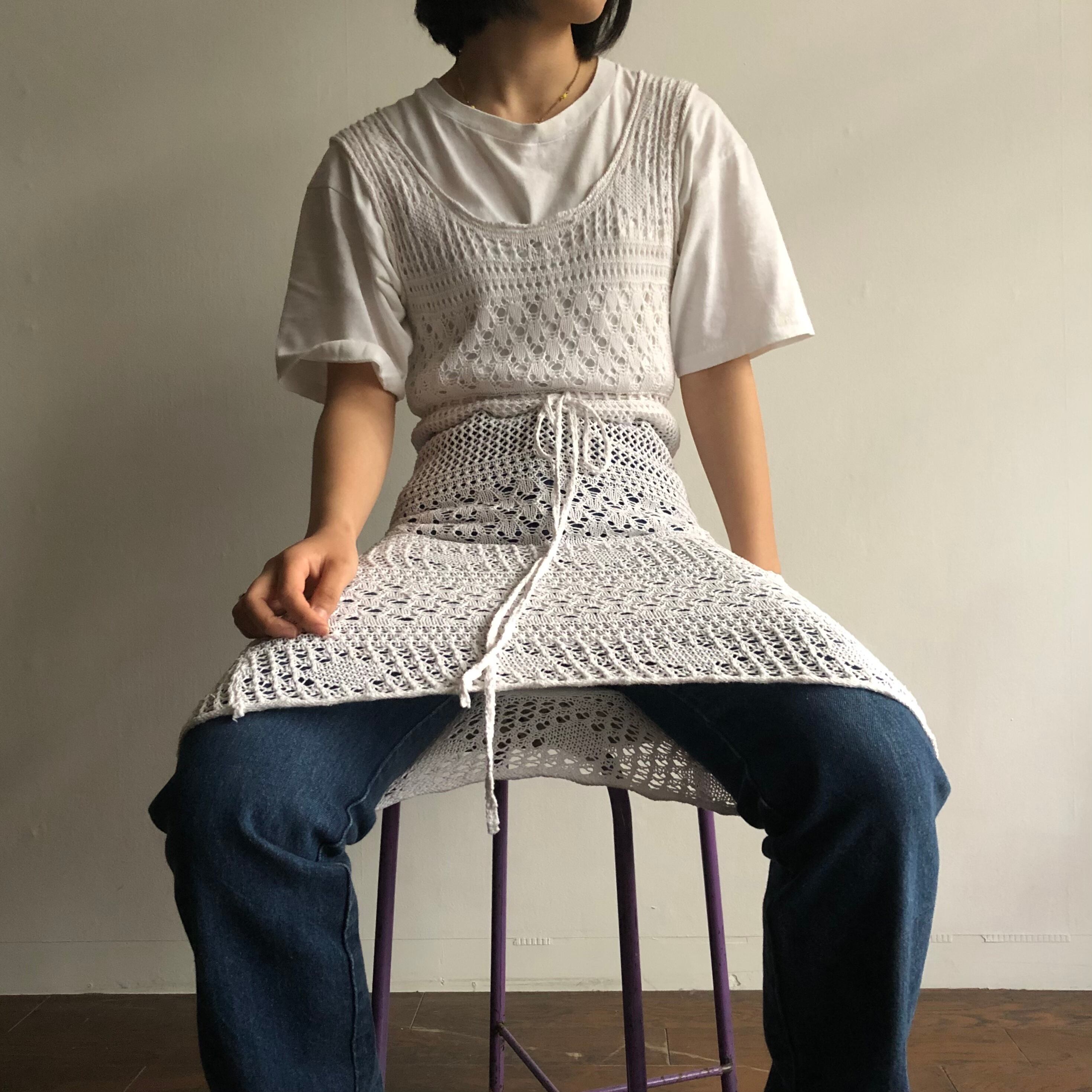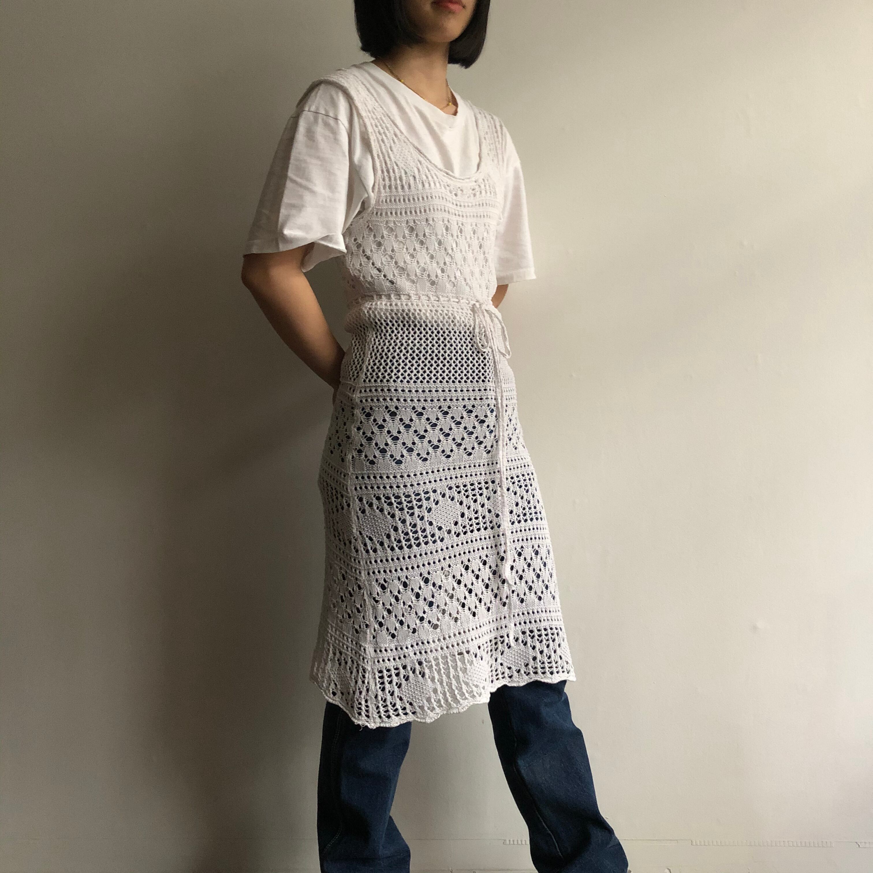 0224. crochet knit one piece ホワイト クロシェニット ワンピース レディース古着