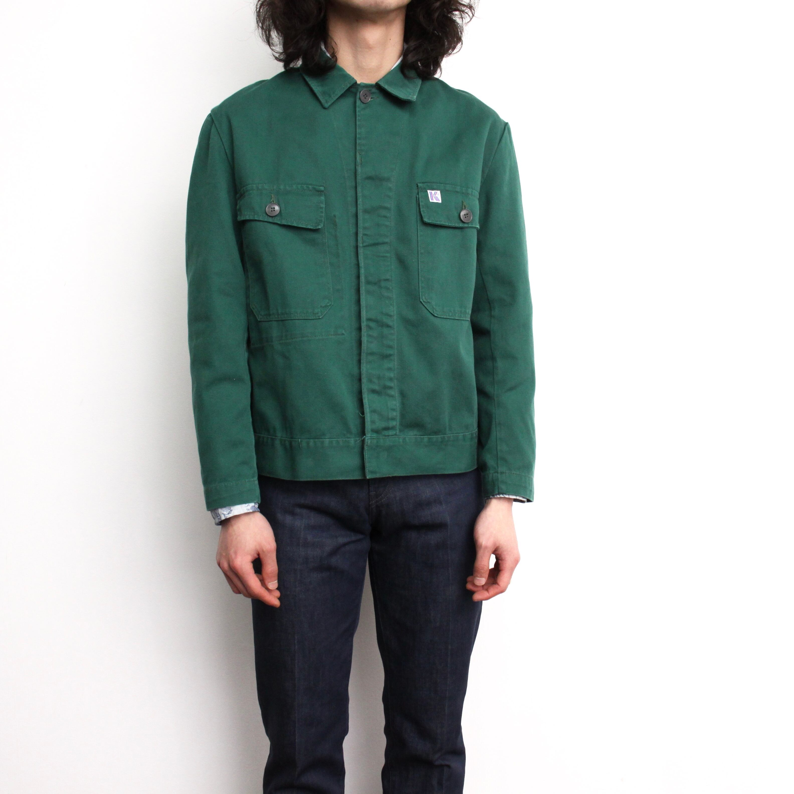 0219. euro work jumper グリーン ワークジャケット カバーオール ユーロ古着 vintage