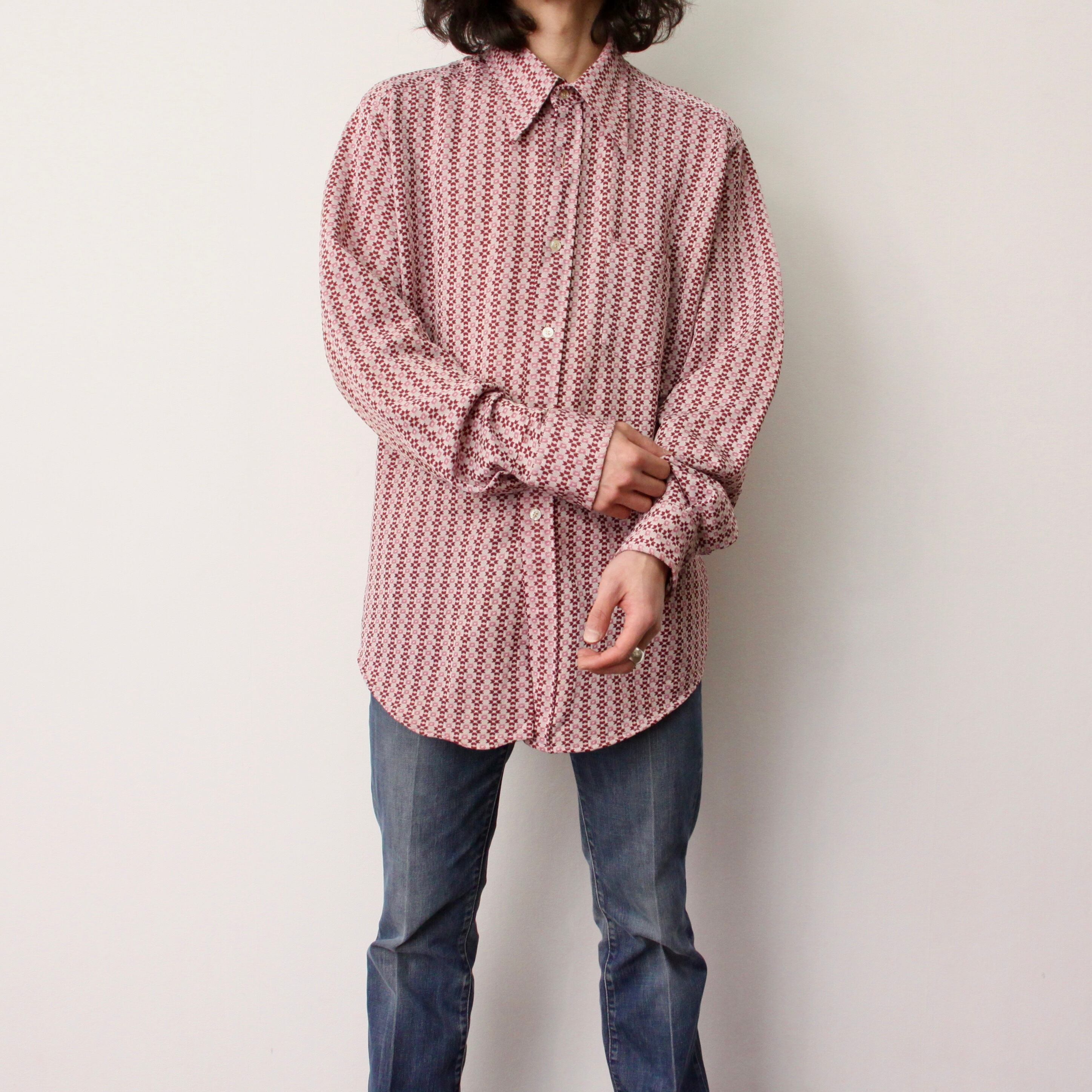 0233. 1970's jacquard knit shirt 70s 70年代 ジャガード ニットシャツ vintage ヴィンテージ us古着 古着