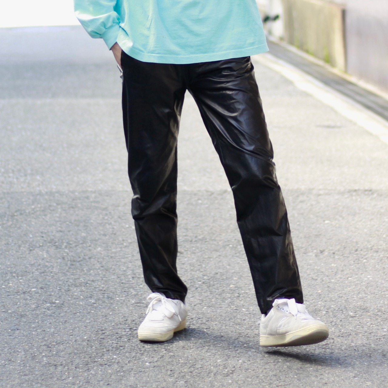 NYマンハッタン五番街の高級デパートのレザーイージーパンツ。