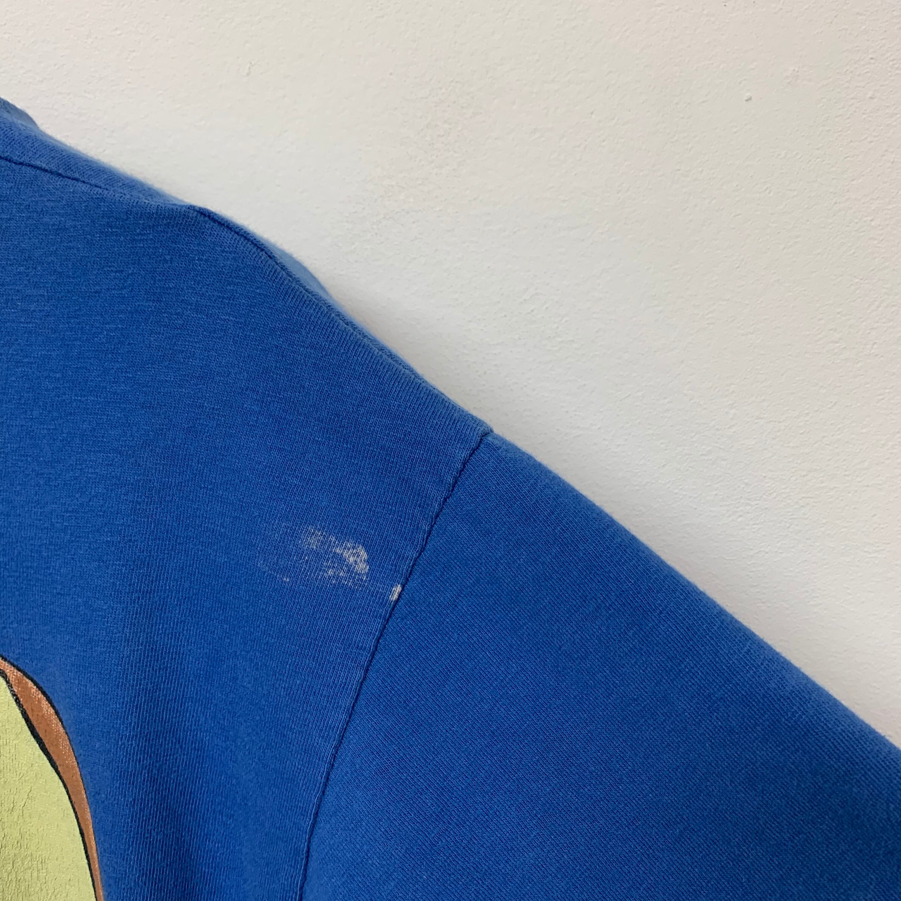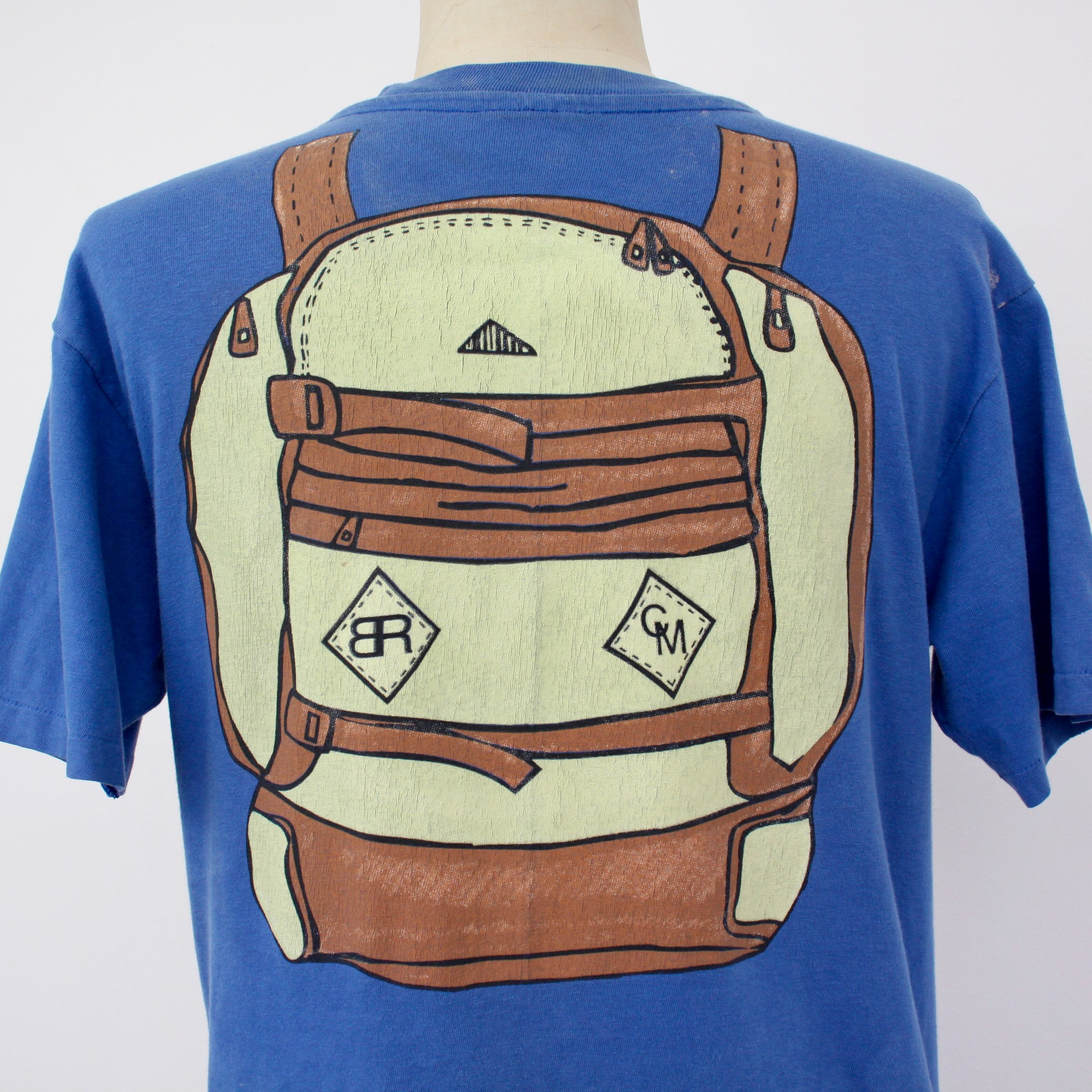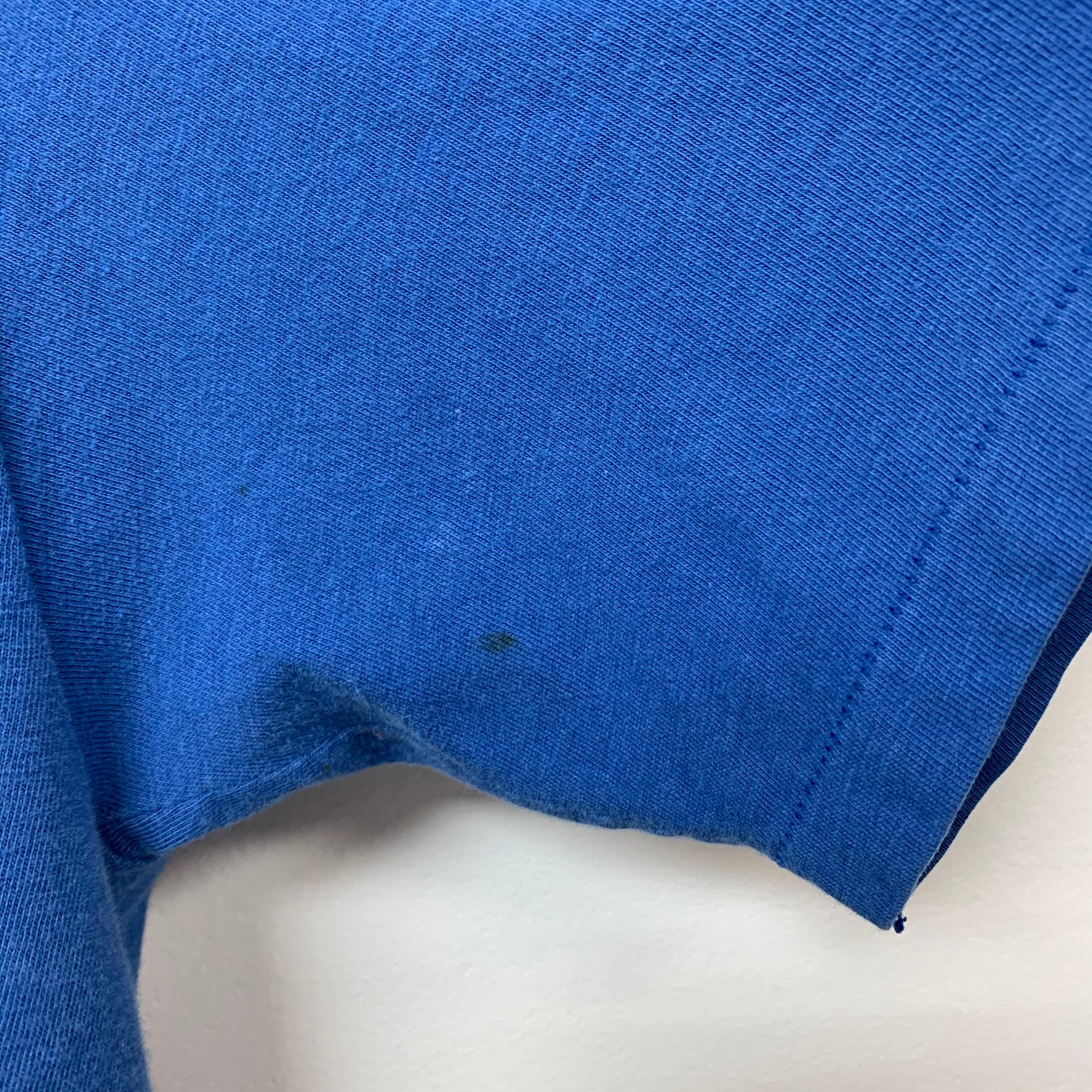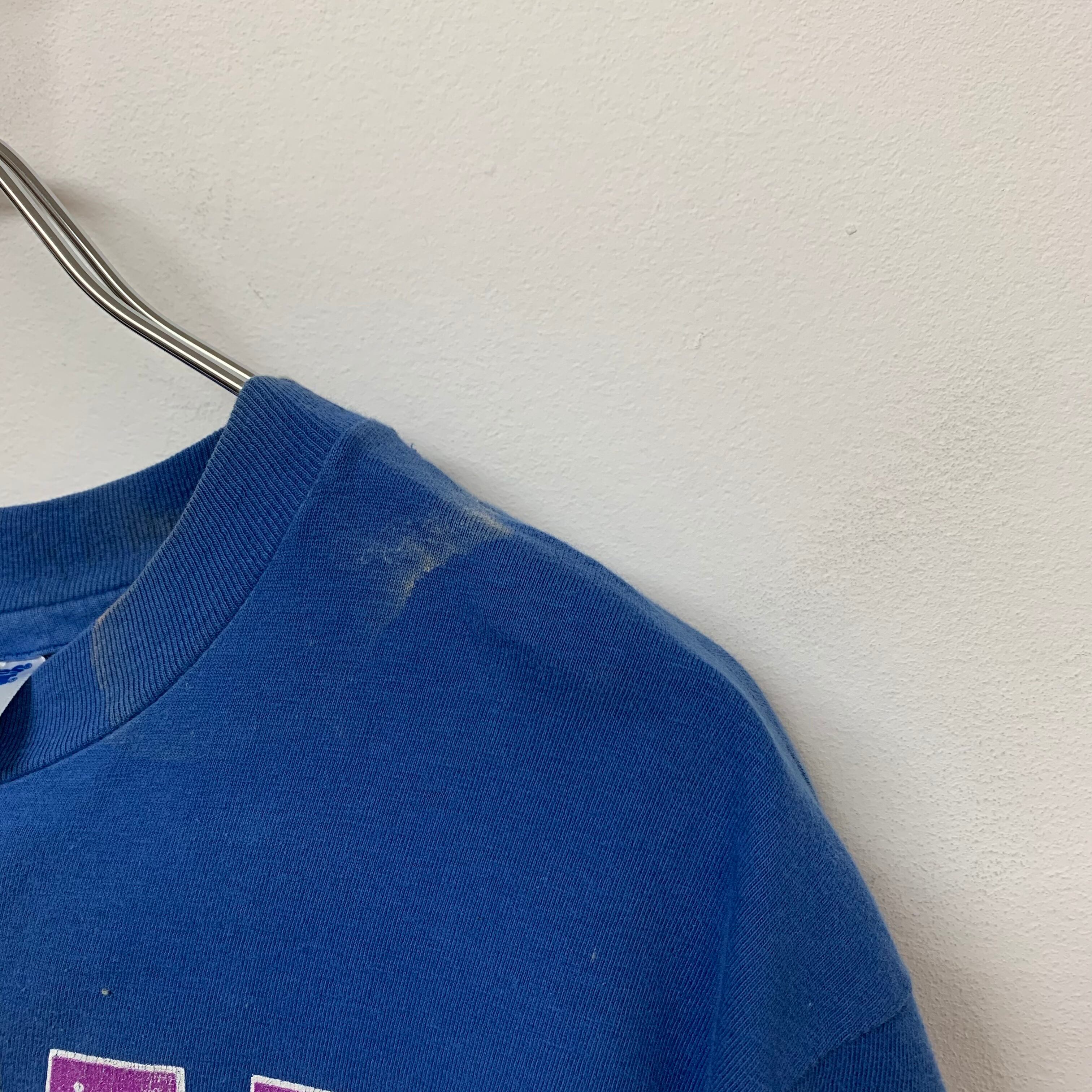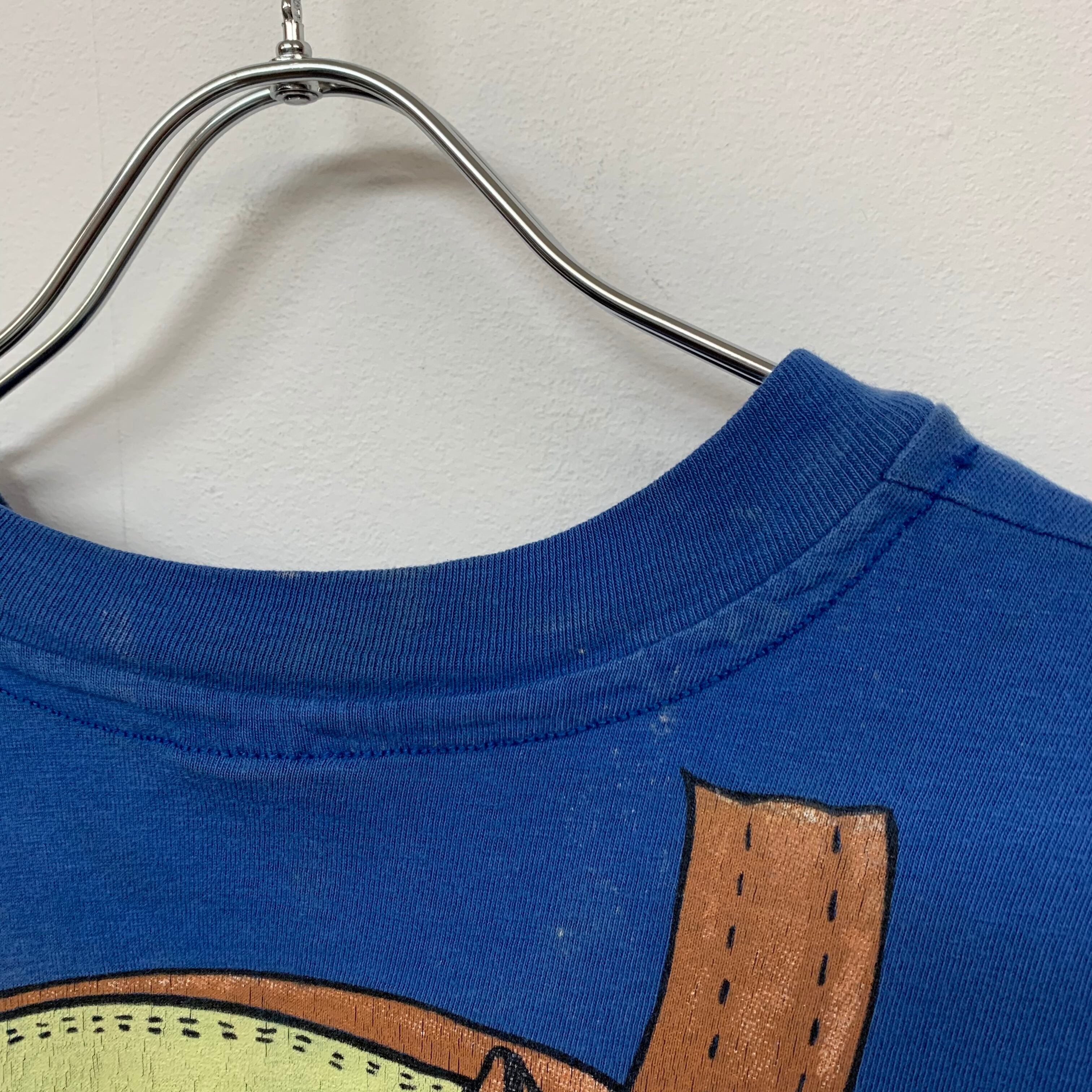 0261. 1990's outdoor tee ブルー プリントTシャツ キャンプ アウトドア USA製 hanes beefy 90s 90年代 古着 vintage