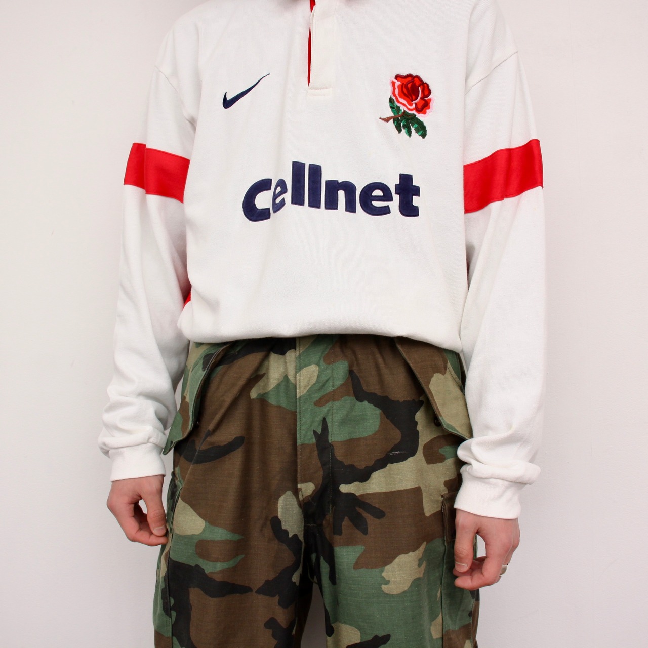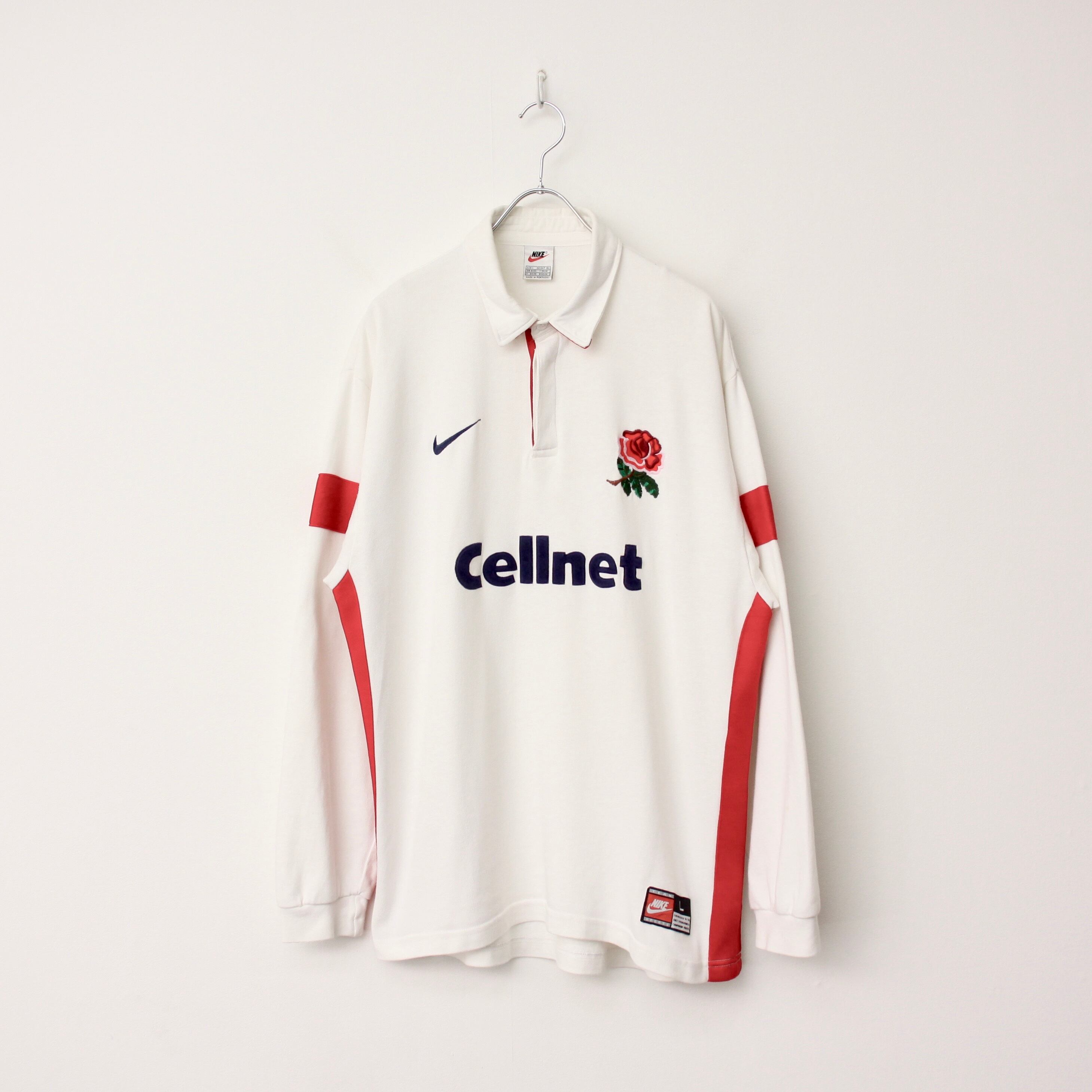 0262. 1990's euro nike rugger shirt ホワイト × レッド ラガーシャツ バラ 刺繍 イングランド代表 ナイキ 90s 90年代 古着