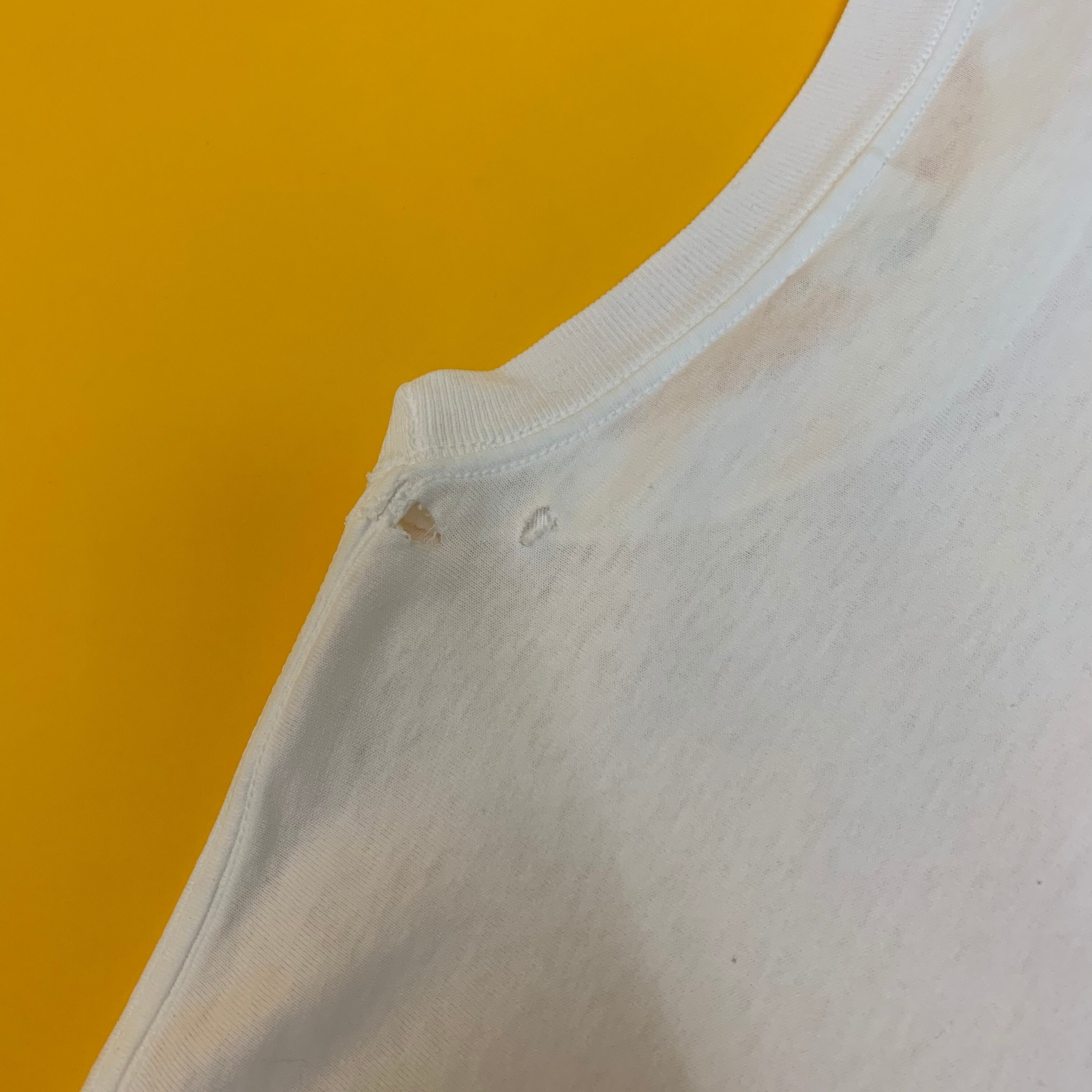 ピンホールあり。袖が少しリサイズされていますが着用に支障のない程度です。