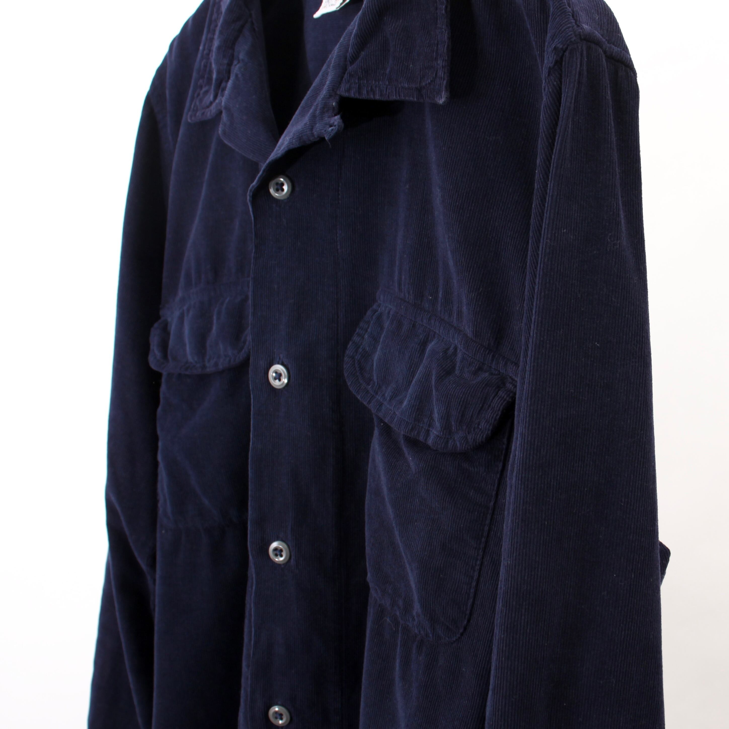 0300. 1980's summer corduroy ネイビー サマーコーデュロイ 長袖 ボックスシャツ 開襟 オープンカラー ケニントン 80s 80年代 vintage Kennington 古着