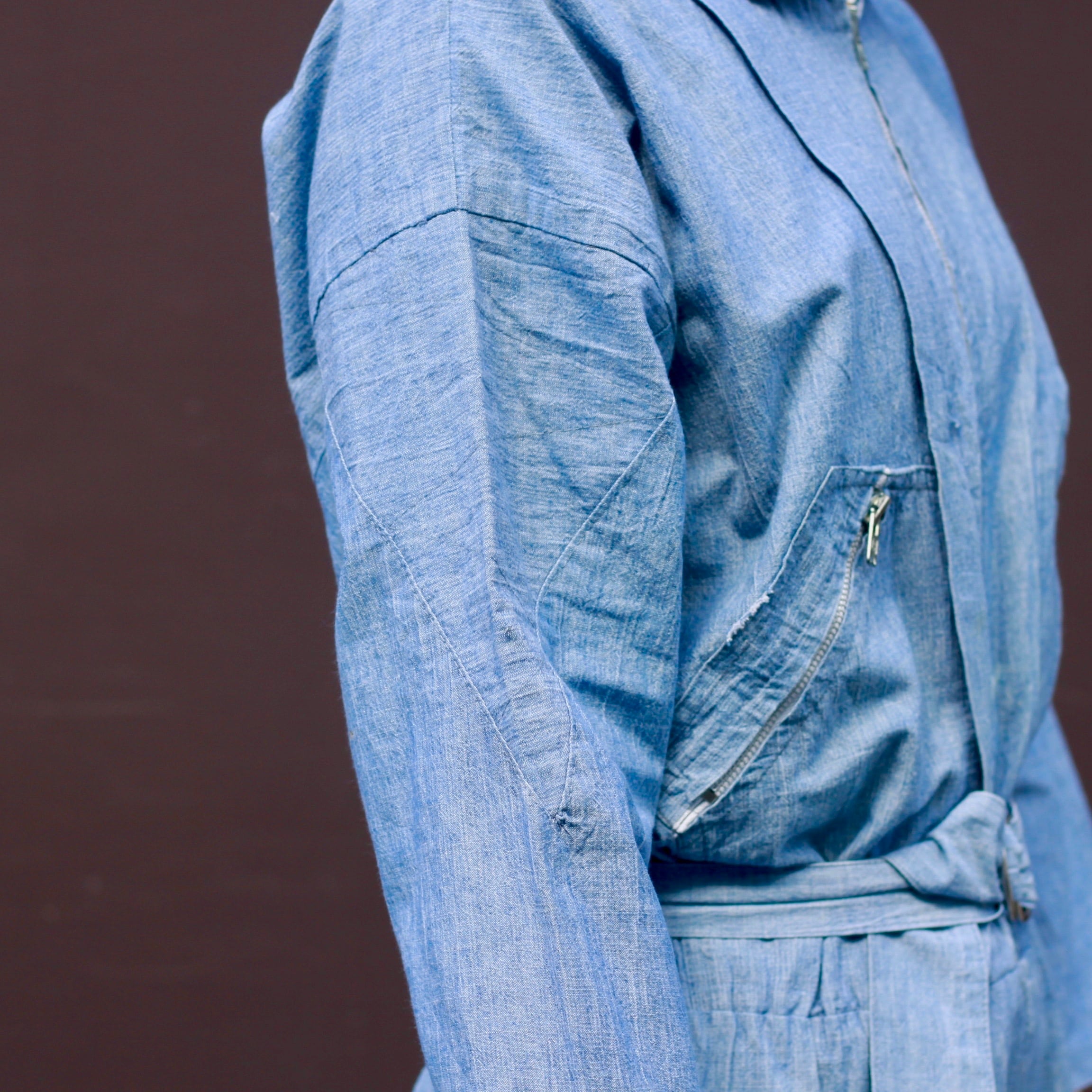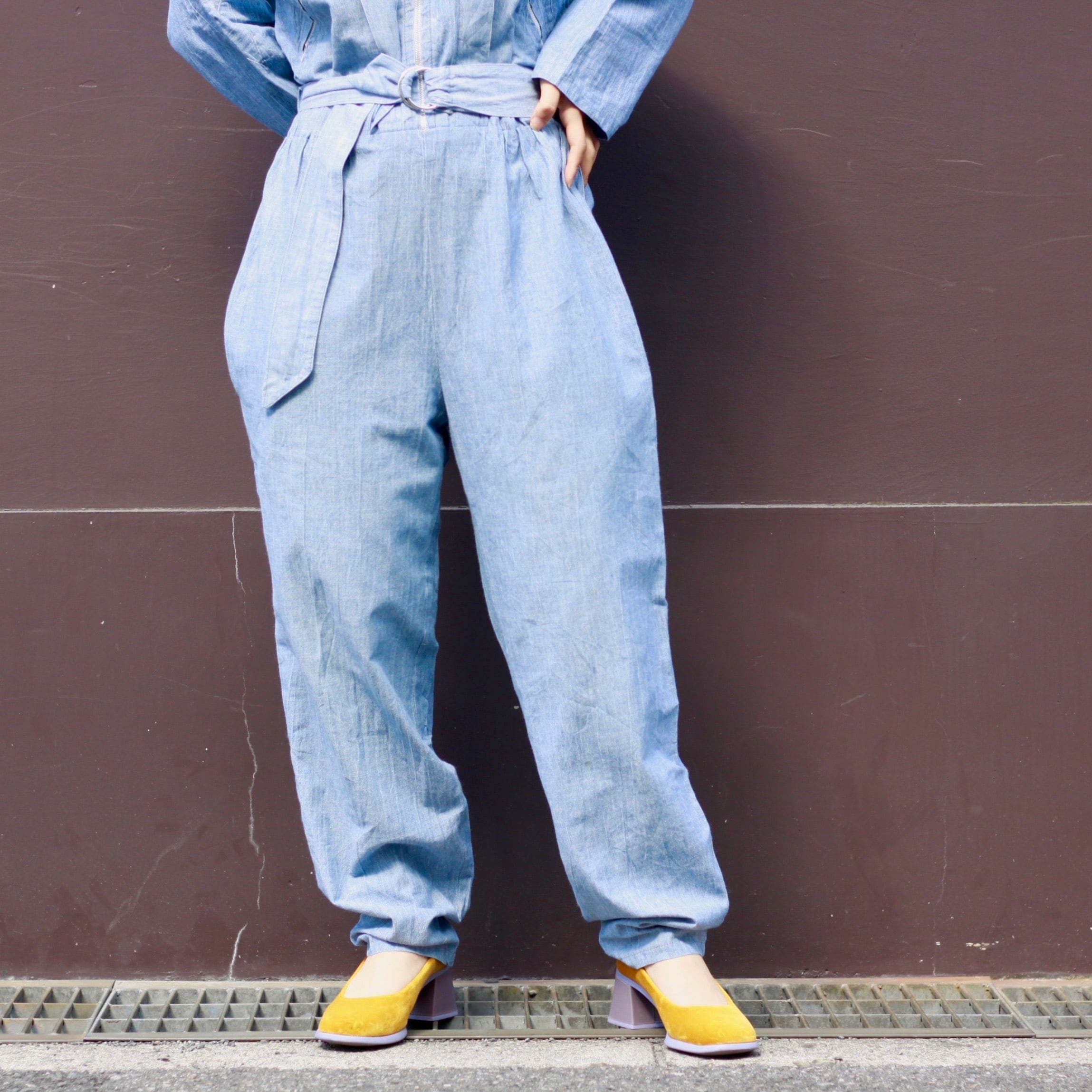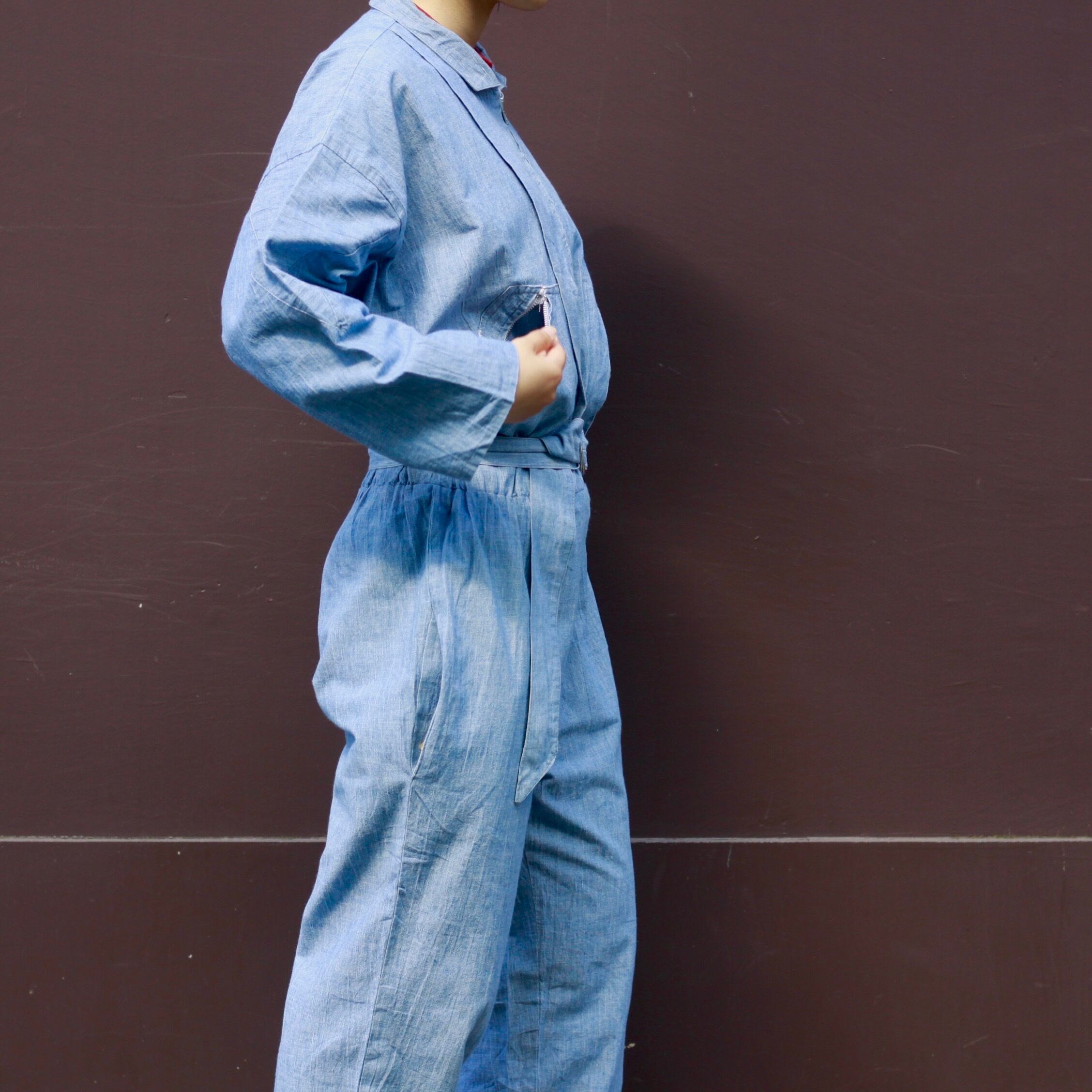 0306. 1980's euro vintage design jumpsuit ブルー シャンブレー ジャンプスーツ つなぎ 80s 80年代 ユーロ レディース古着
