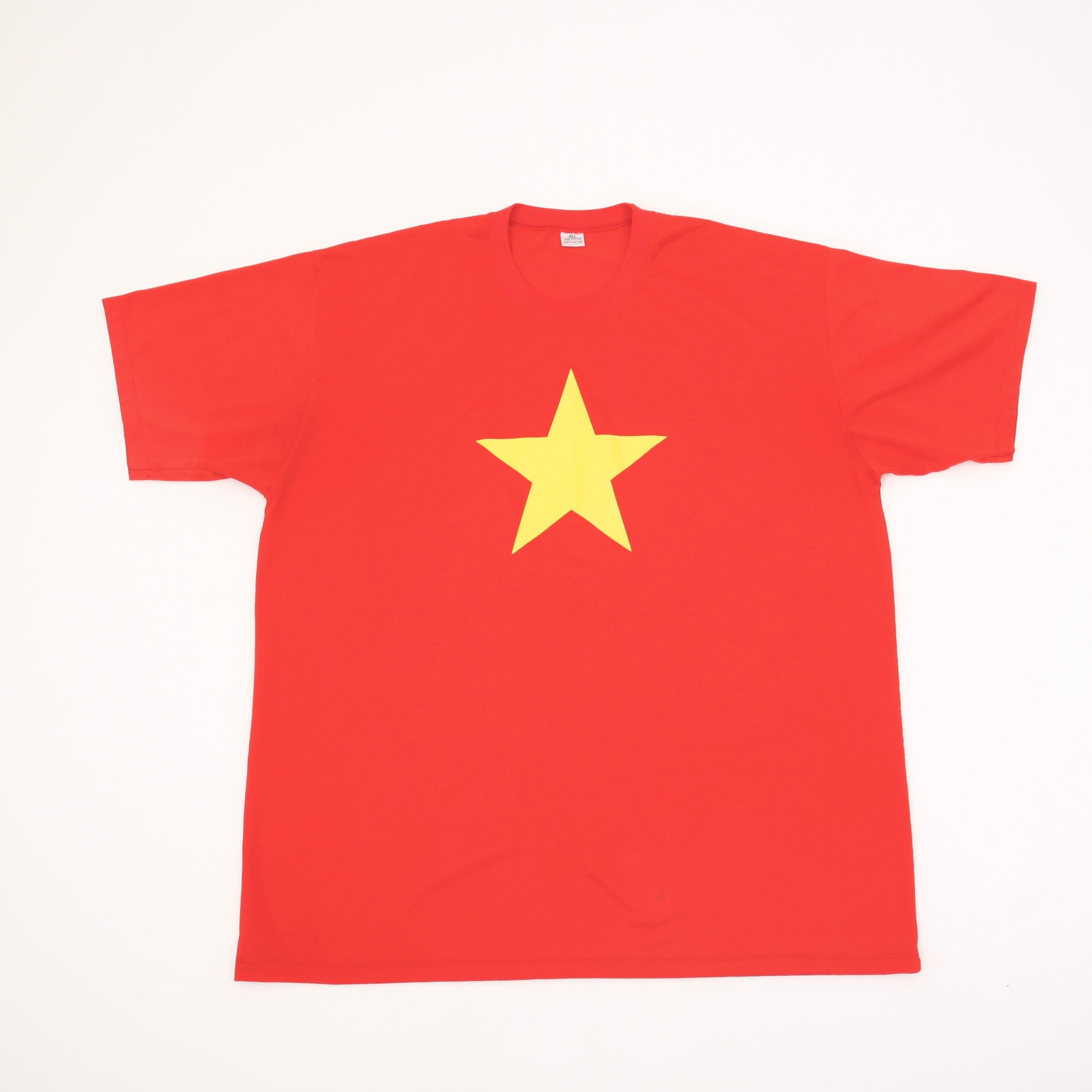 0324. yellow star tee イエロー×レッド プリントTシャツ スター 星 ワンポイント 古着
