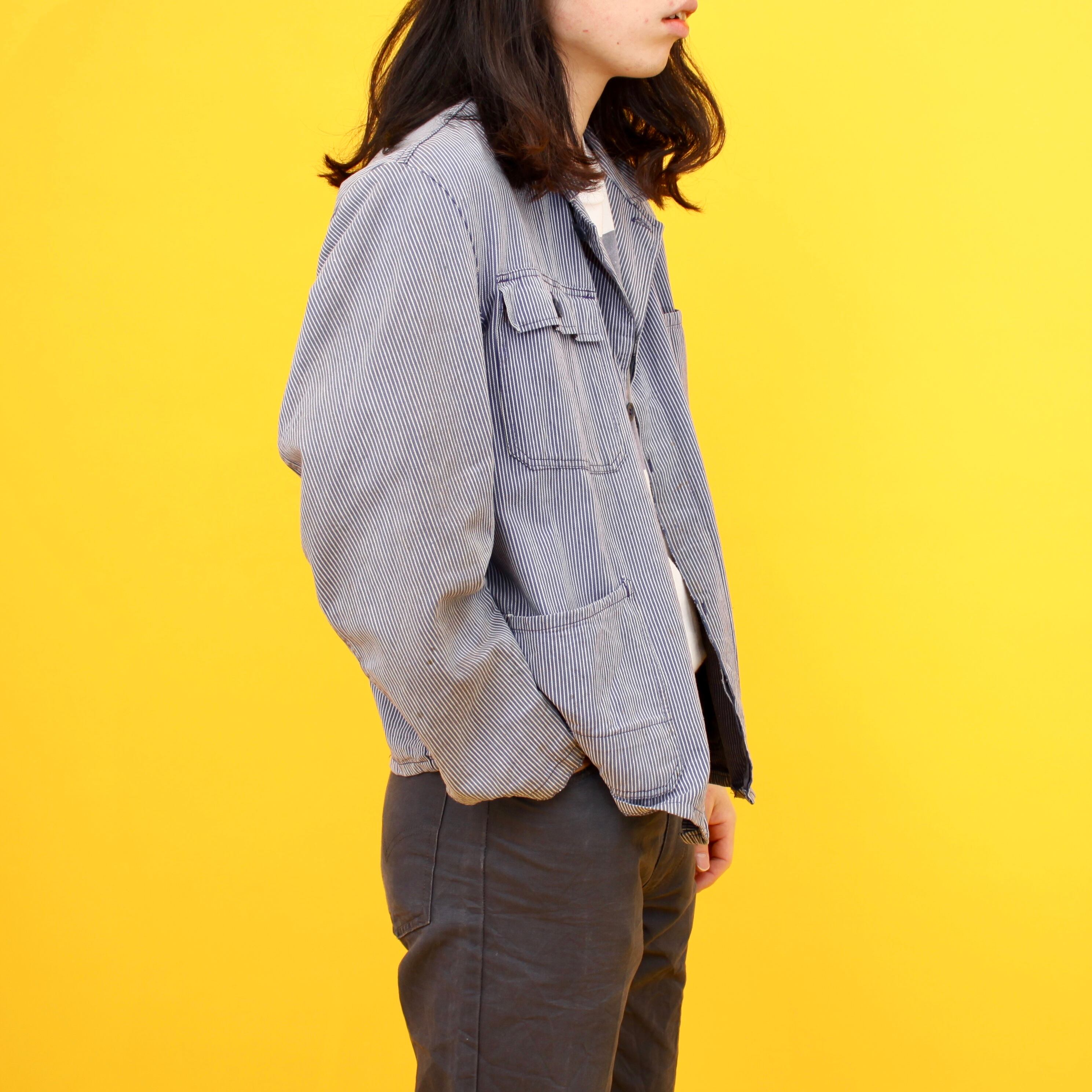0340. euro work engineer jacket カバーオール エンジニアジャケット ヒッコリーストライプ リペア ユーロワーク フレンチワーク 襤褸 vintage 古着