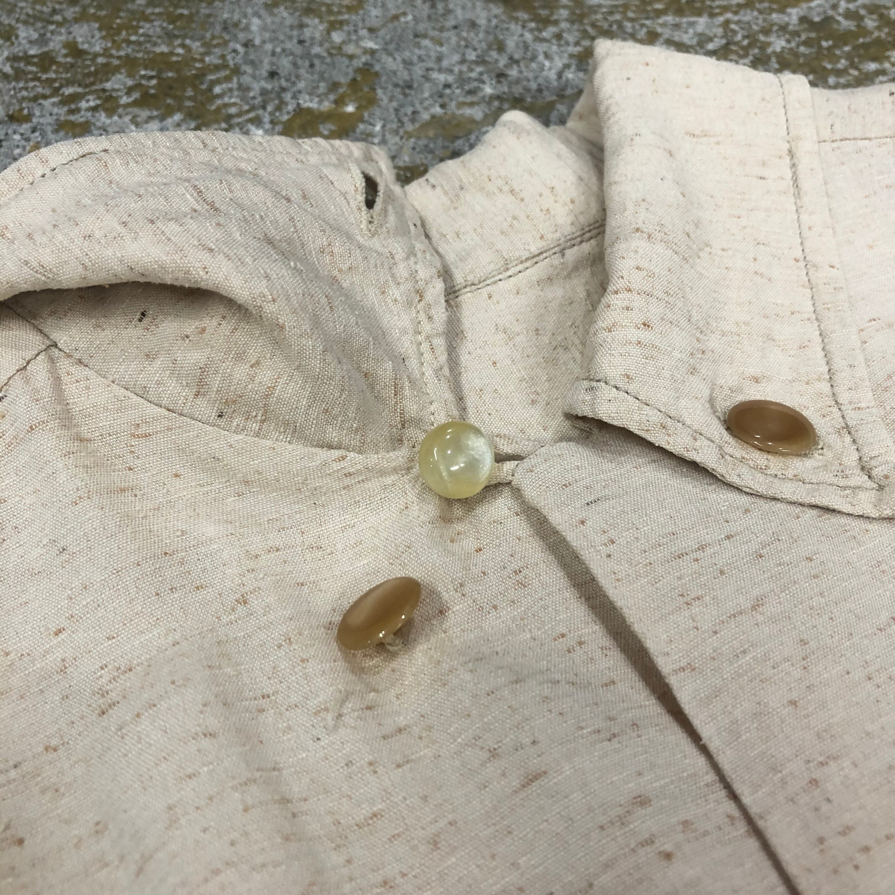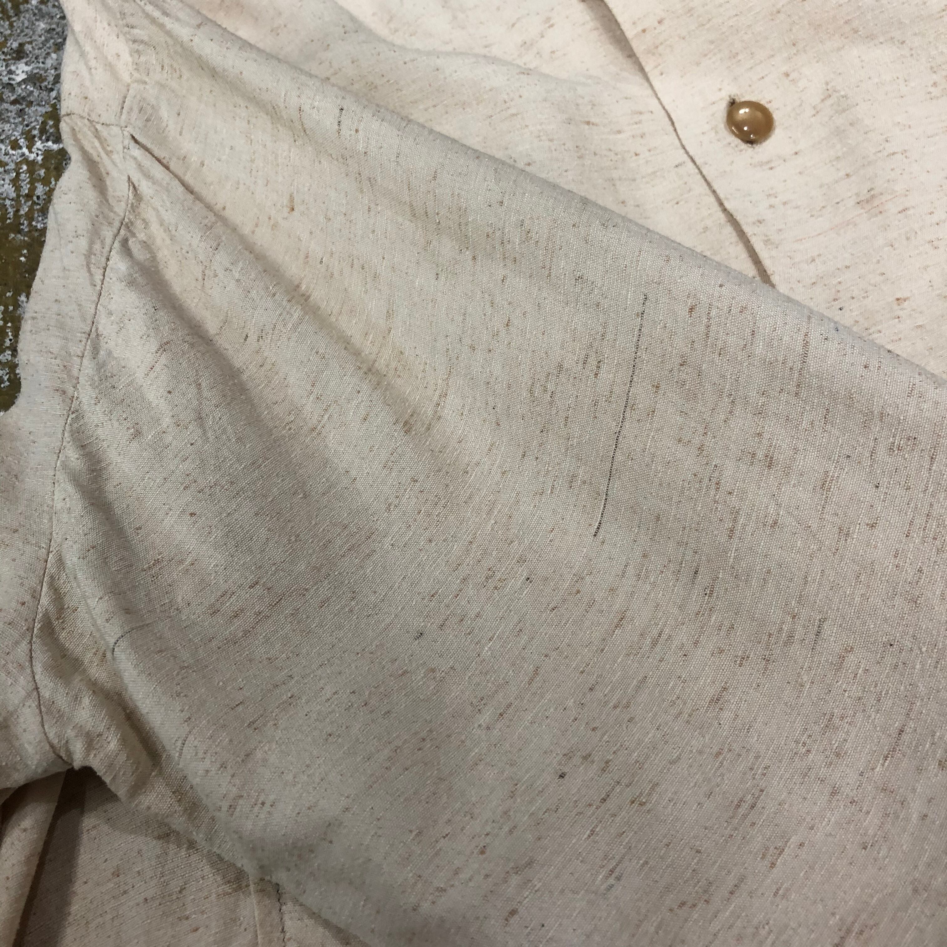 0357. 1950's personal order shirt 生成り 絣 レーヨン/コットン 長袖 変形シャツ 開襟 オープンカラー ボックスシャツ ビンテージ 50s 50年代 vintage 古着