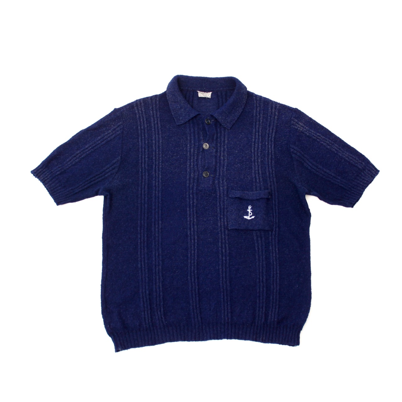 0375. mole yarn knit polo ネイビー 半袖 モールニット ポロシャツ euro vintage ユーロ古着