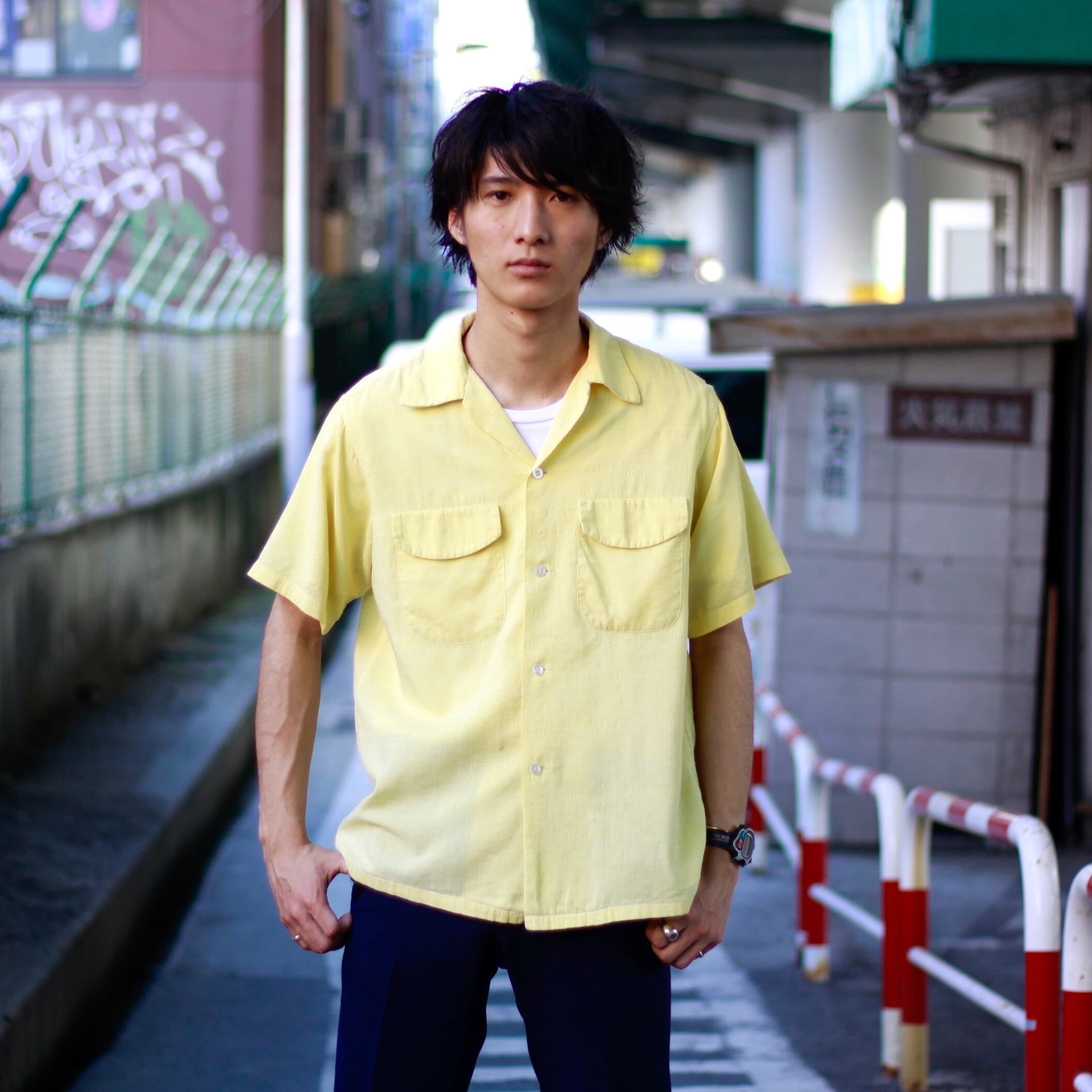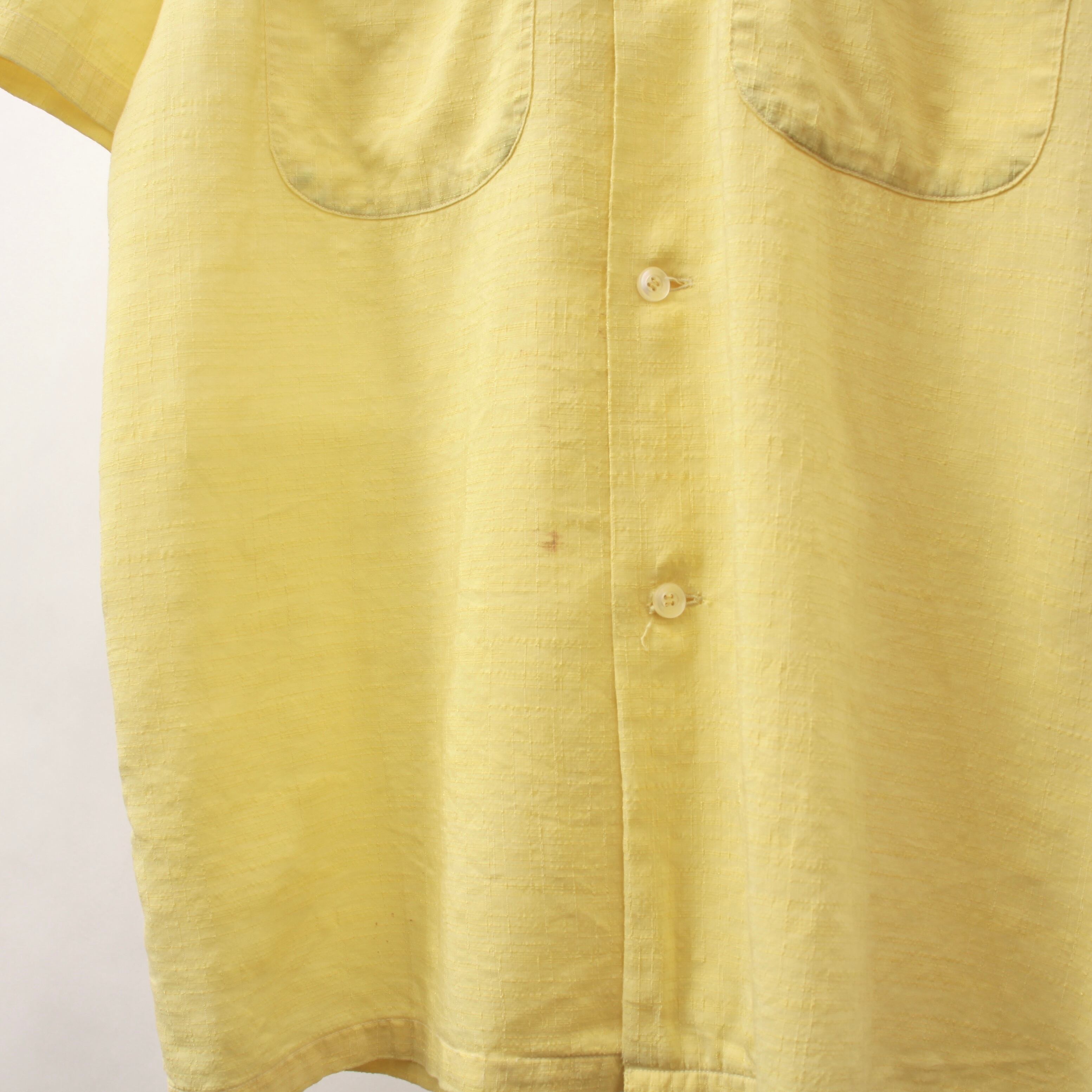 0416. 1950's Van Heusen yellow shirt イエロー 絣 半袖 ボックスシャツ 開襟 オープンカラー ループカラー バンヒューセン 50s 50年代 vintage 古着