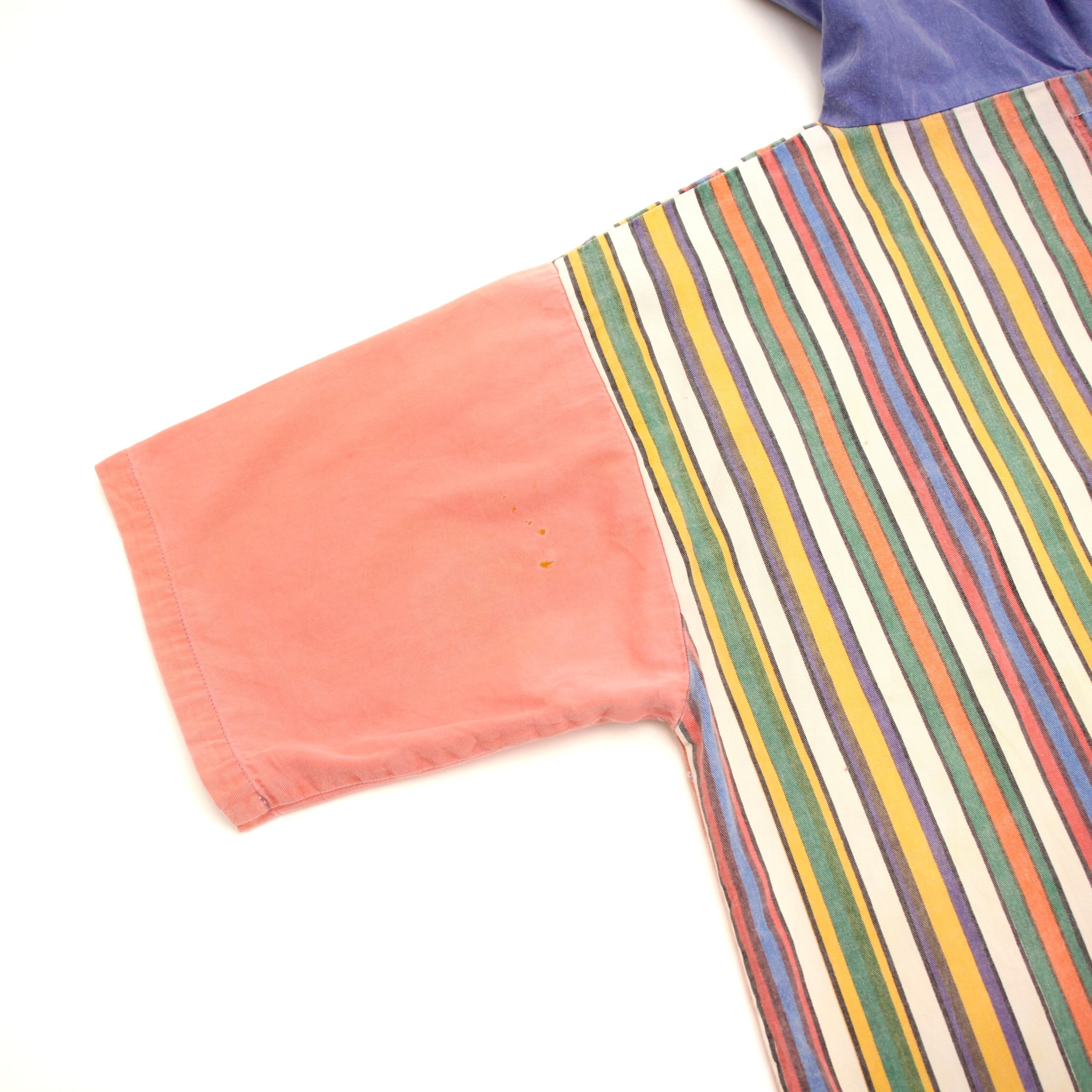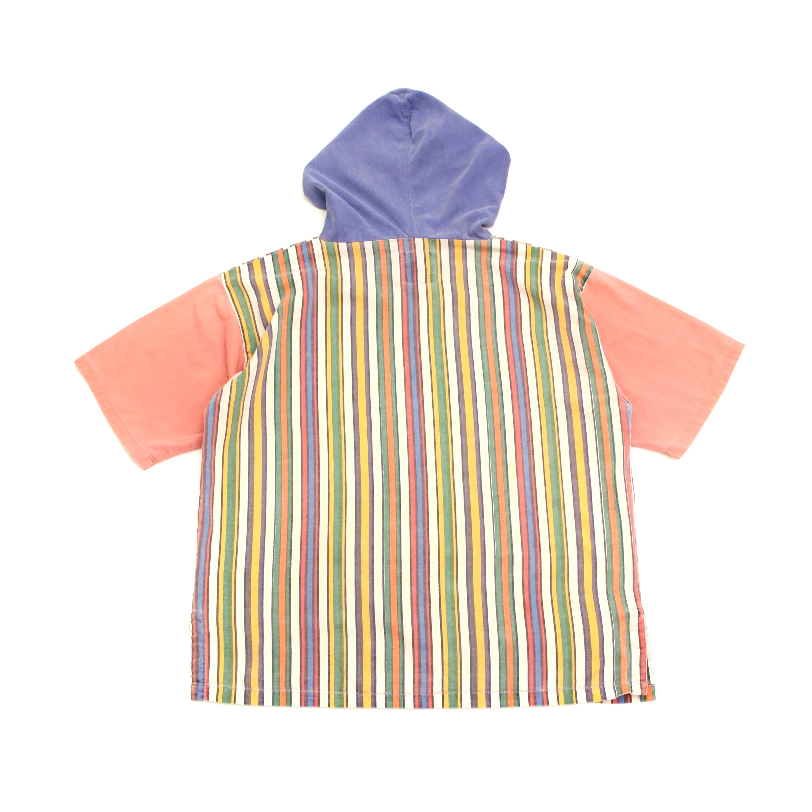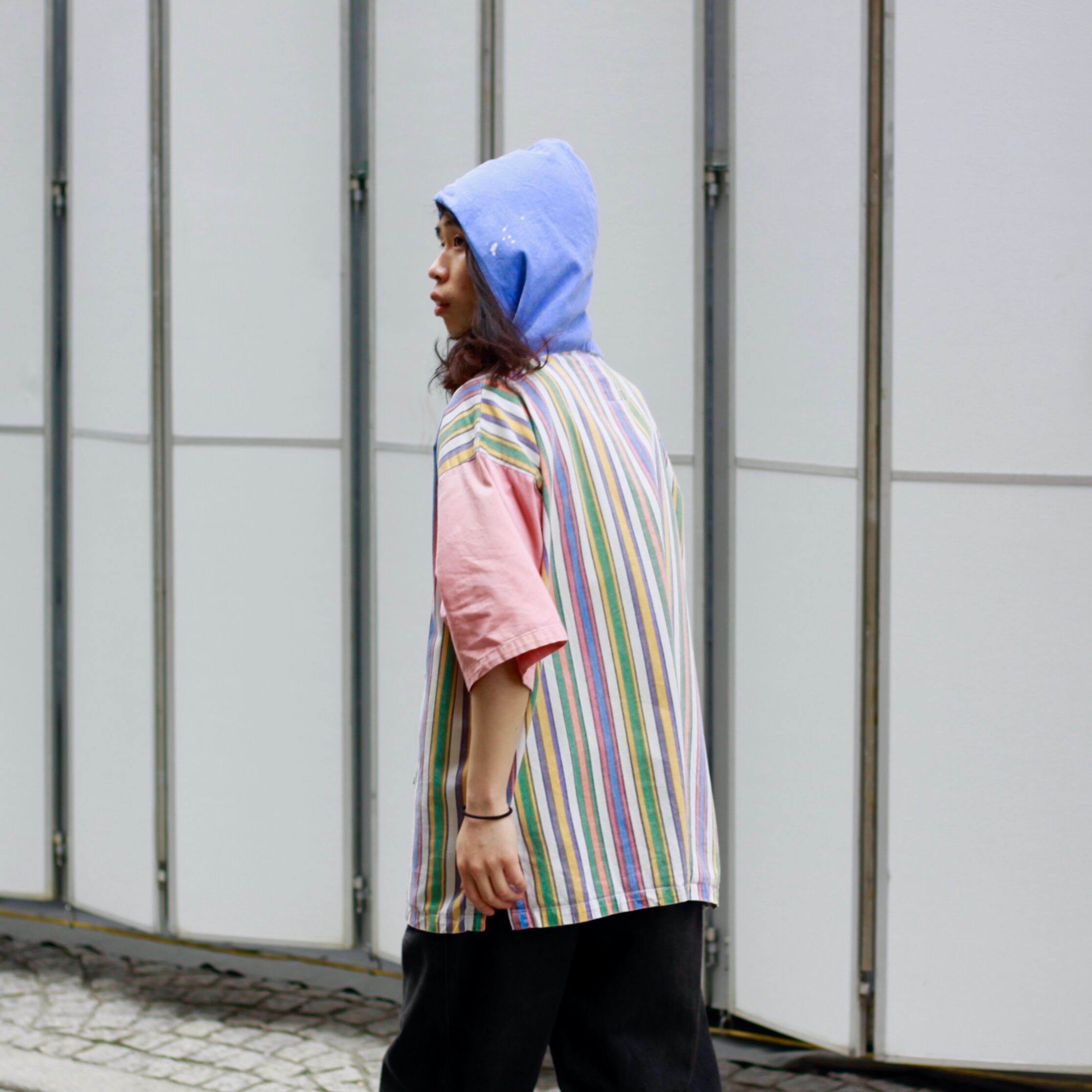 0418. 1990's crazy tee parka クレージー マルチカラー ストライプ Tシャツ パーカー 半袖 90s 90年代 vintage 古着