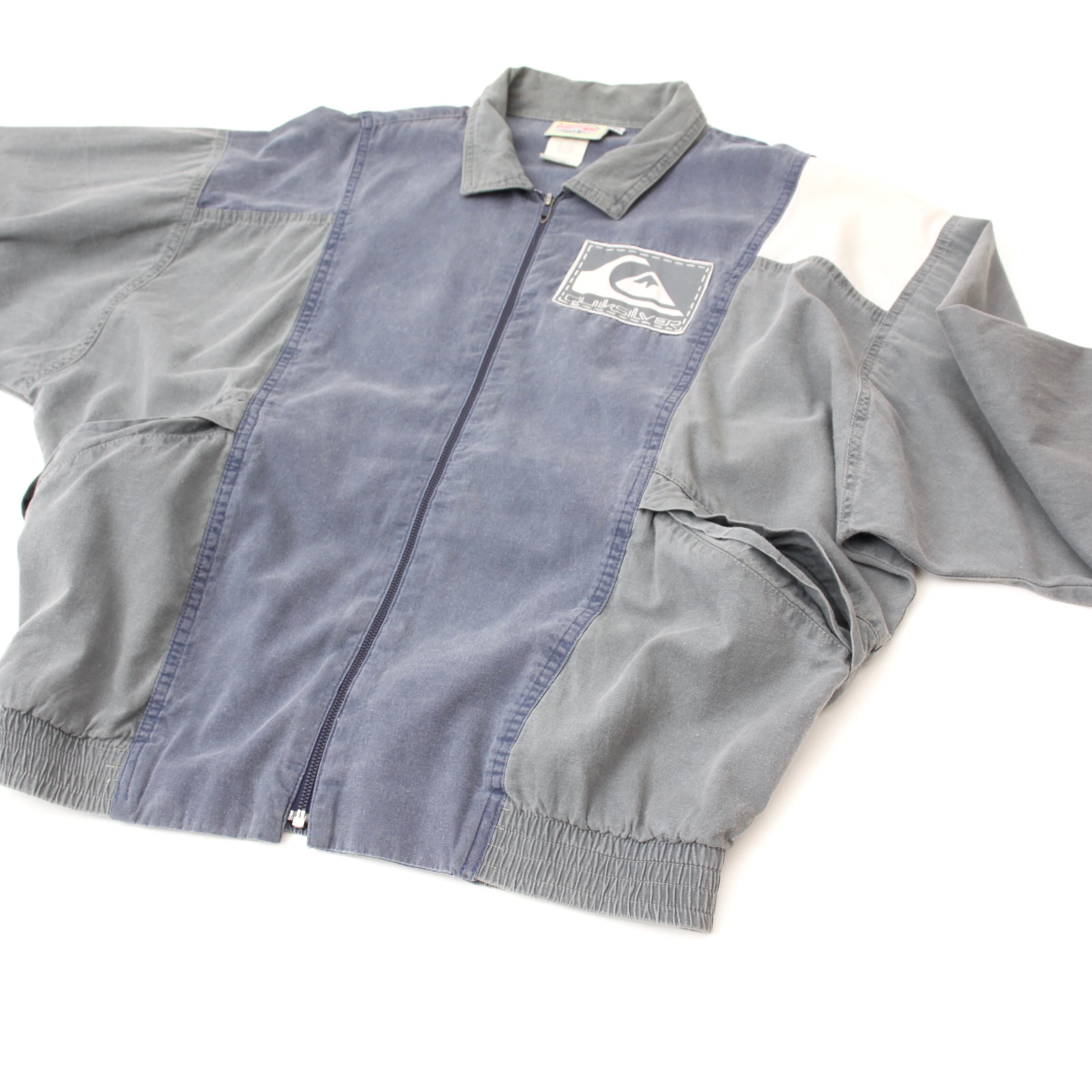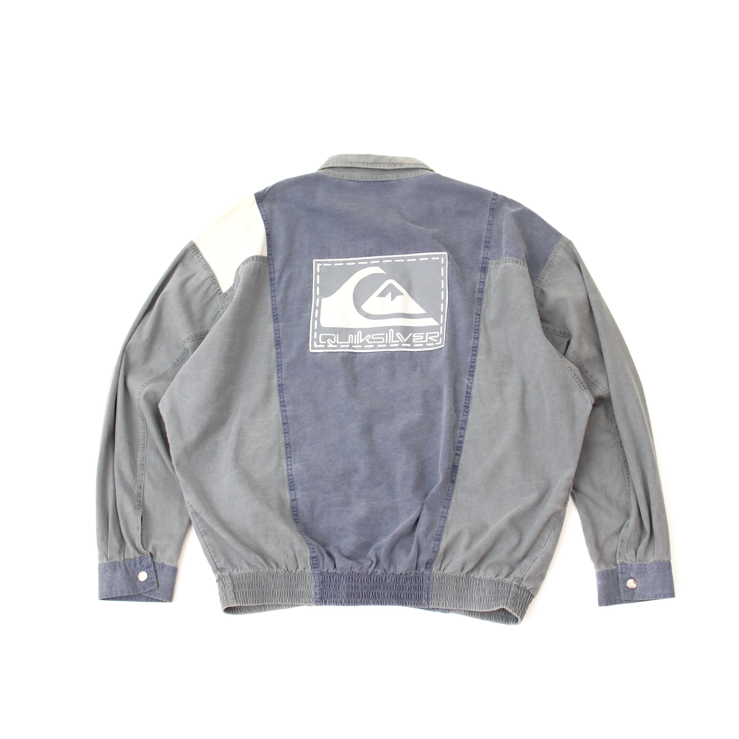 0432. 1990's quiksilver cotton jumper ネイビー グレー ブルゾン ジャケット スイングトップ クイックシルバー USA製 90s 90年代 vintage surf gear 古着