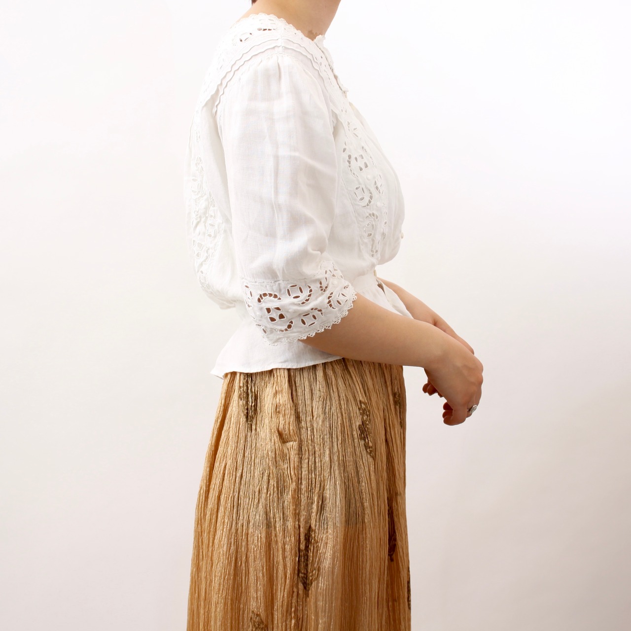 0445. European antique blouse ホワイト アンティークブラウス クロシェット 刺繍 ビンテージ ヨーロッパ レディース古着 euro vintage