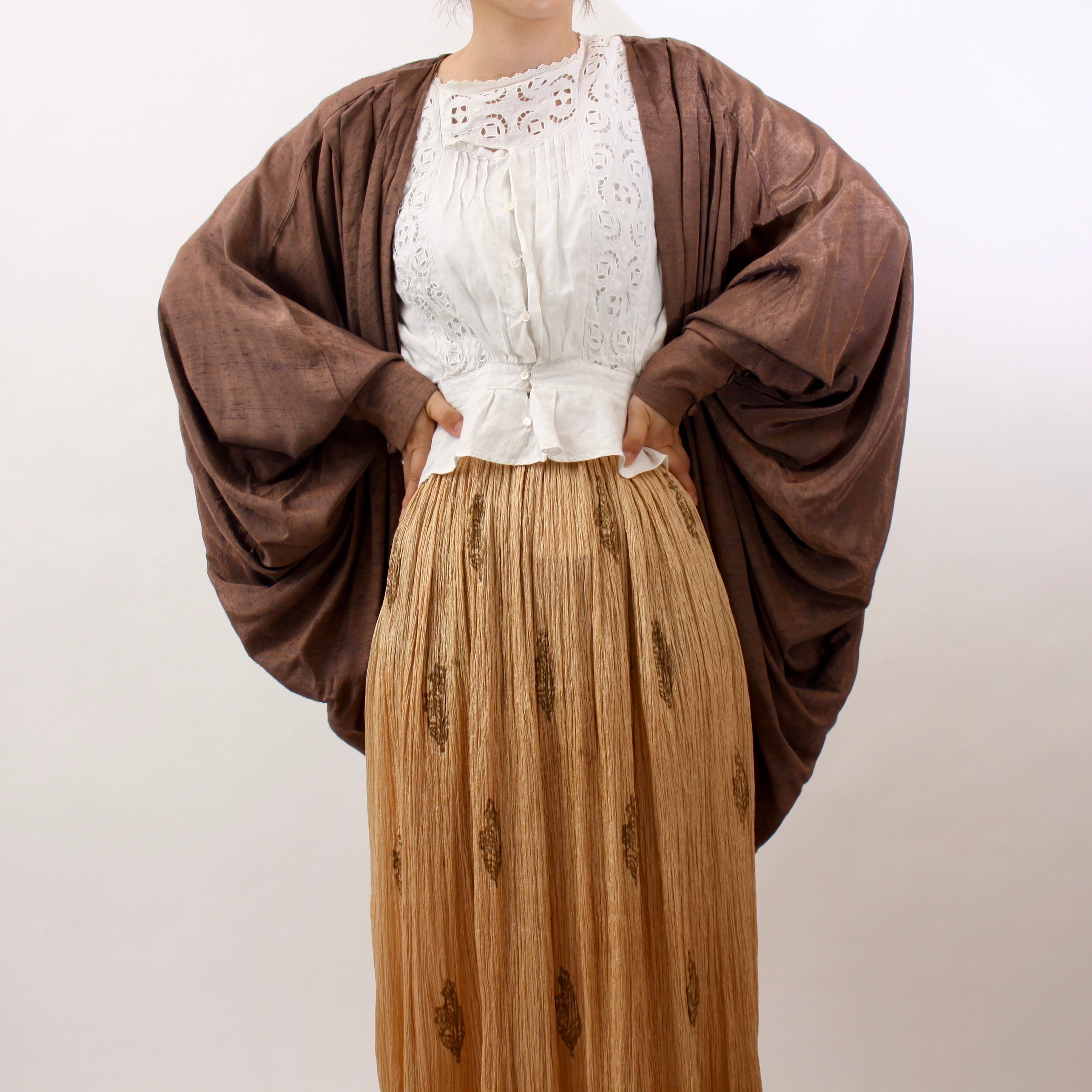 0446. super dolman button less shirt 玉虫ブラウン ギャザー ドルマンスリーブ ブラウス シャツ ジャケット vintage レディース古着