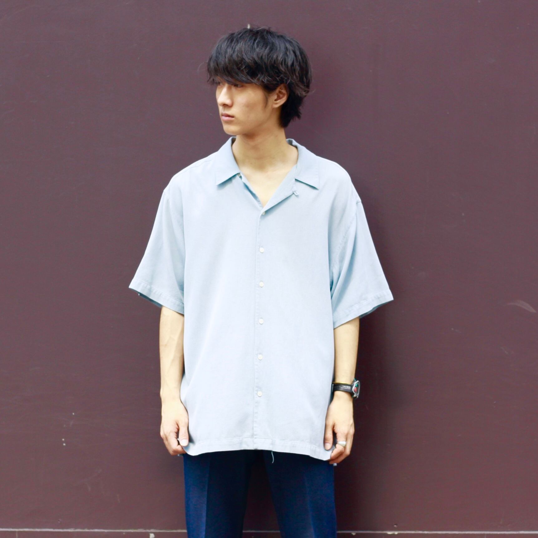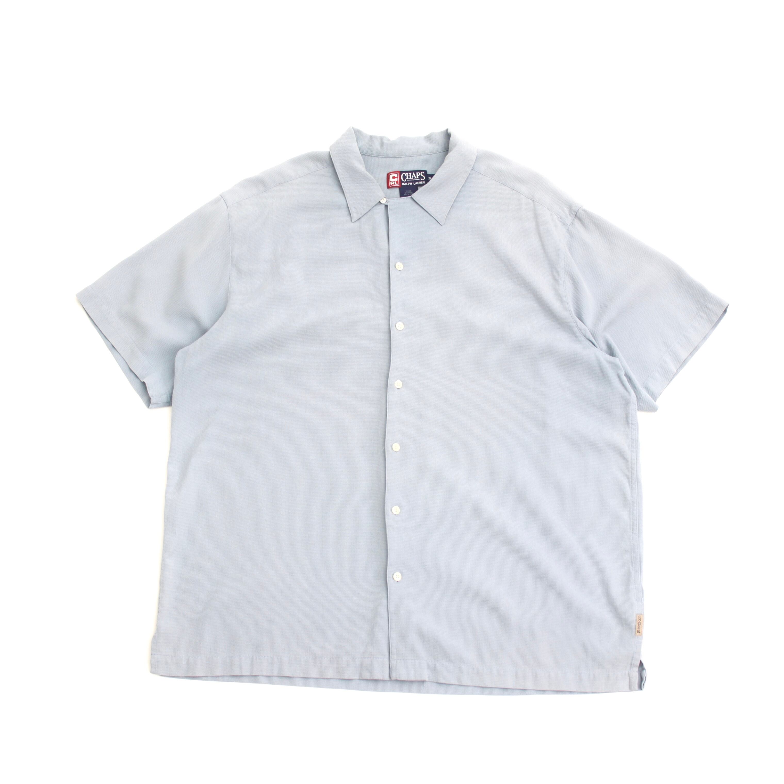 0444. CHAPS silk/cotton open collar shirt サックスブルー オープンカラー 半袖シャツ 開襟 XL チャップス ラルフローレン vintage Ralph Lauren 古着