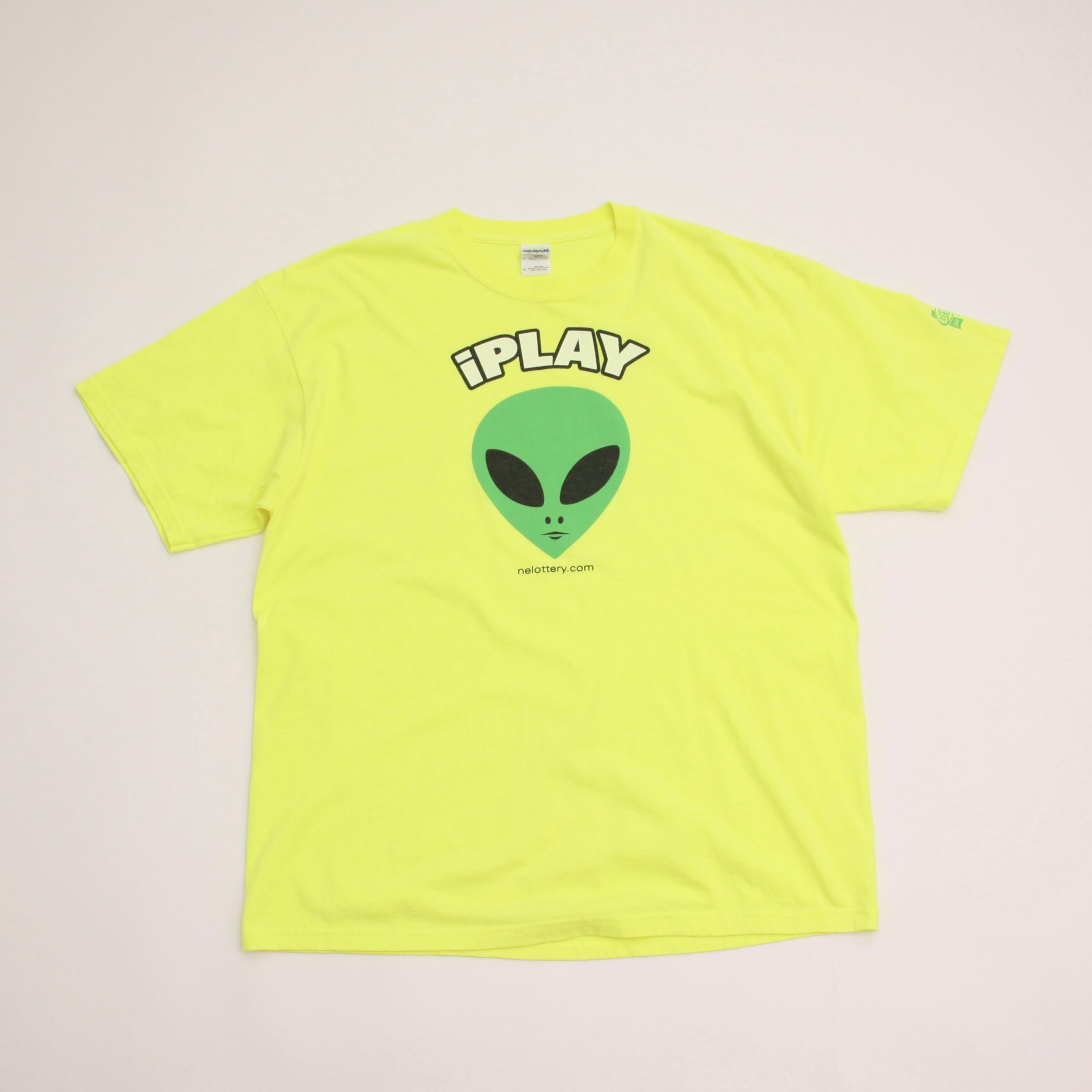 0458. 2000's grey printed tee 蛍光イエロー プリントTシャツ 宇宙人 グレイ 00s 00年代 古着