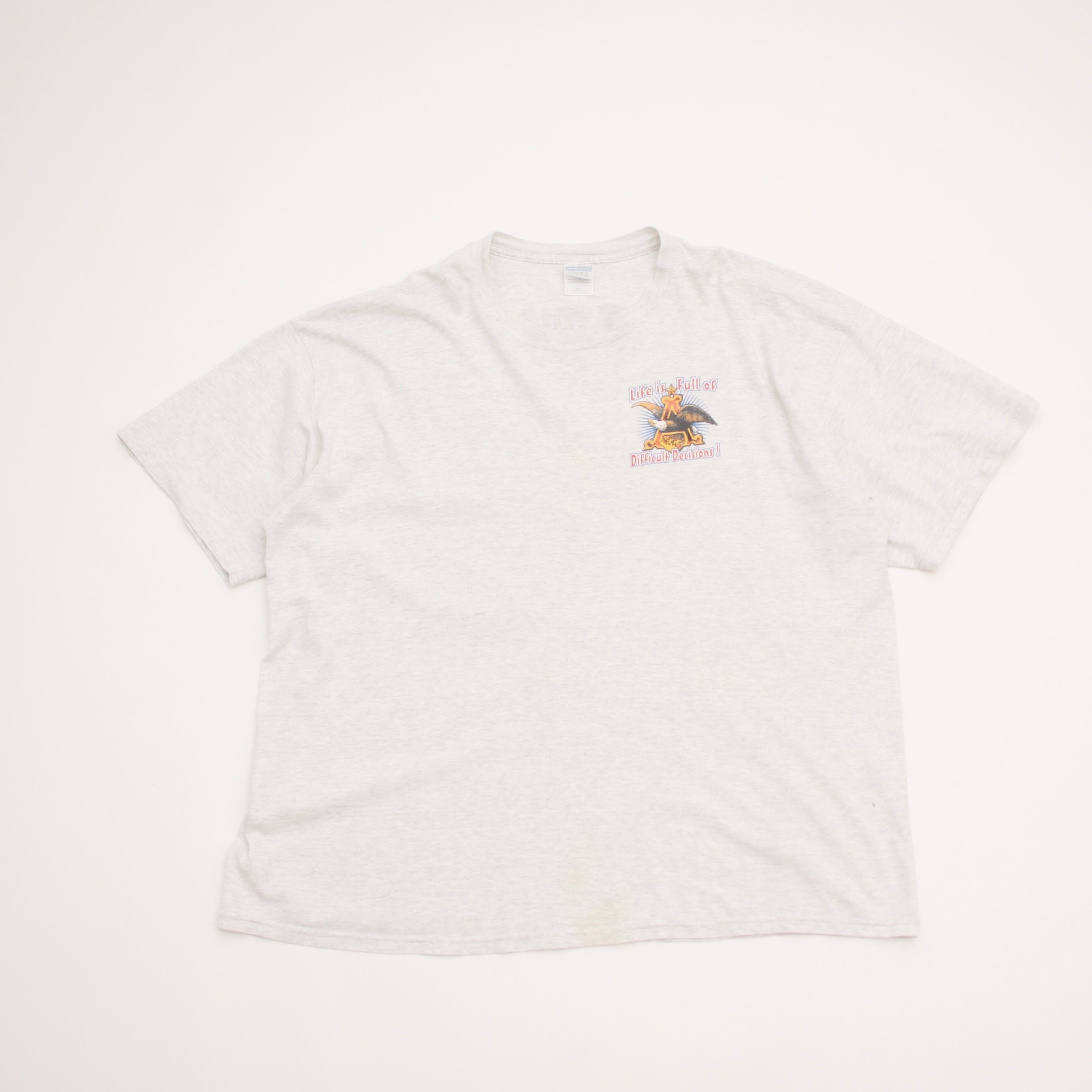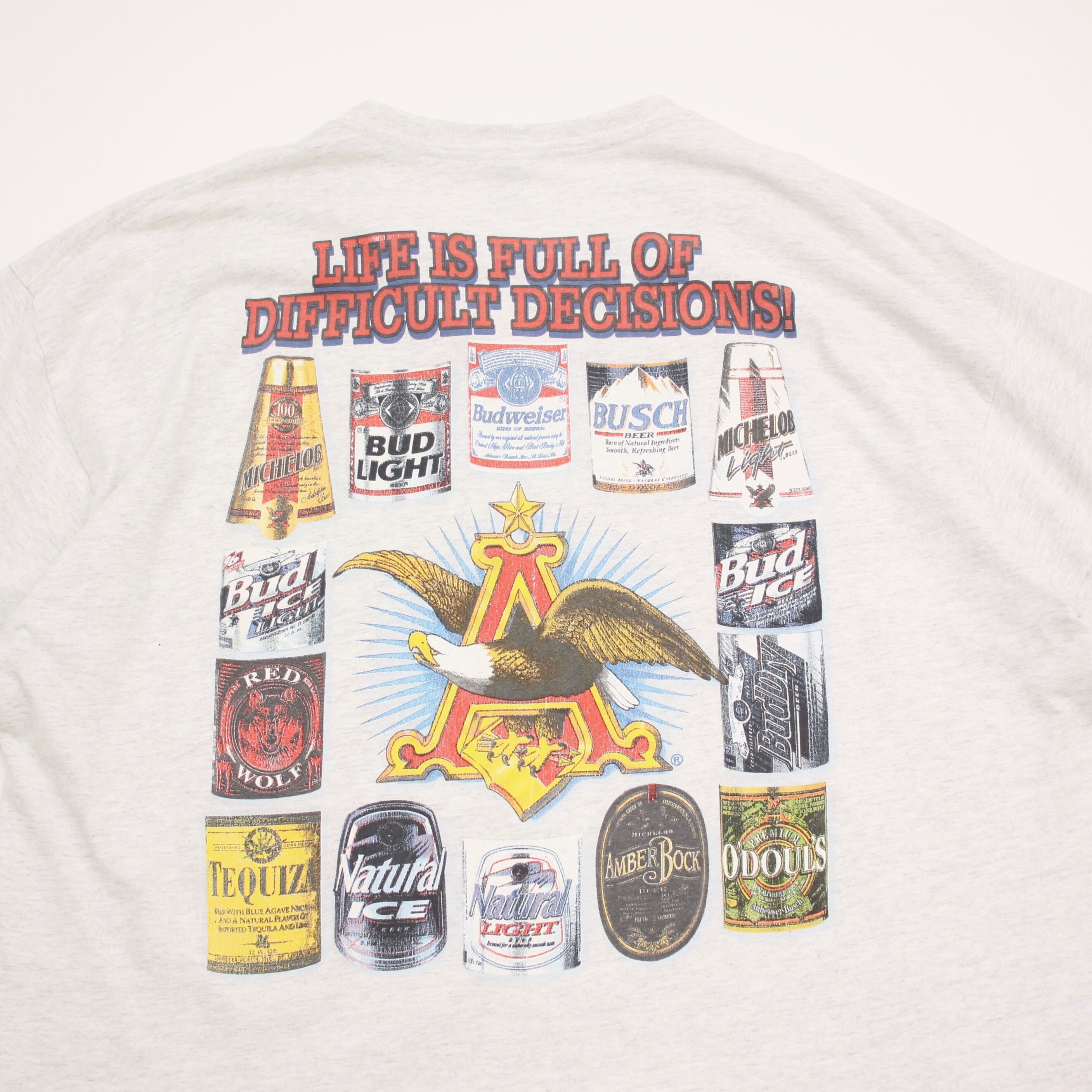0465. 1990's beers tee ヘザーグレー ビール プリントTシャツ 漢字 プリントTシャツ バドワイザー Budweiser BUD LIGHT 90s 90年代 vintage 古着