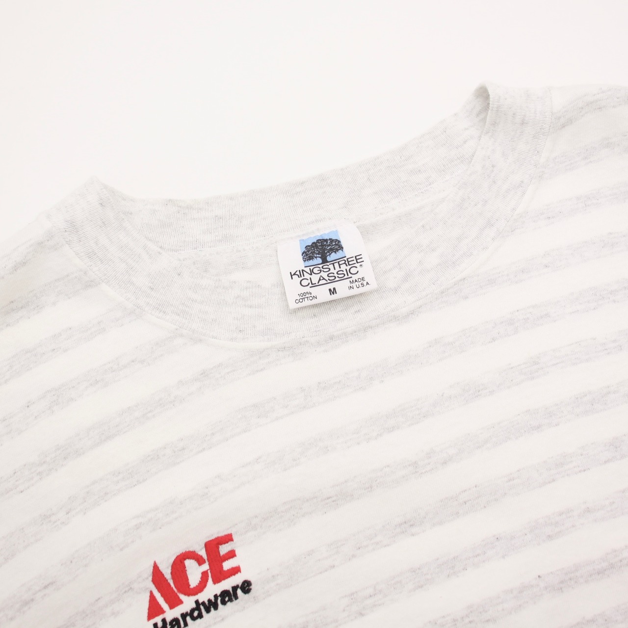 0464. 1990's ACE Hardware striped tee ヘザーグレー ボーダー 企業 刺繍 Tシャツ 90s 90年代 USA製 vintage 古着