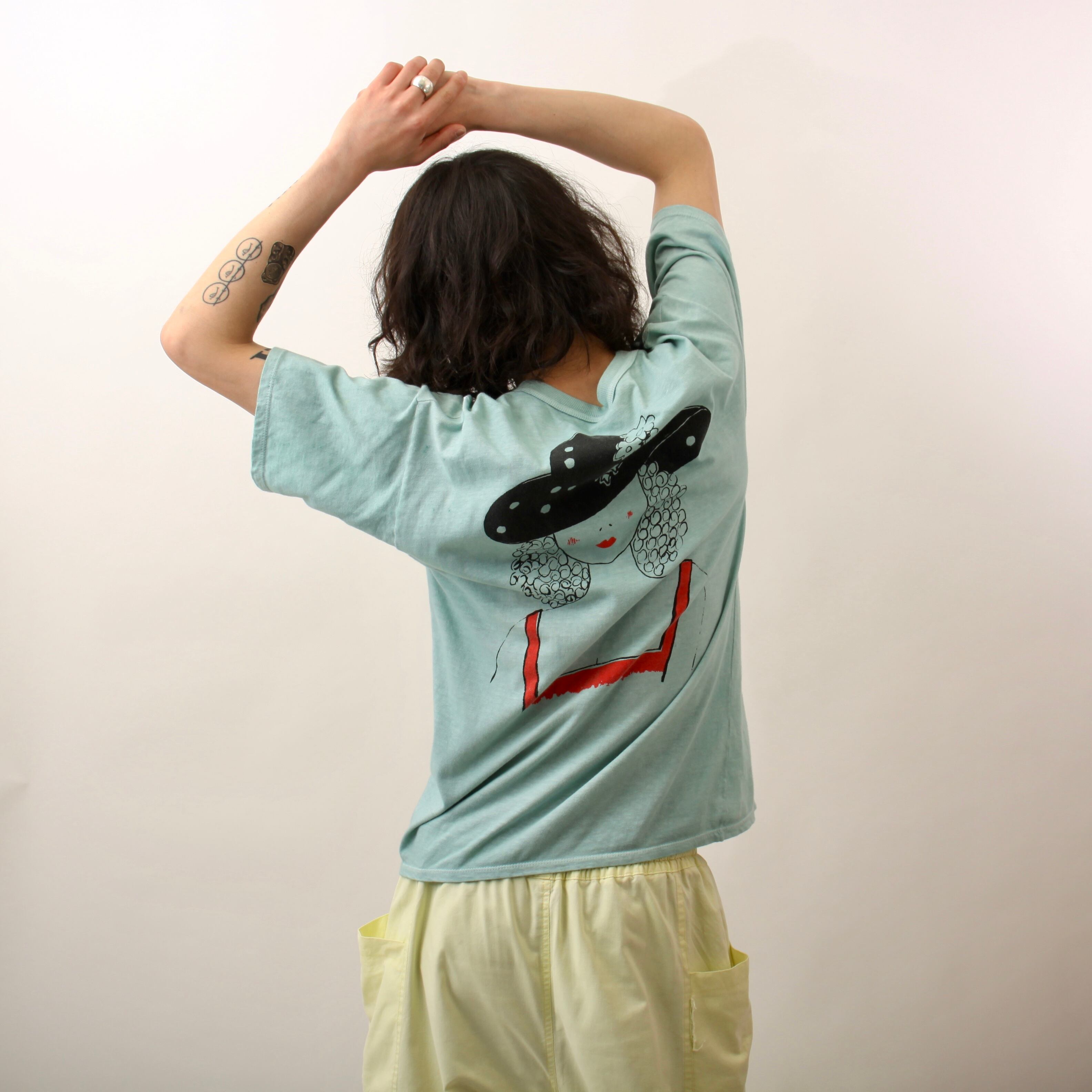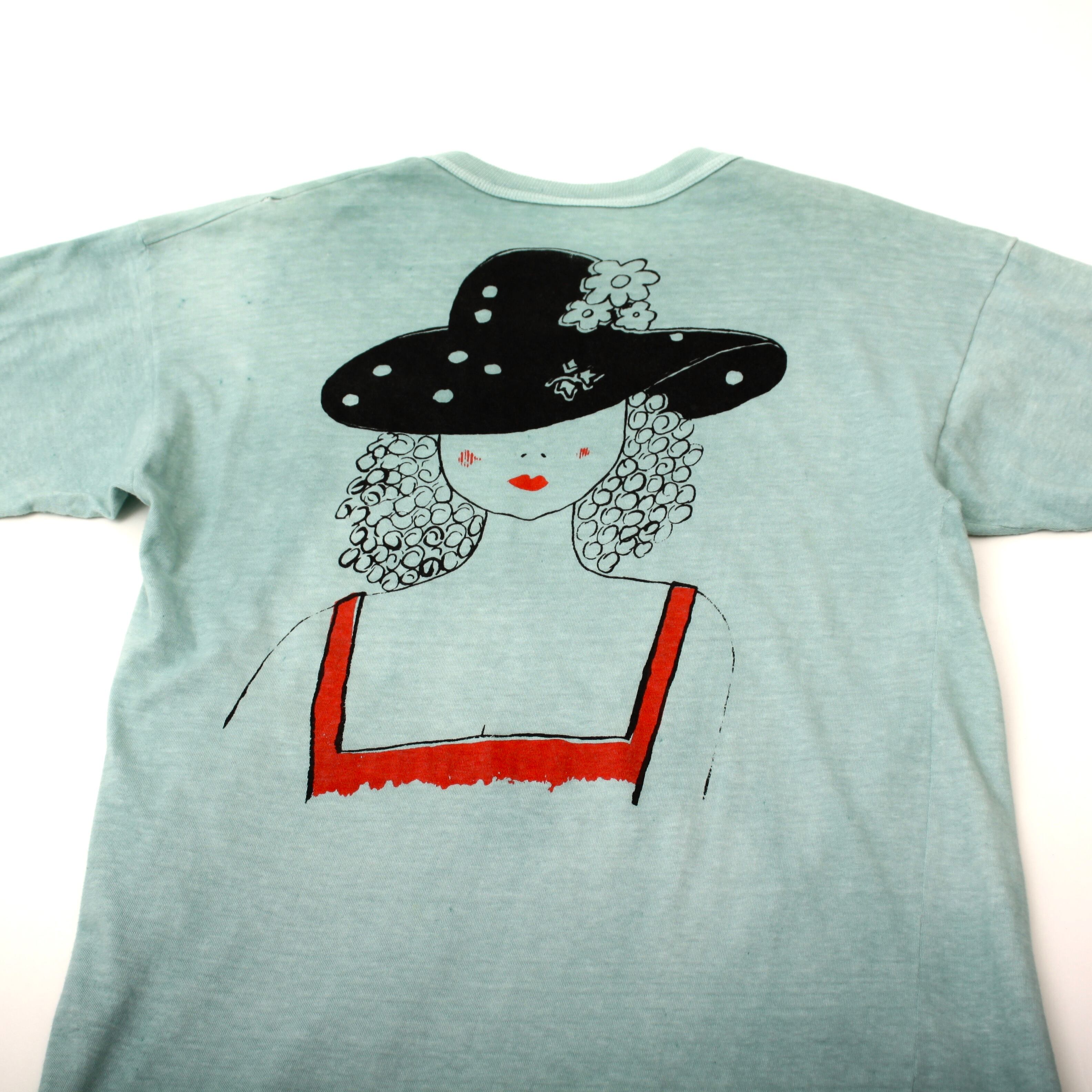 0450. 1990's spanish 貴婦人 tee 水色 90s 90年代 アートプリント euro vintage ユーロ古着