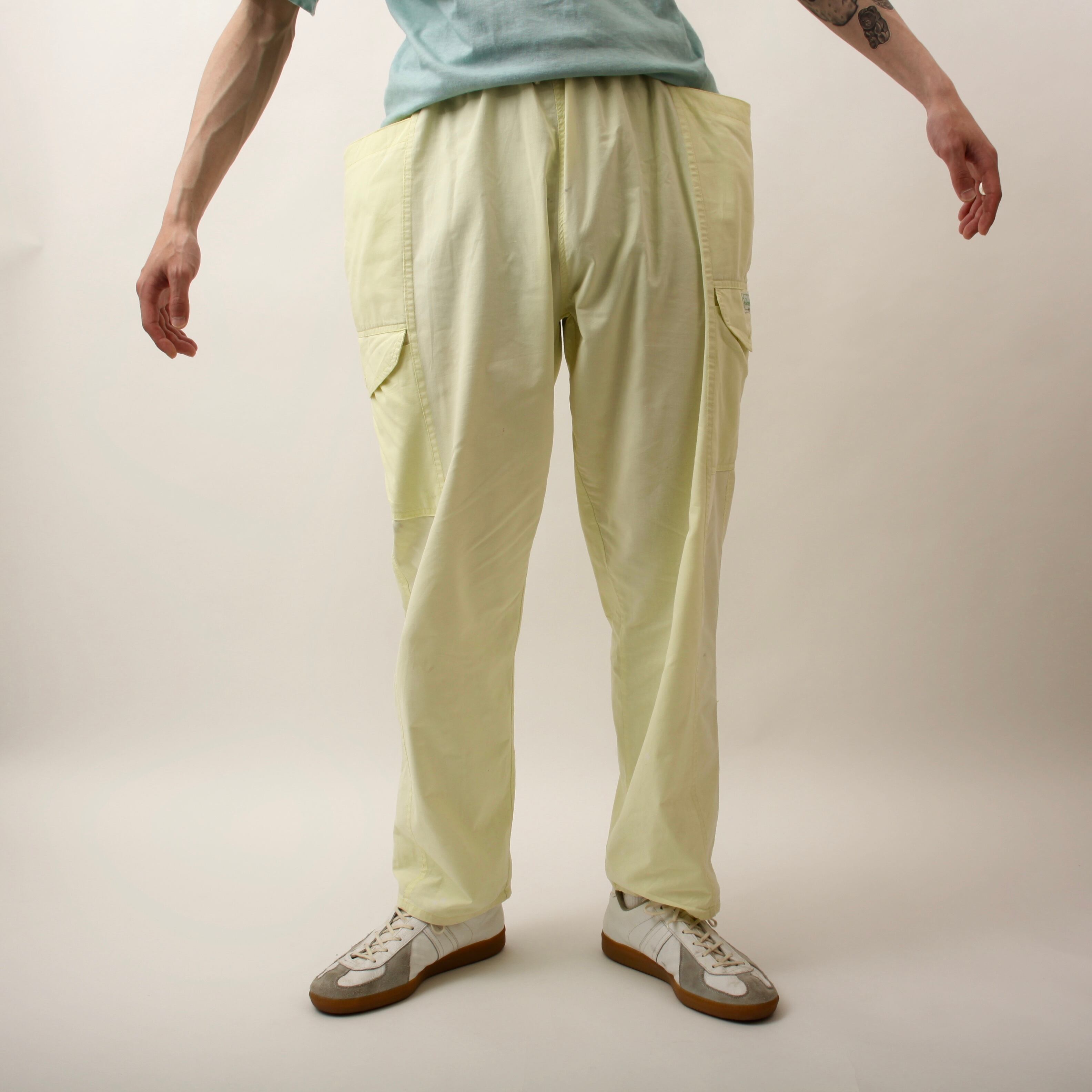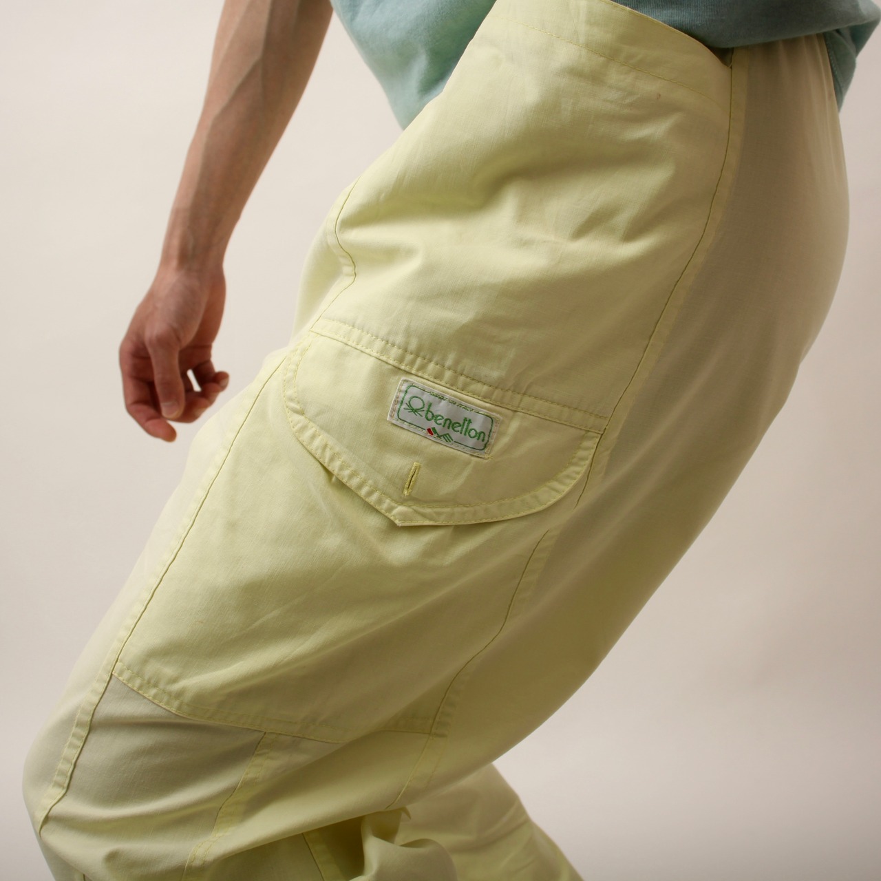 0452. 1990's benetton easy cargo pants lemon yellow 90s 90年代 ベネトン カーゴパンツ イージーパンツ レモンイエロー ITALY製 euro vintage ユーロ古着
