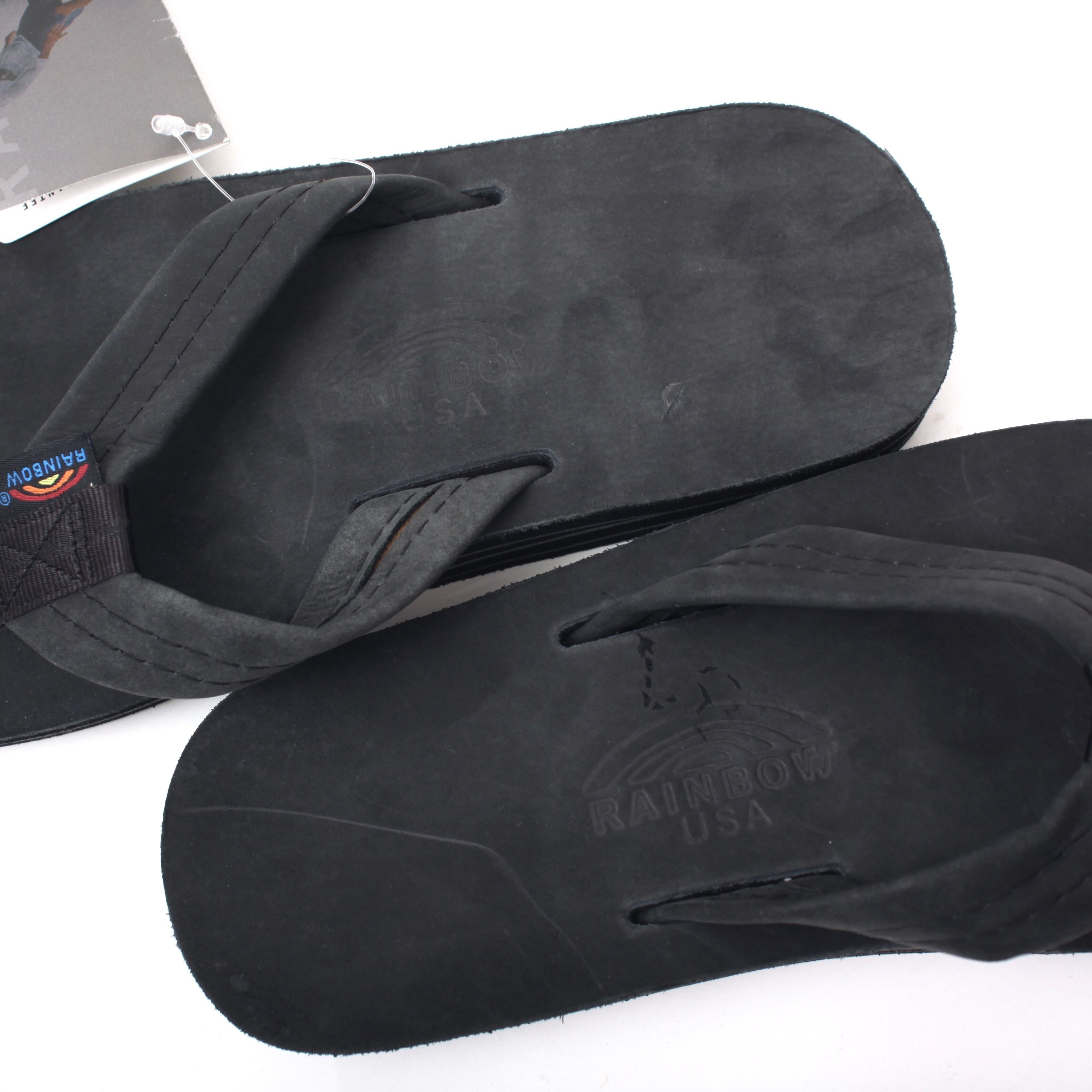 0470. USA made RAINBOW SANDALS premier leather double layer ブラック レインボーサンダル ダブルソール プレミアヌバックレザー ビーチサンダル ビーサン 302ALTSO USA製 タグ付き 古着