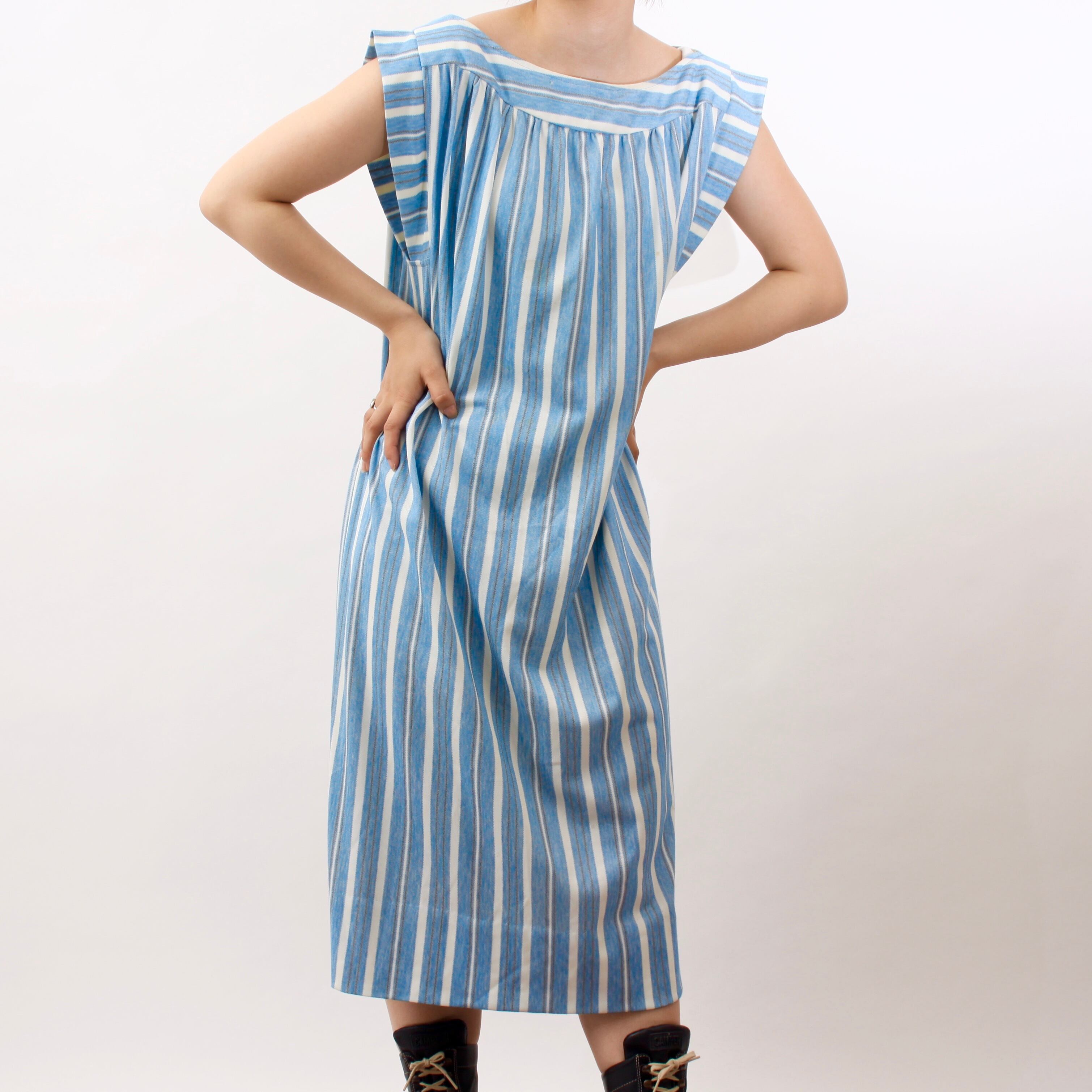 0495. 1970's jacquard striped one-piece ブルー ジャカードストライプ 織り柄 ドレス ワンピース 70s 70年代 vintage レディース ビンテージ 古着