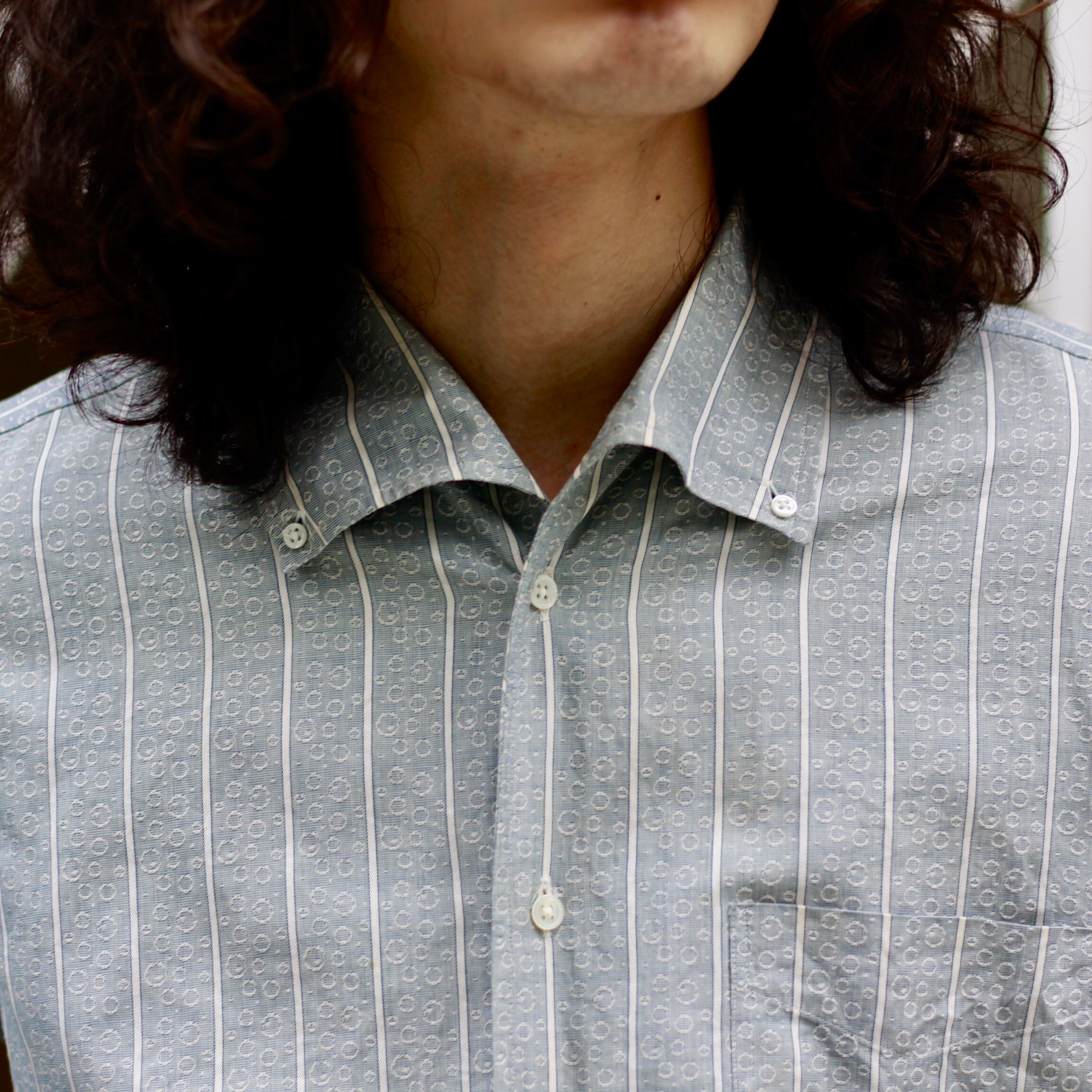 0502. COMME des GARCONS SHIRT open collar shirt Made in France オープンカラー 総柄 フランス製 コムデギャルソン vintage 古着
