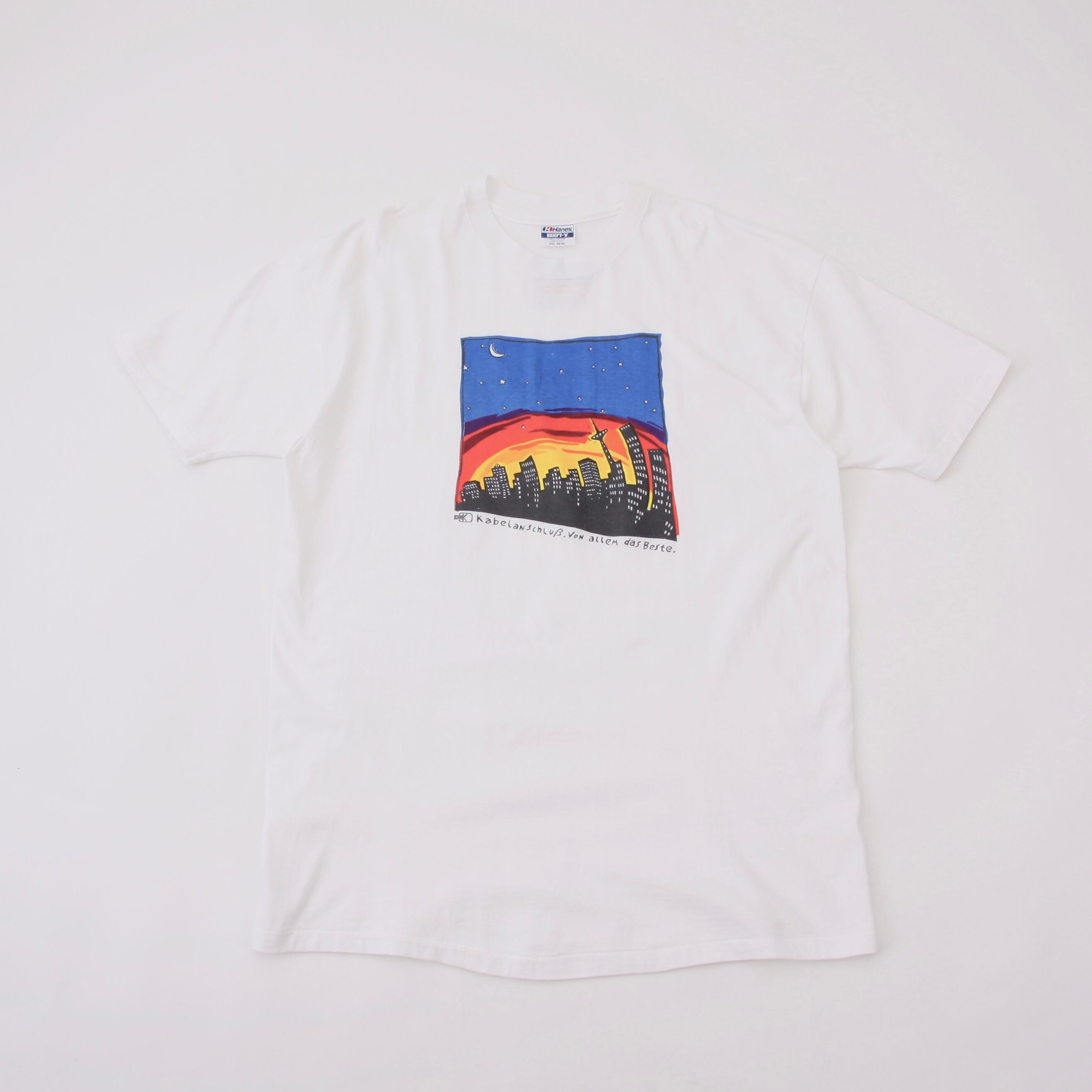 0522. 1990's german art tee ホワイト アートプリント 90s 90年代 vintage ヴィンテージ 古着