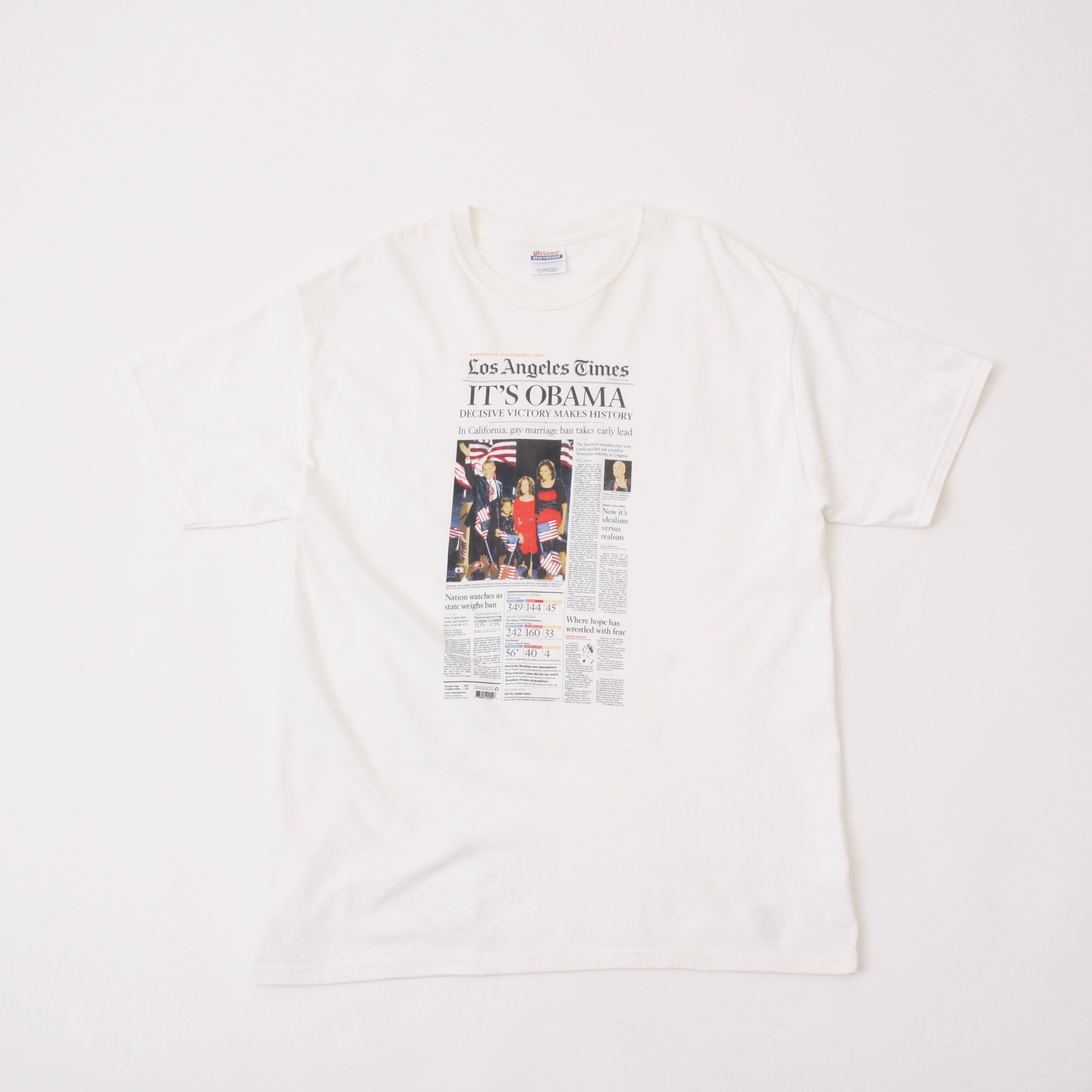 0544. 2000's Los Angeles Times tee ホワイト オバマ プリントT 90s 90年代 vintage ヴィンテージ 古着