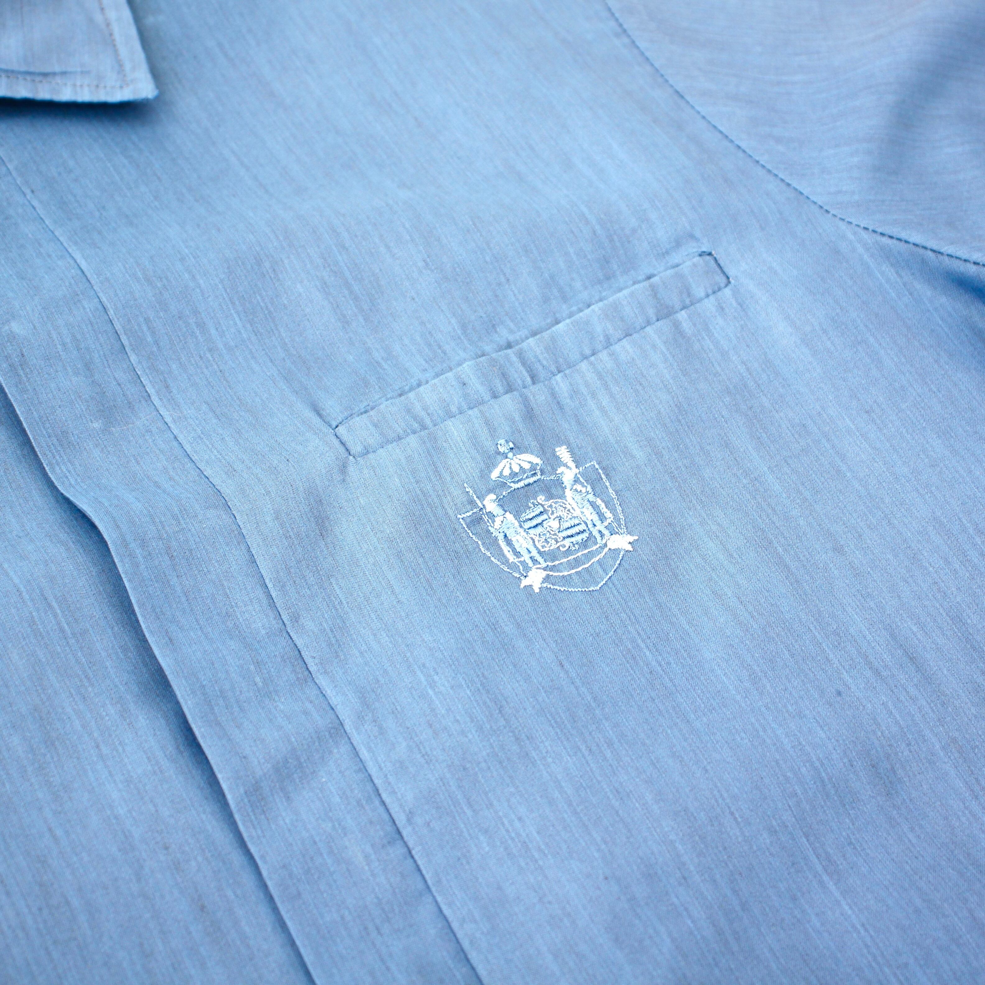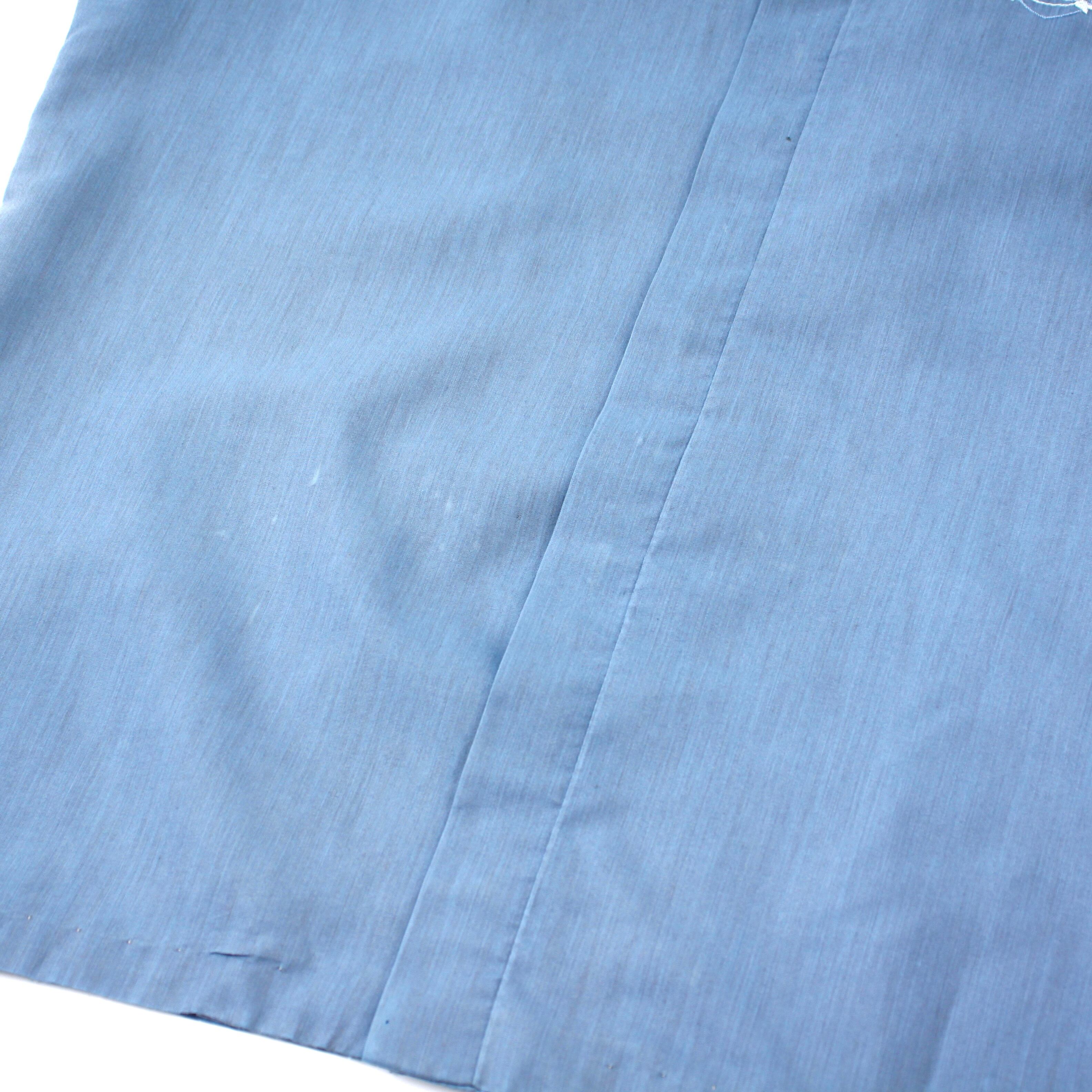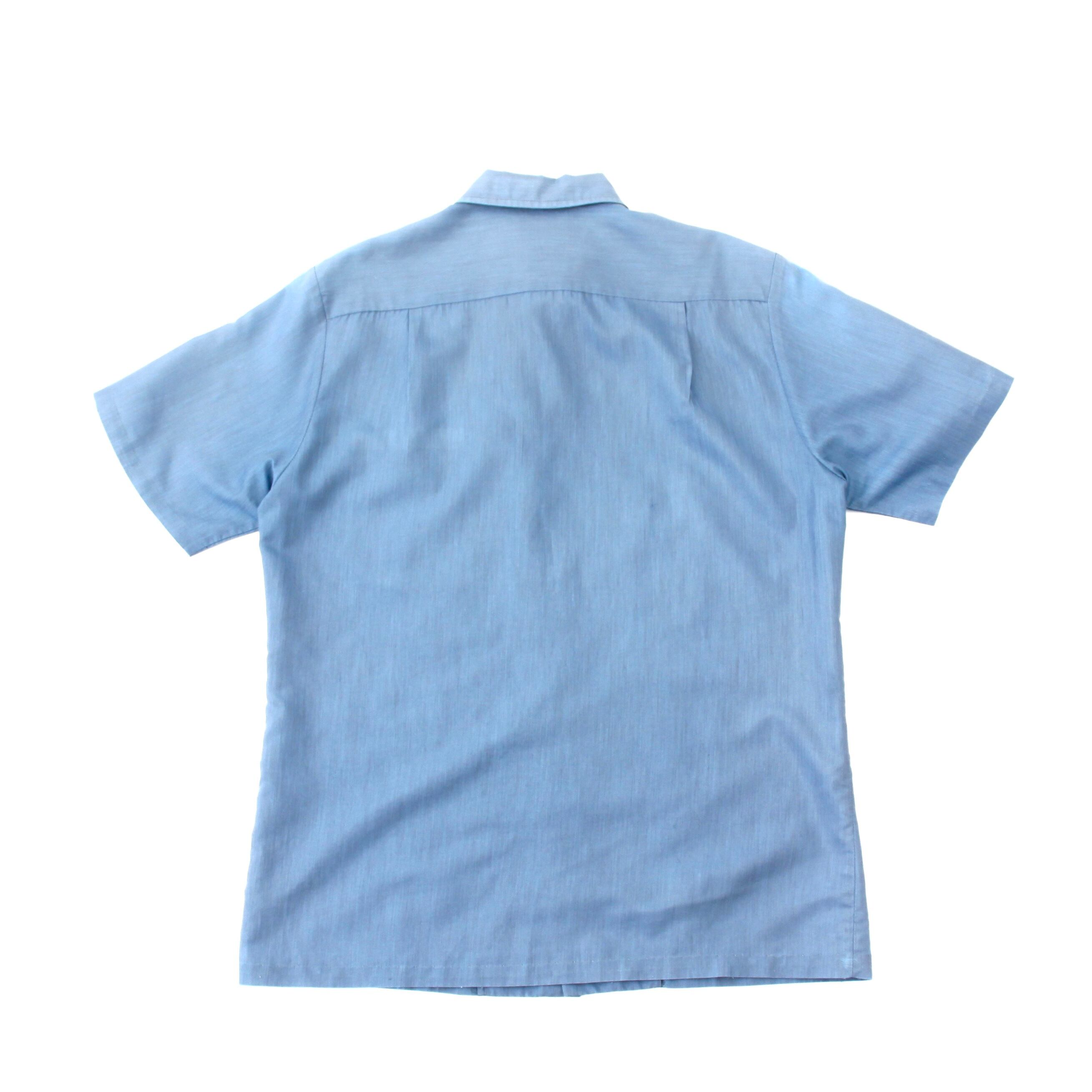 0554. 1960's shiny blue shirt 玉虫ブルー 半袖 ボックスシャツ 開襟 オープンカラー ループカラー 60s 60年代 vintage 古着