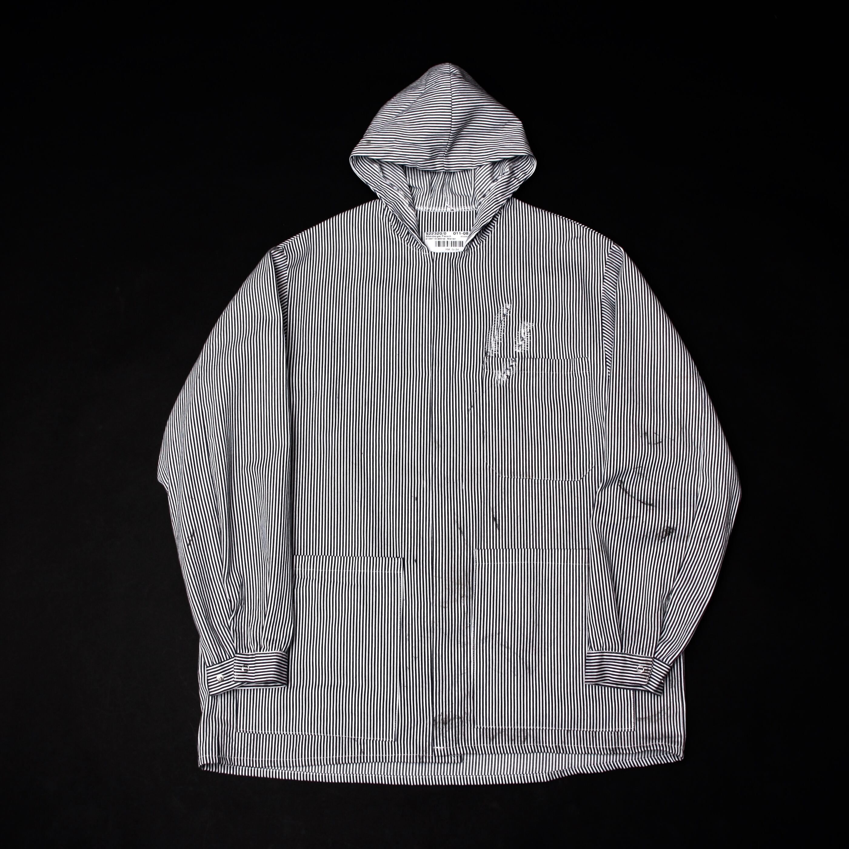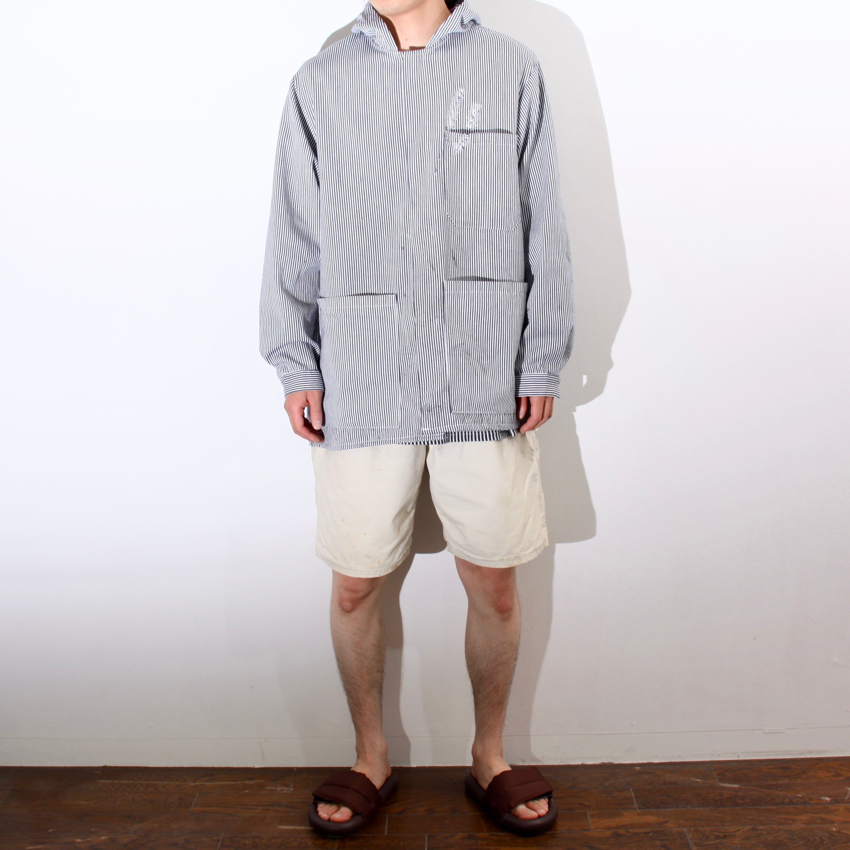 0559. euro work shirt jacket ヒッコリーストライプ フード シャツジャケット カバーオール euro vintage ユーロ古着