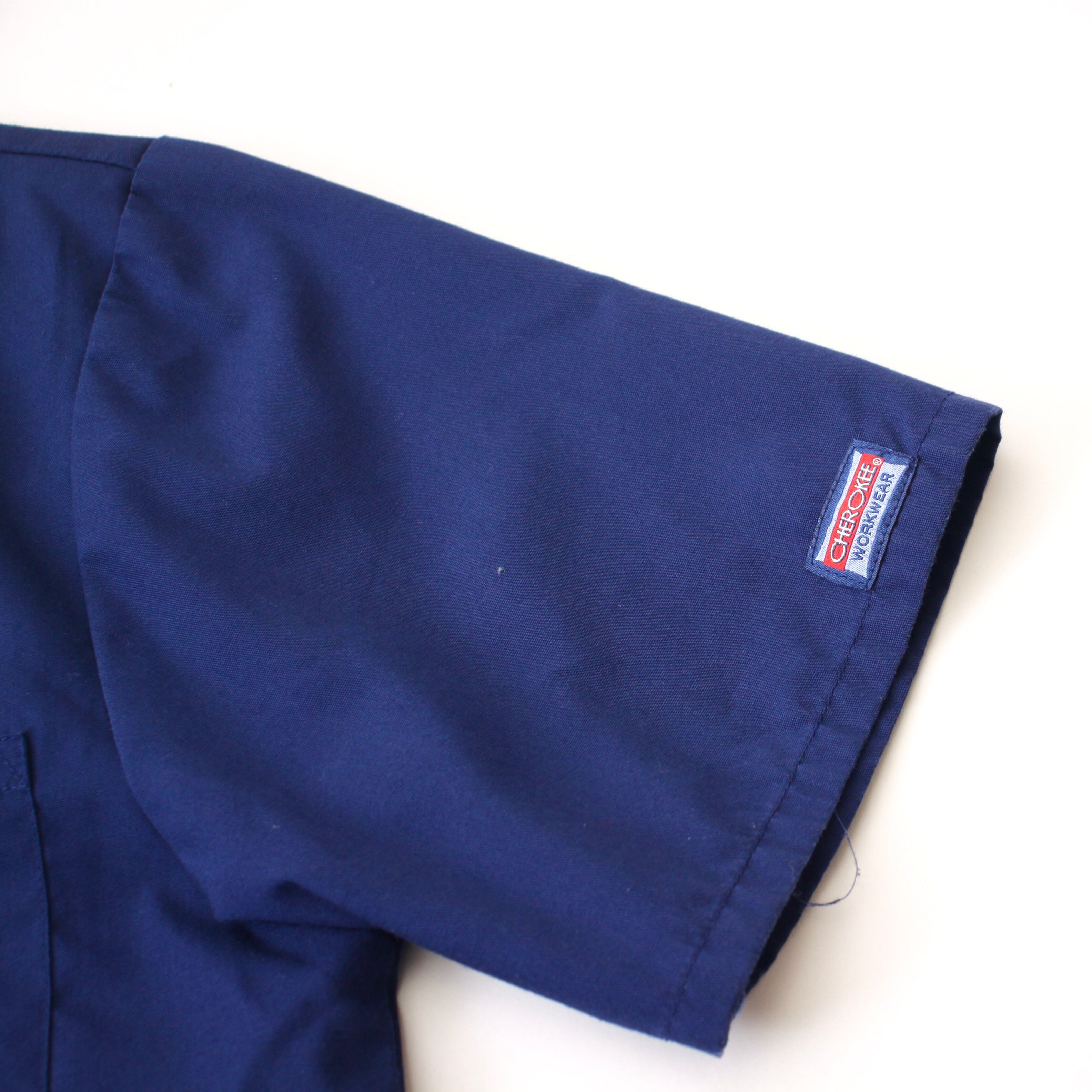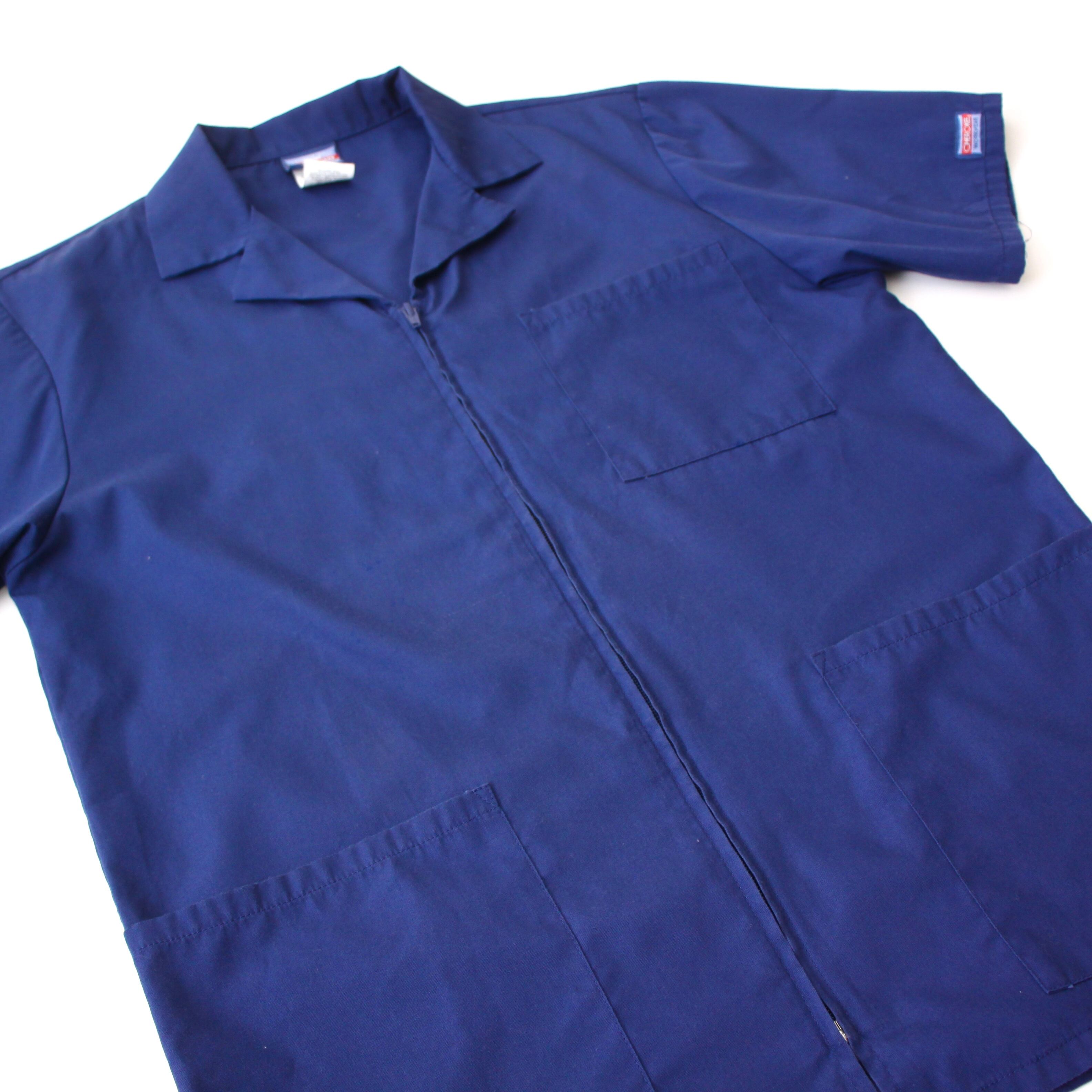 0570. poly/cotton zip work shirt ネイビー ポリ/コットン ZIPシャツ 半袖 ワークシャツ 古着