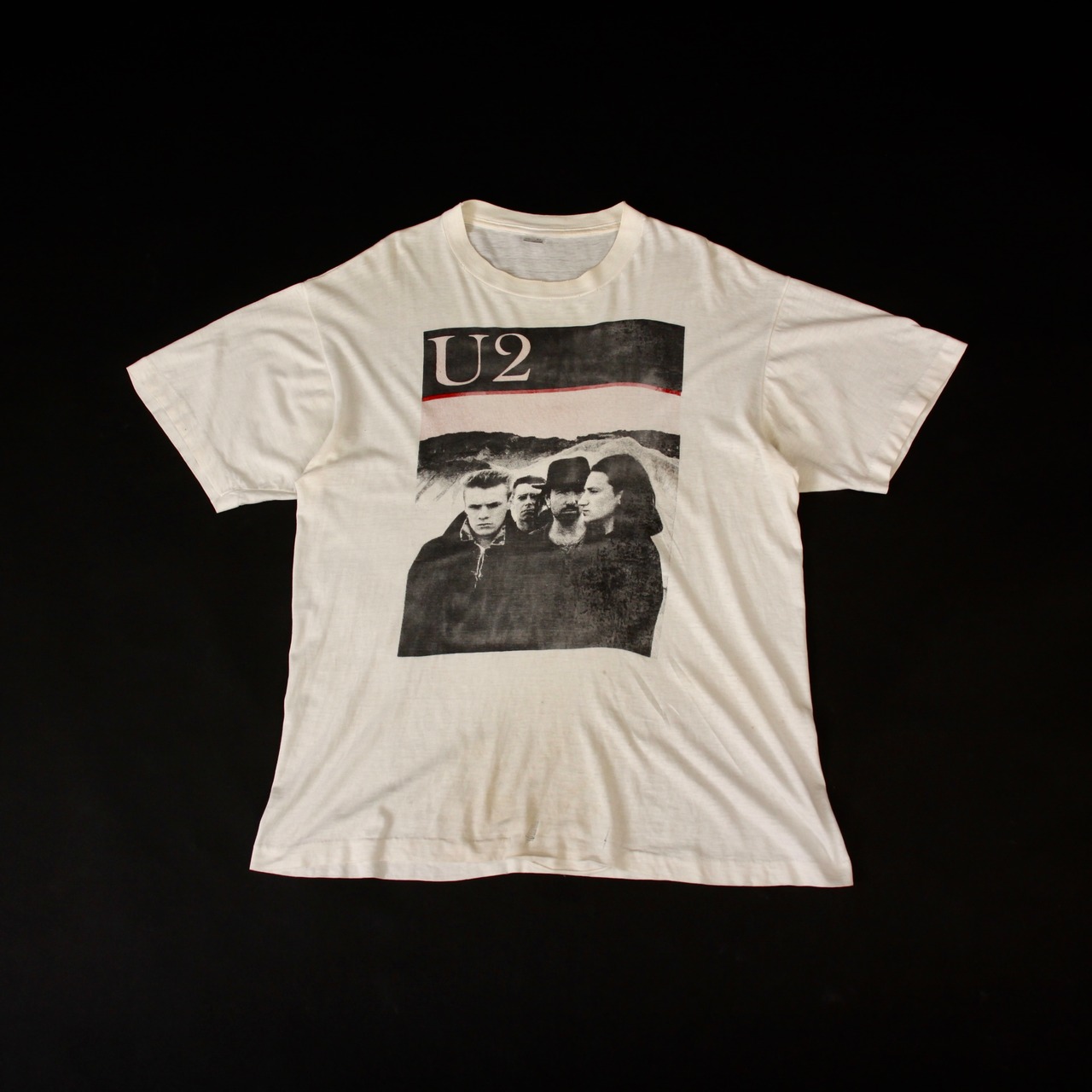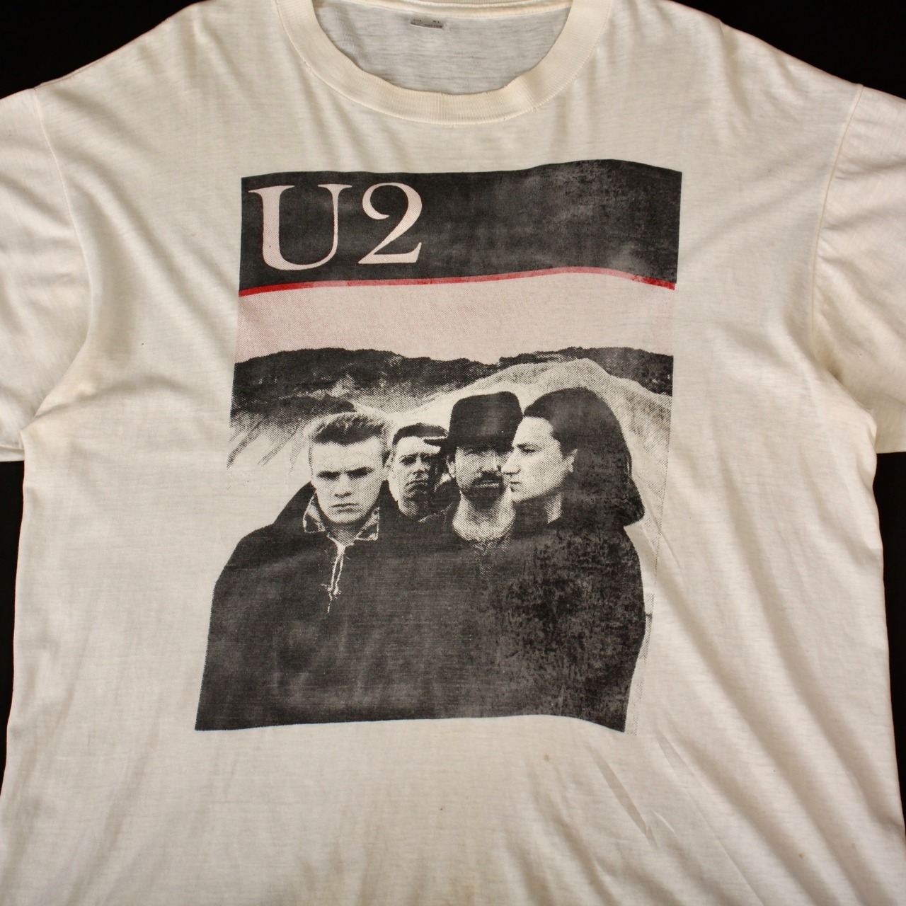 0586. 1980's U2 The Joshua Tree ホワイト プリントTシャツ ロック バンドTシャツ ヨシュア・トゥリー ブートレグ? 80s 80年代 euro vintage ユーロ古着