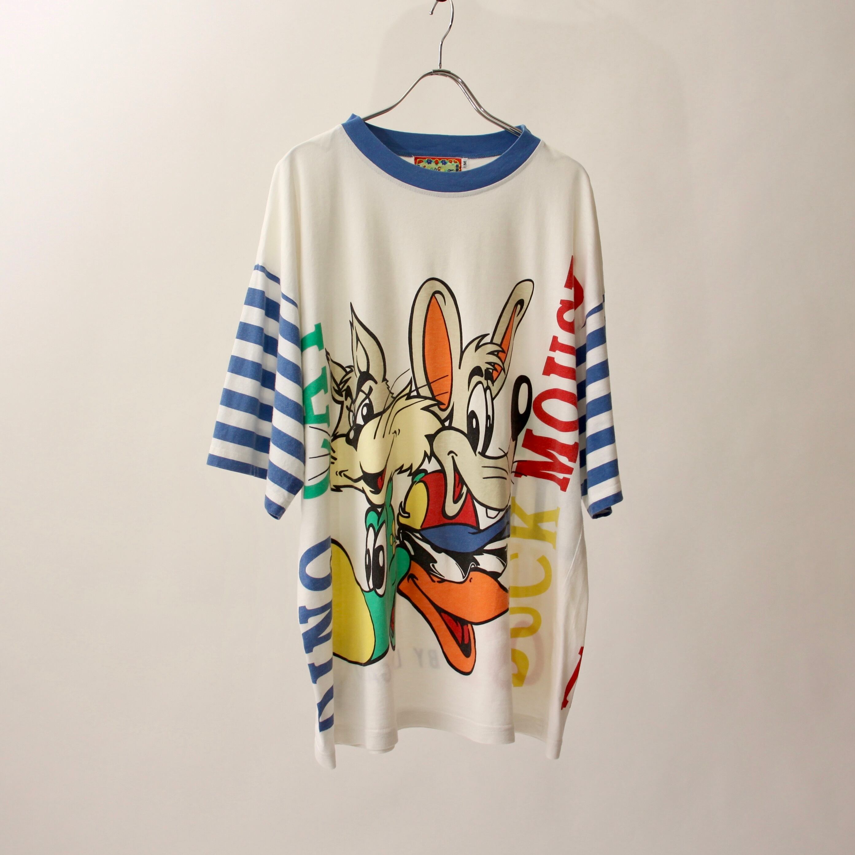 0593. 1990's best friends tee by lapagayo ホワイト ブルー ボーダー キャラクター ディズニー プリントT 90s 90年代 vintage ヴィンテージ 古着