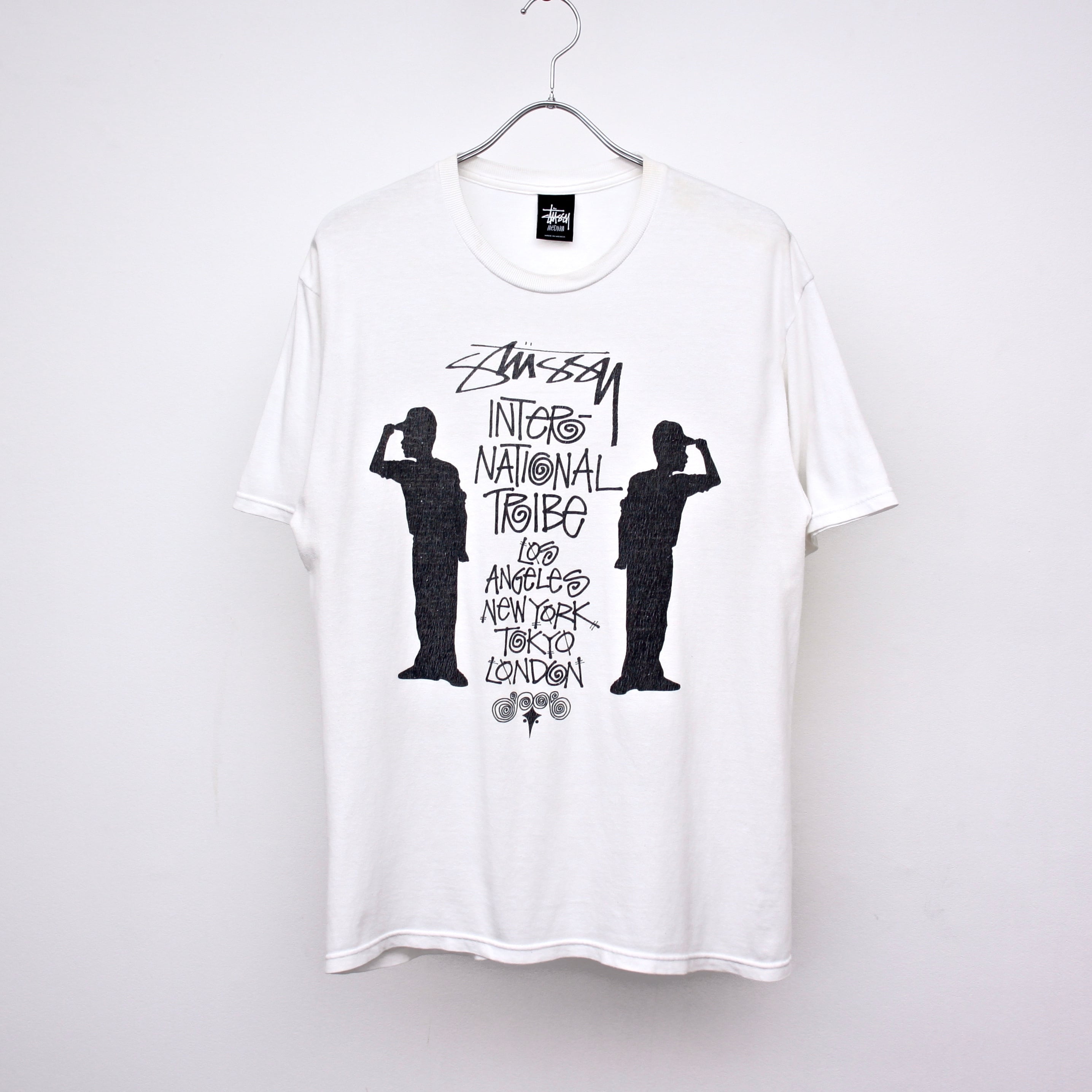 0607. international stussy tribe tee ホワイト グラフィックアート プリント Tシャツ シャドーマン old stussy 古着
