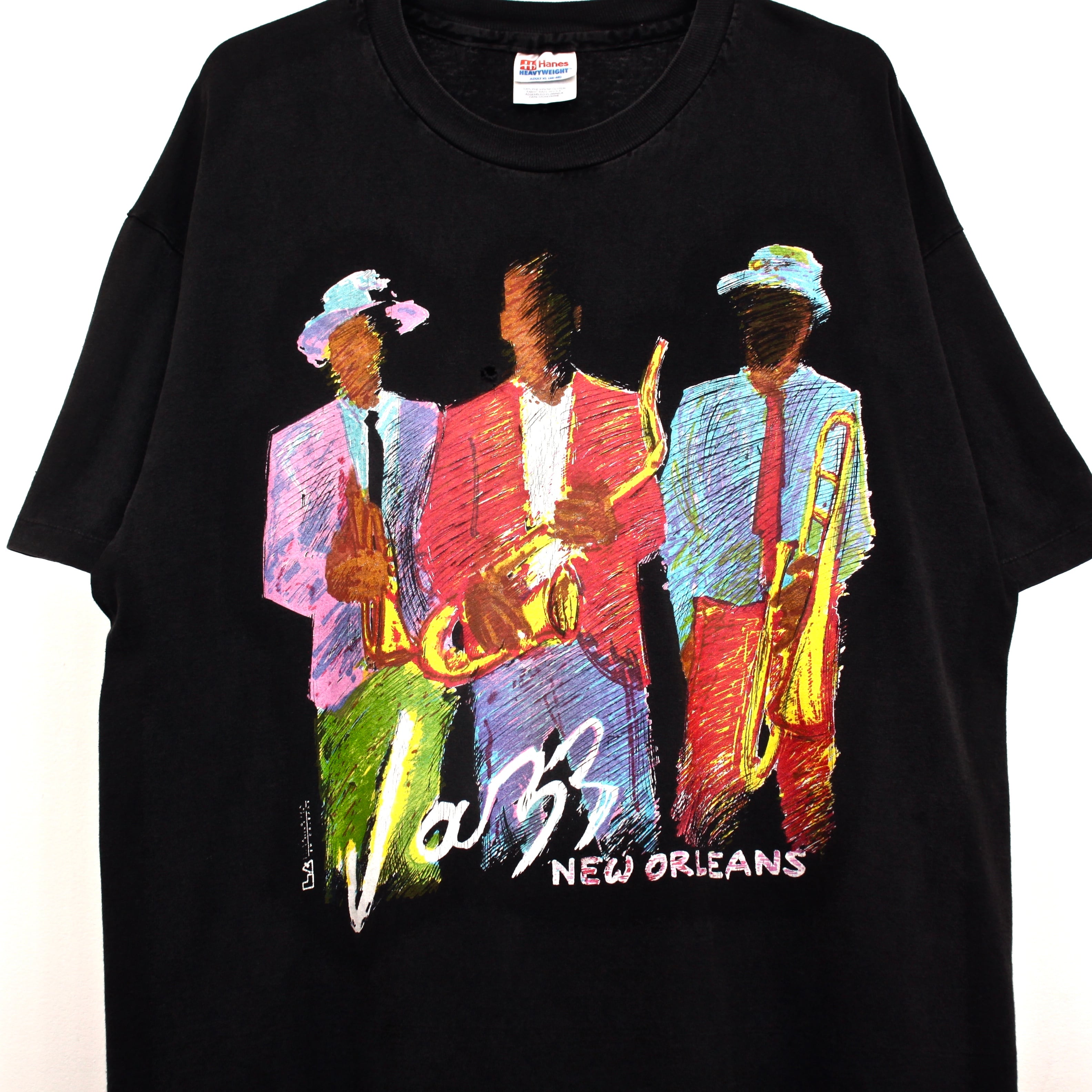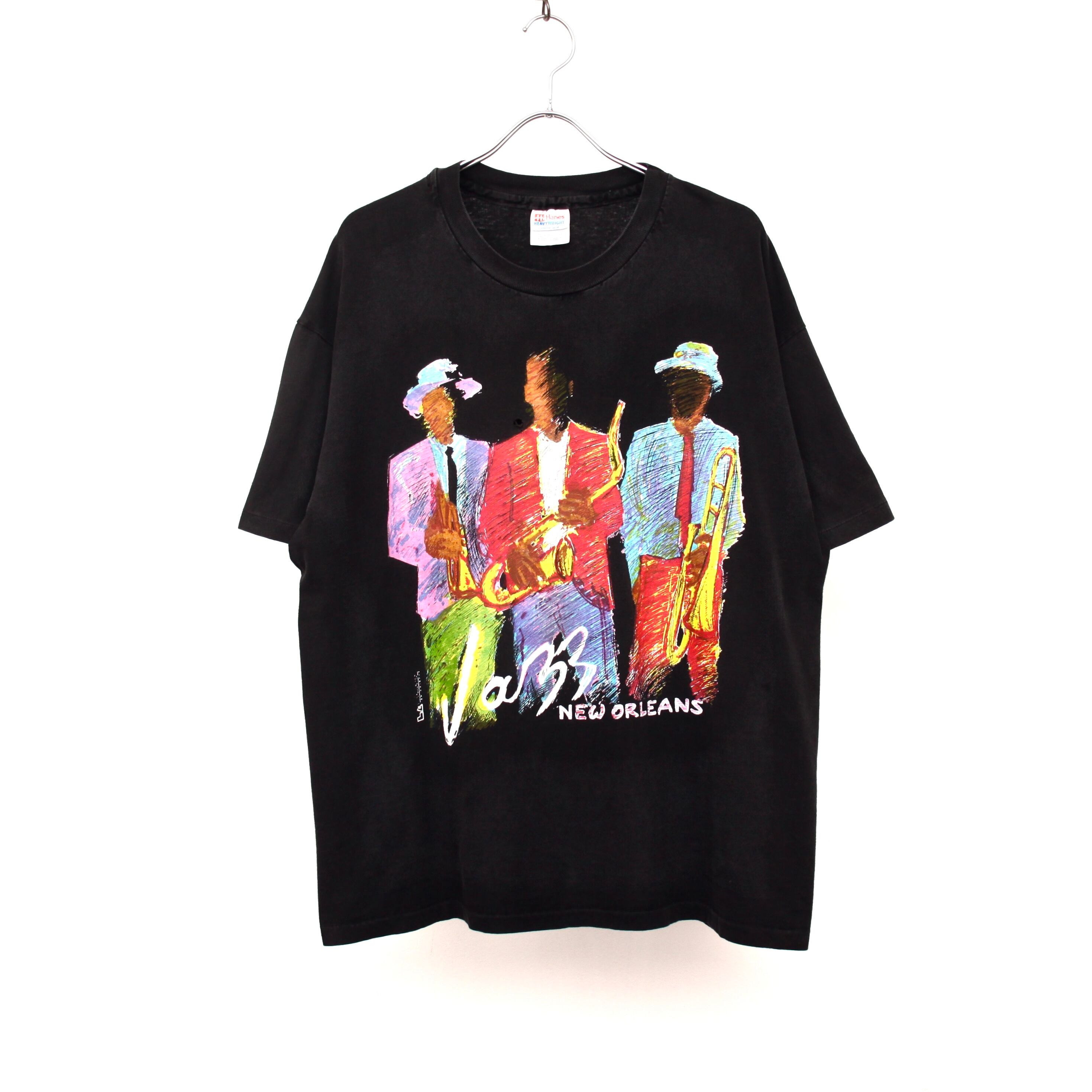 0611. 1990's black people jazzmen tee ブラック アートプリント Tシャツ ジャズ ブラックパワー 黒人 90s 90年代 vintage Hanes XL 古着