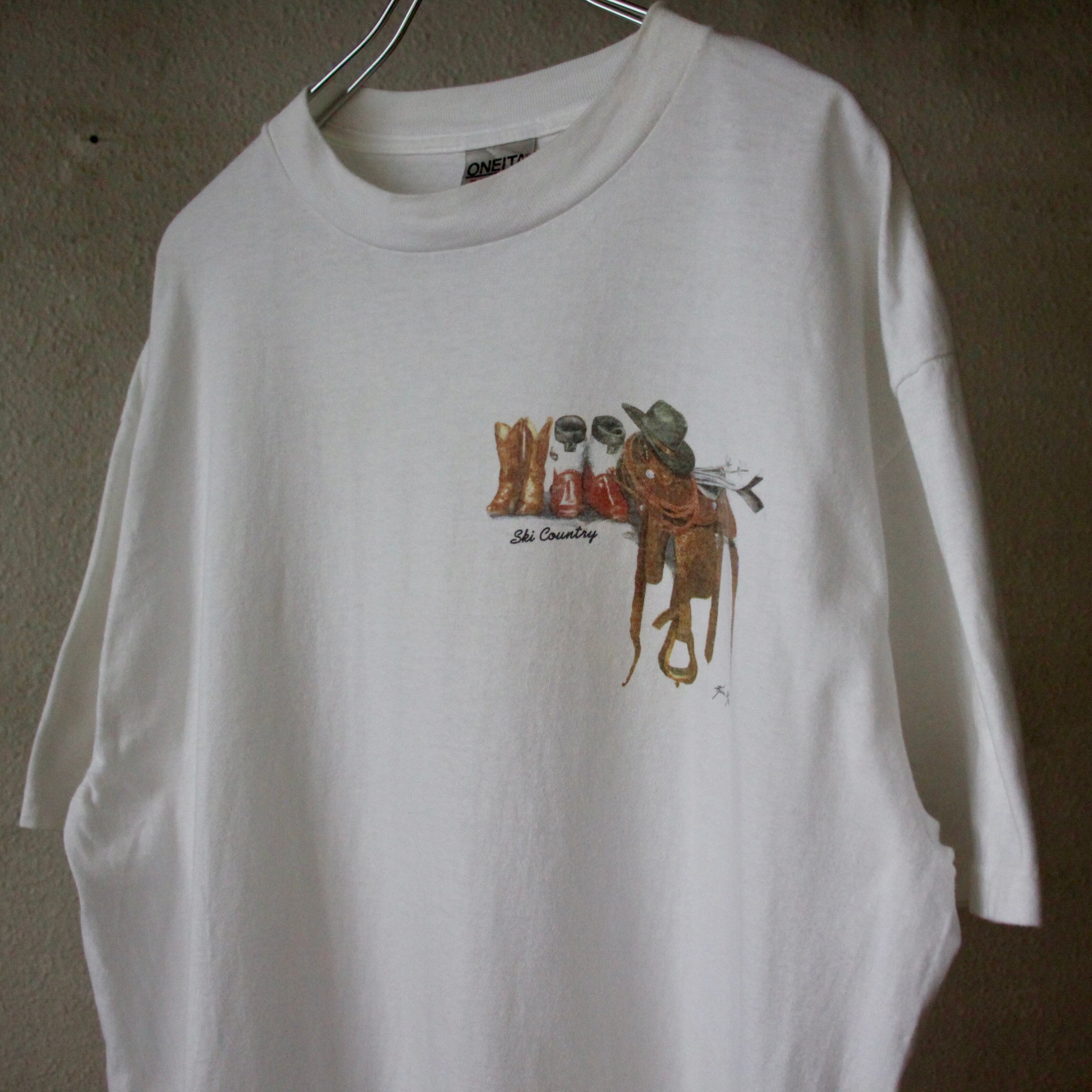 0613. 1990's "Ski Country" art tee ホワイト アートT プリントT ONEITA 90s 90年代 vintage ヴィンテージ 古着