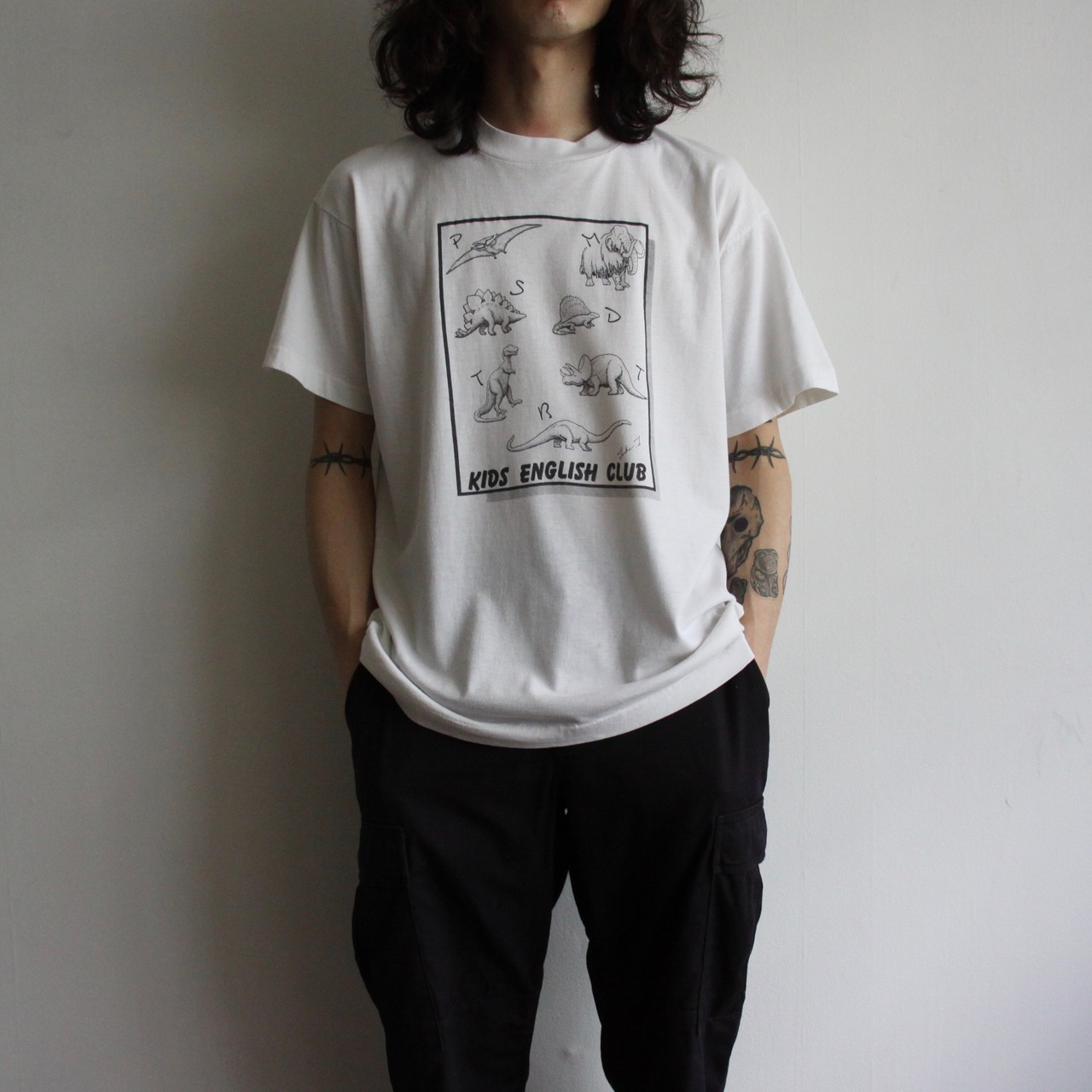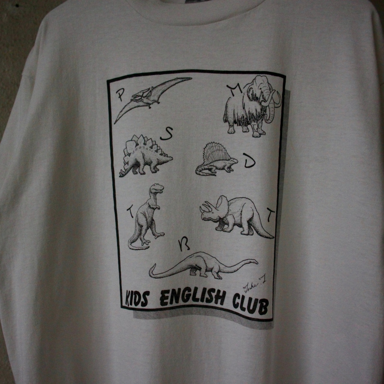0616. 1990's english club tee ホワイト 恐竜 アニマルT アートT 90s 90年代 vintage ヴィンテージ 古着