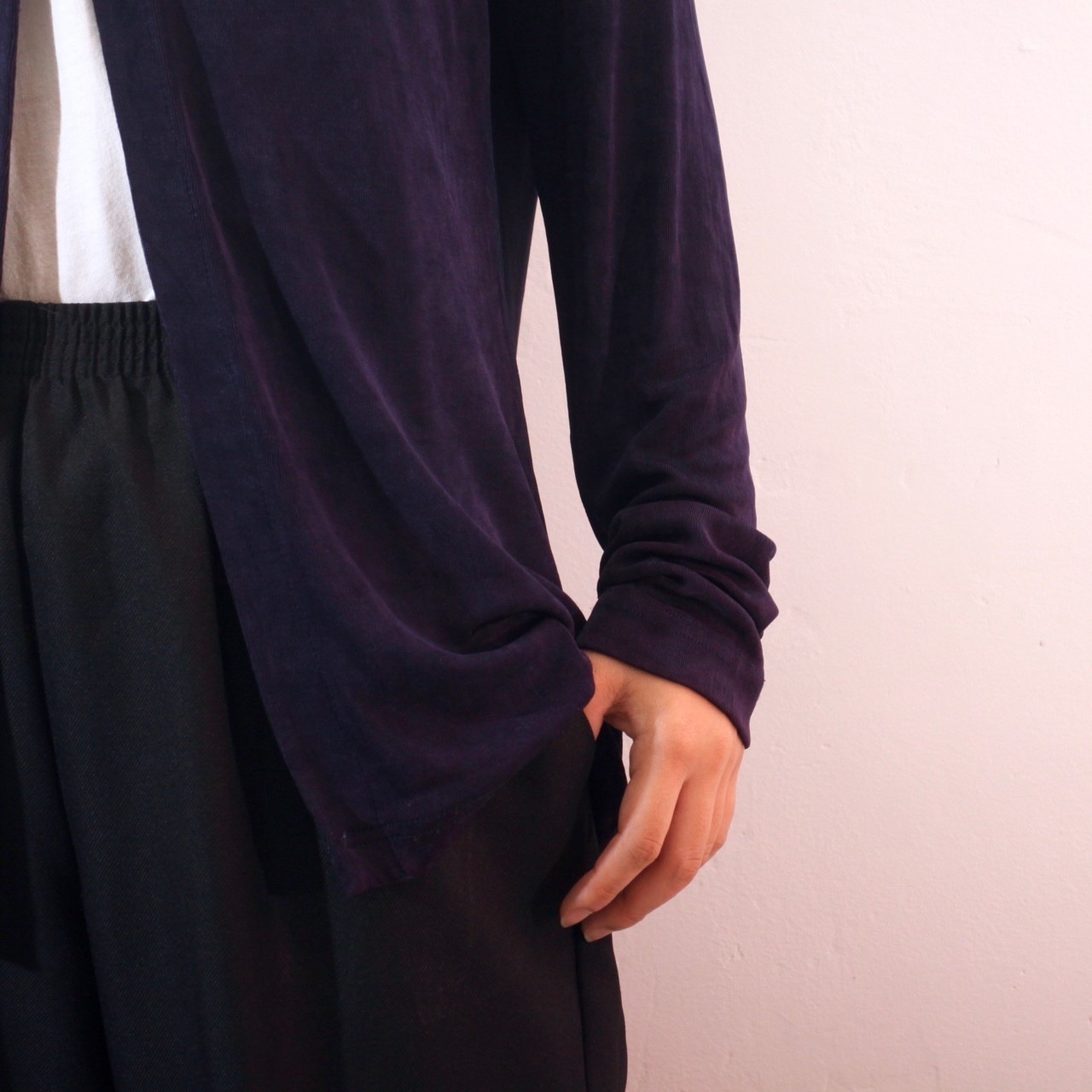 生地はテロンとしてるんですがしっかりして重みがあり、体に馴染みます。