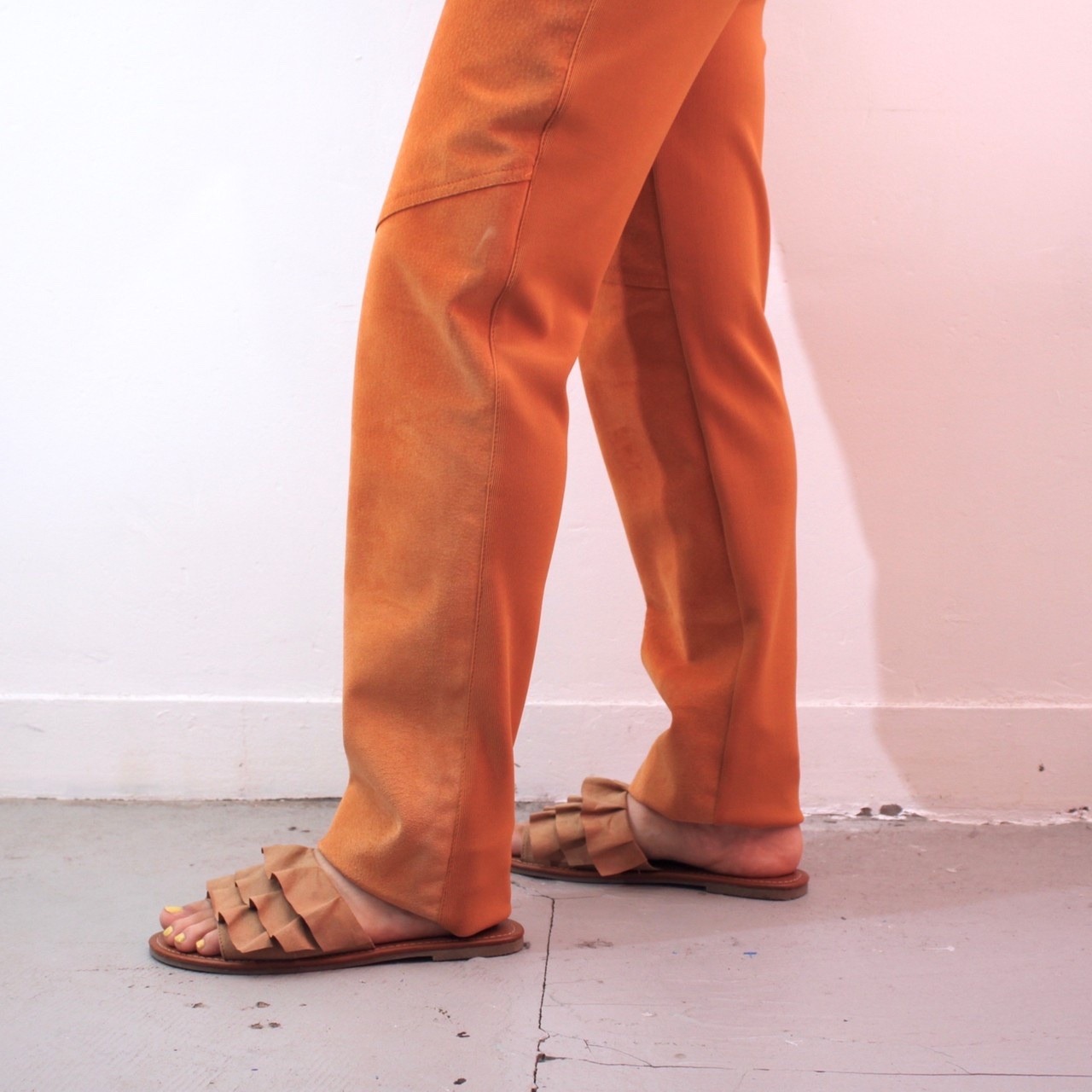 0640. suede and knit combination pants オレンジ スエード ニット 切り替え パンツ CANADA製 レディース古着